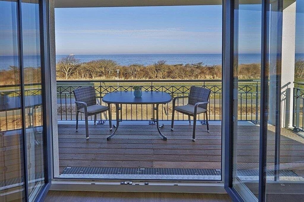 Der terrassenartige Balkon ist sowohl vom Wohnzimmer als auch vom Schlafzimmer aus begehbar. Natürlich stehen Ihnen hier auch Terrassenmöbel zur Verfügung, sodass Sie beispielsweise Ihr Frühstück oder Ihr Abendessen ganz privat im Sonnenschein zu sich nehmen können. Die Waterkant Suites liegen an der Promenade in Börgerende und somit direkt am Meer.