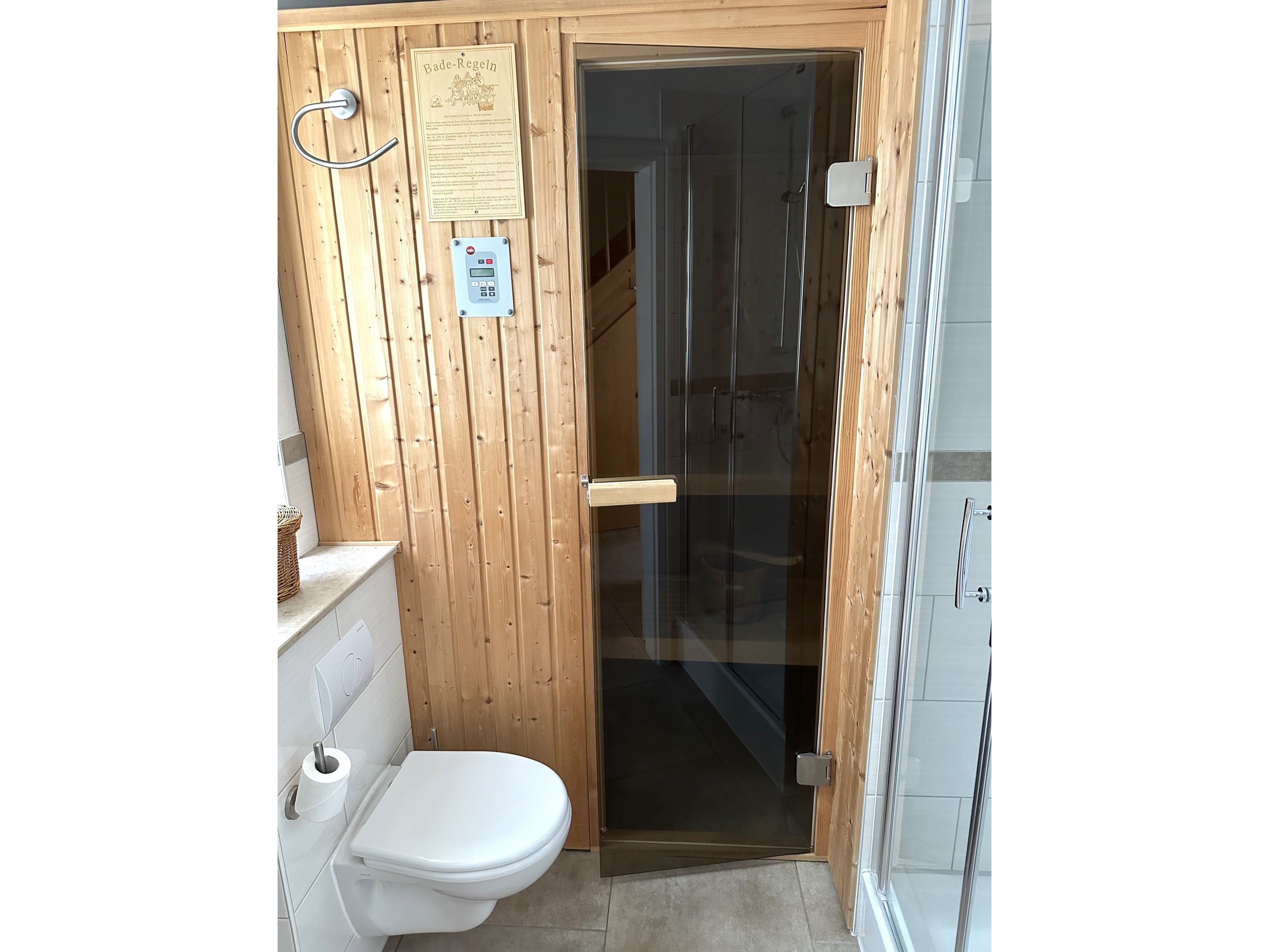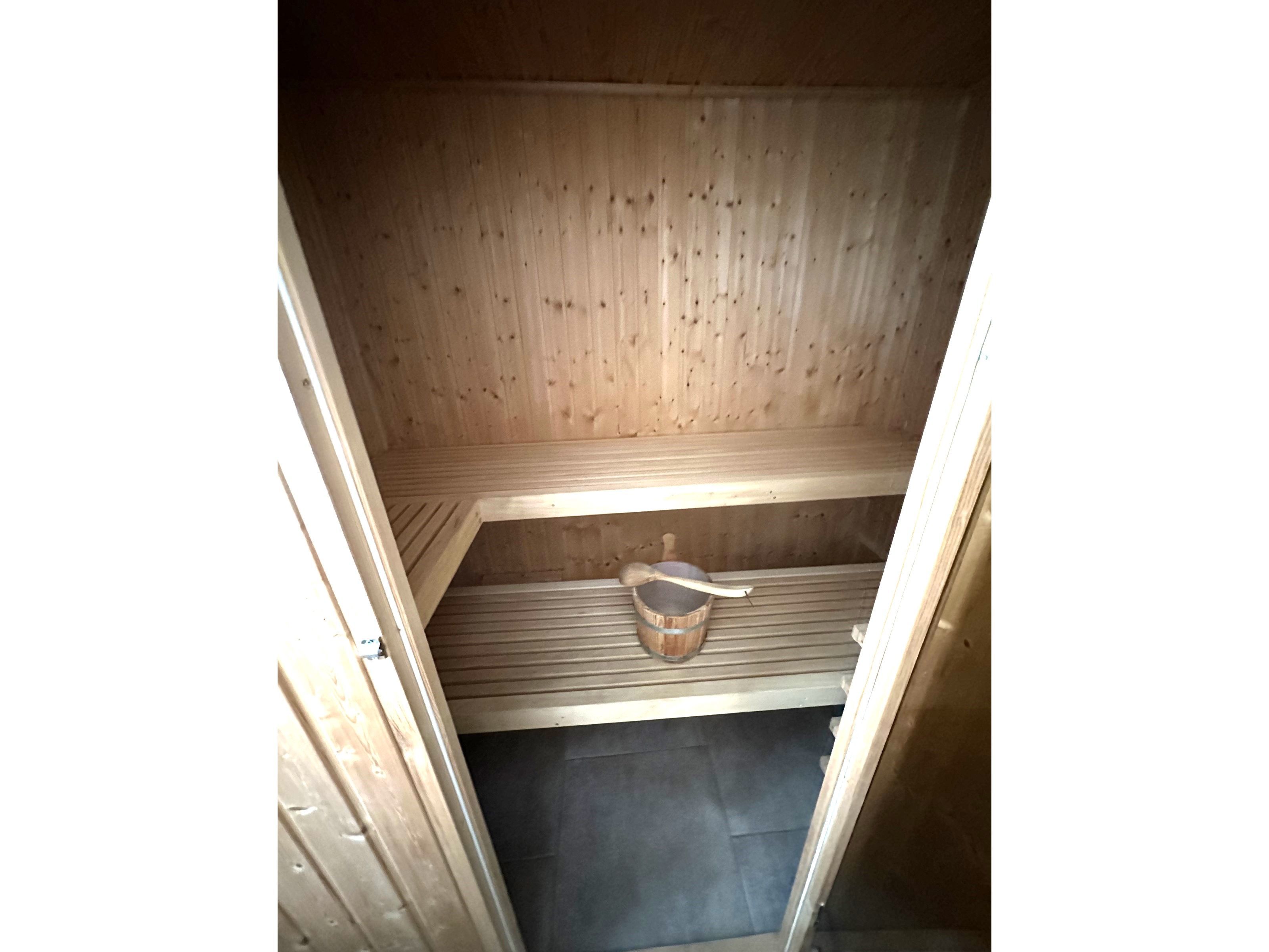 Vom Wohnbereich gelangen Sie auf die sonnige Südterrasse mit Strandkorb und Grillkamin. An den Wohnbereich schließt sich der schöne Essbereich mit großem Esstisch und die offene Küche mit Backofen, Ceranfeld, Kühlschrank mit Gefriermöglichkeit, Geschirrspülmaschine, Kaffee-Pad-Maschine, Wasserkocher & Toaster an. Im Erdgeschoss des Hauses befindet sich ein Badezimmer mit Dusche/WC und Sauna. Im Untergeschoß befindet sich ein Badezimmer mit Dusche, WC und Sauna.
