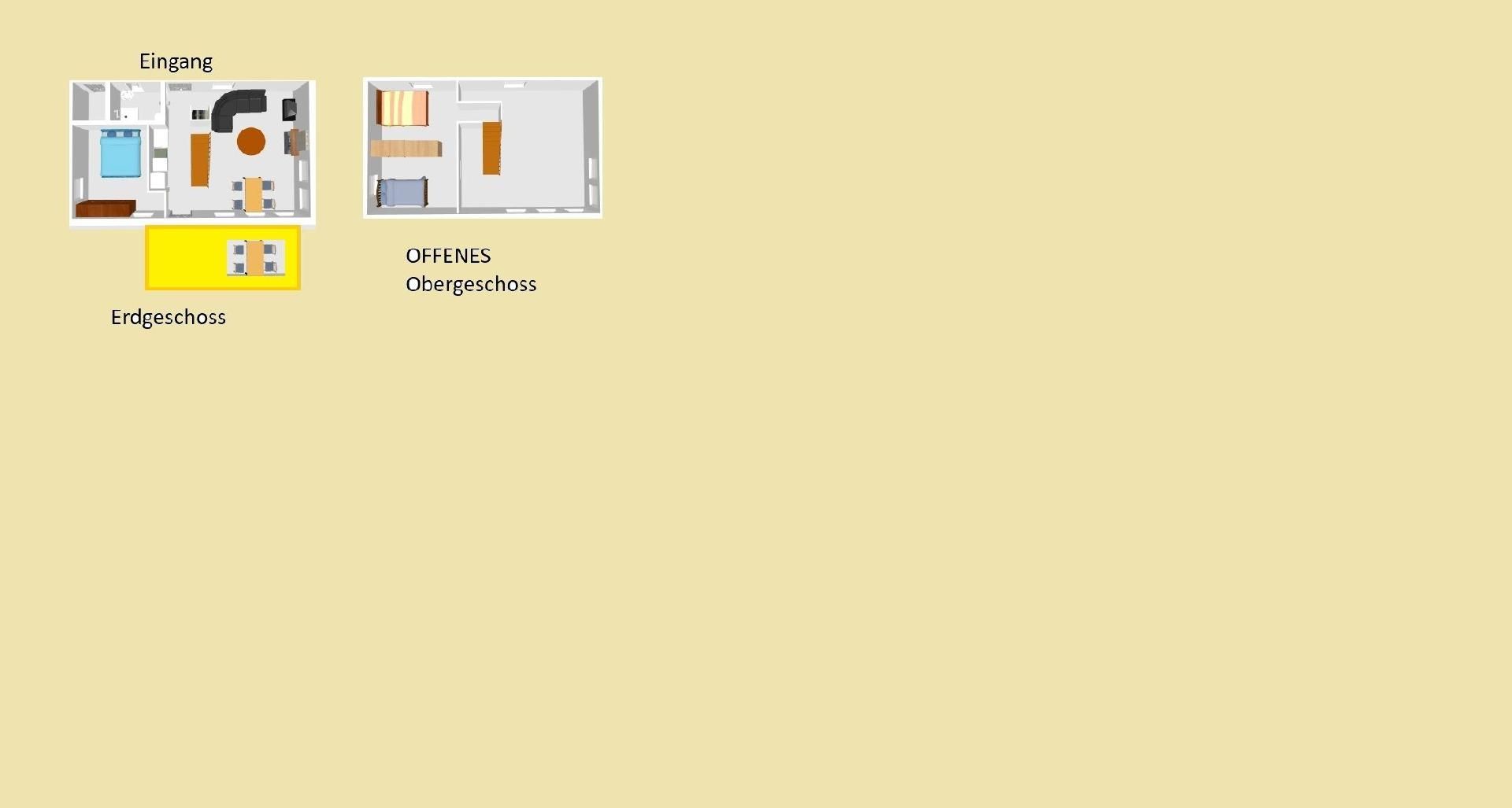 Das Haus besticht durch das offene Konzept. Im Erdgeschoss befinden sich die Küche, die zum Wohnzimmer und zum Essbereich offen ist. Das Bad sowie das Schlafzimmer im Erdgeschoss sind abschließbar. Die frei im Raum stehende Treppe führt in das offene Obergeschoss. Dort befinden sich 3 weitere Schlafplätze. Vorhanden sind zudem ein Kamin, eine Terrasse mit Gartenmöbel, Grill, Feuerkorb, ein Fahrradabstellraum und Pkw-Stellplätze.