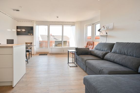unsere geräumige Ferienwohnung über 2 Etagen, nur 300 Meter von der malerischen Strandpromenade in Kellenhusen entfernt.
