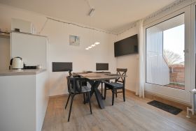 - Ein großes Wohnzimmer lädt zu gemeinsamen Stunden mit Familie oder Freunden ein, inklusive einer Schlafcouch (1 m breit) für eine Person.