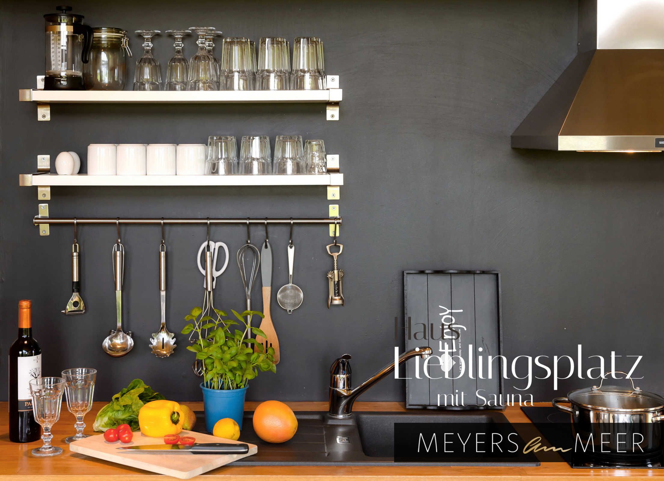 Die Küche ist mit allem ausgestattet, was Sie für die Selbstversorgung benötigen: Geschirrspüler, Spüle, Herd mit Ceranfeld und Backofen, Abzugshaube, Kühlschrank mit Gefrierfach, Kaffeemaschine, Toaster, Wasserkocher, Geschirr und Utensilien für bis zu 6 Personen.
