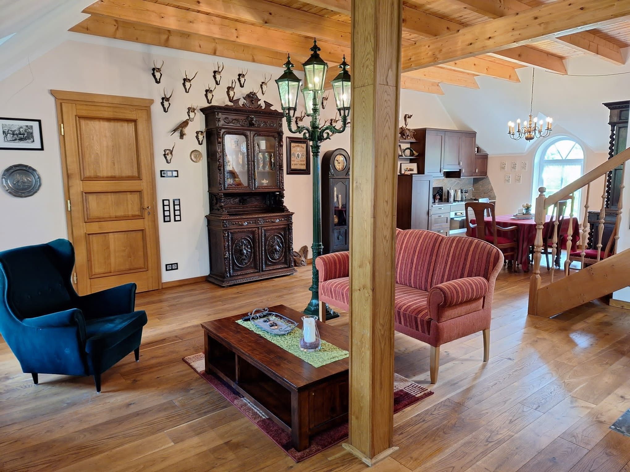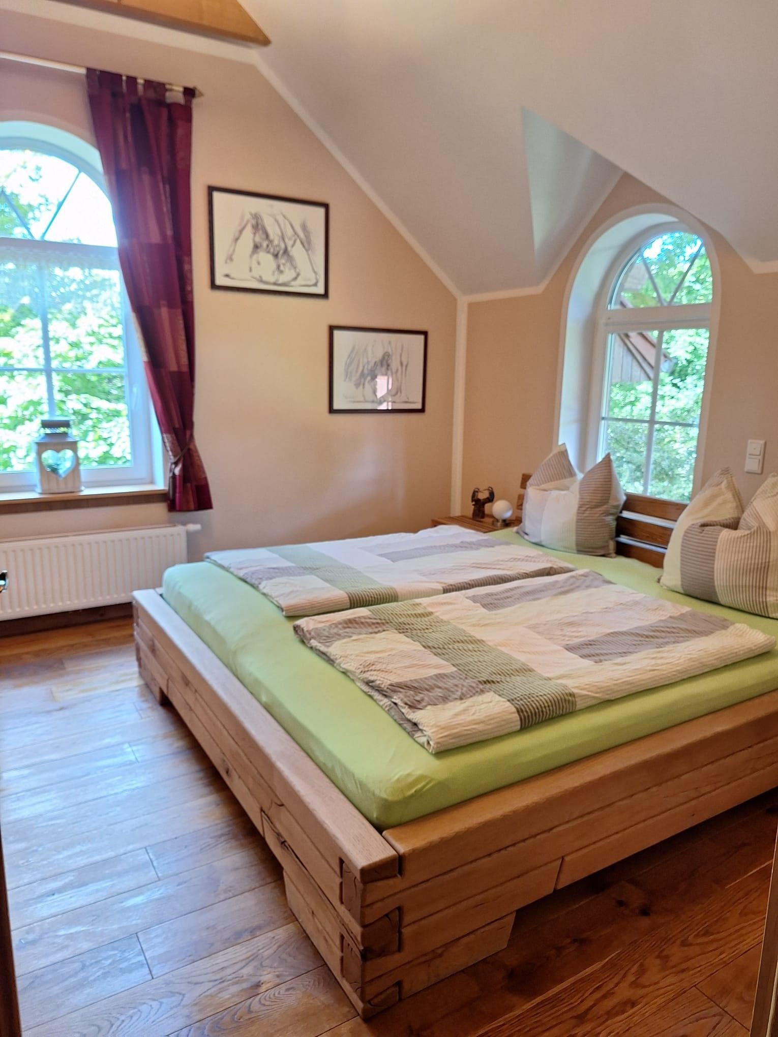 Separater Eingang, offenes Wohnzimmer mit komplett eingerichteter Küche (Ofen und Mikrowelle) und Essbereich, 2 Doppelschlafzimmer (1 Doppelbett ist 2,20 m lang), (1 x Dachboden), Dusche/WC (große Dusche/Wellnessdusche), TV und Radio, WLAN, Waschmaschine und Trockner nach Absprache benutzbar.
