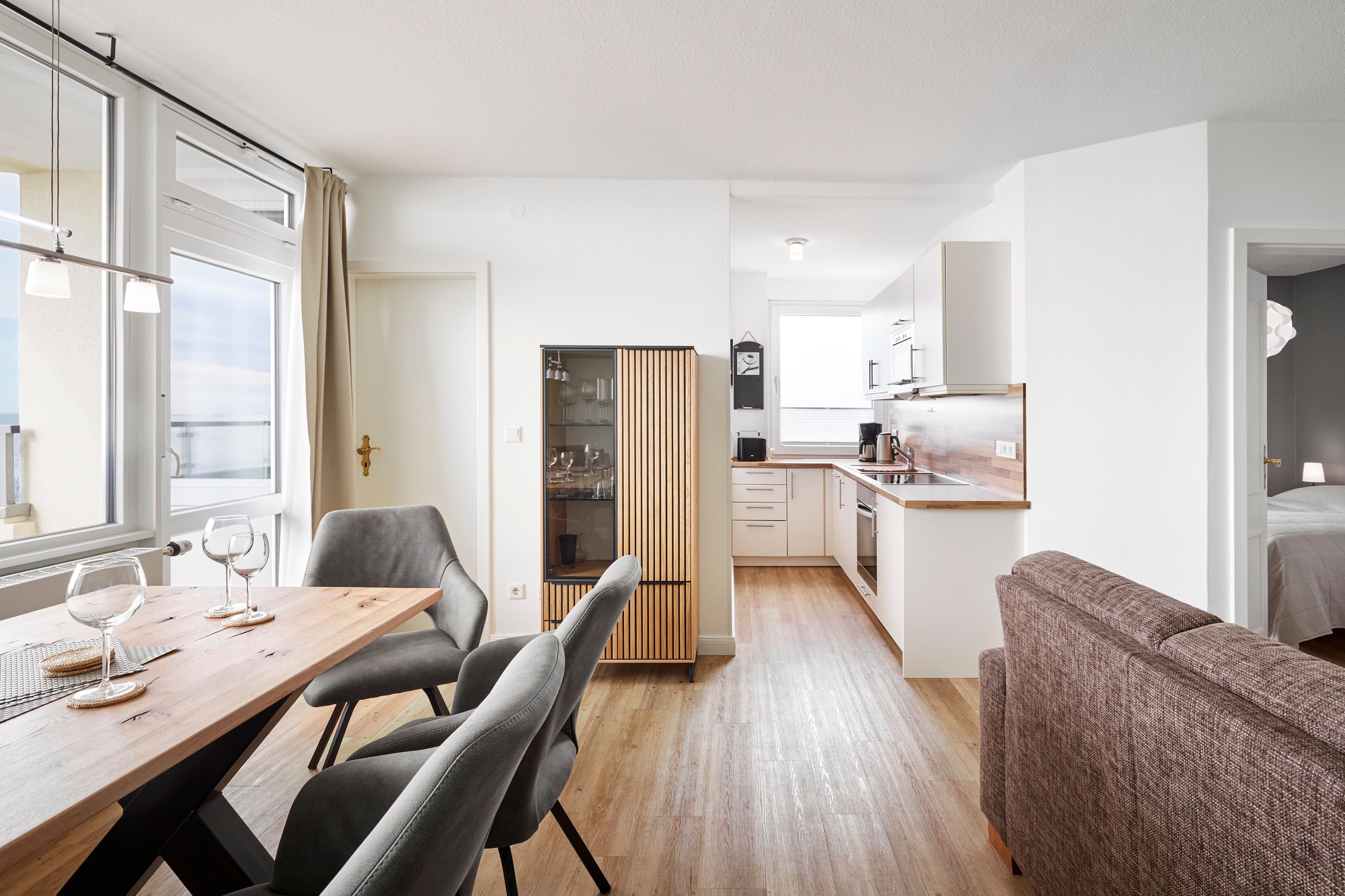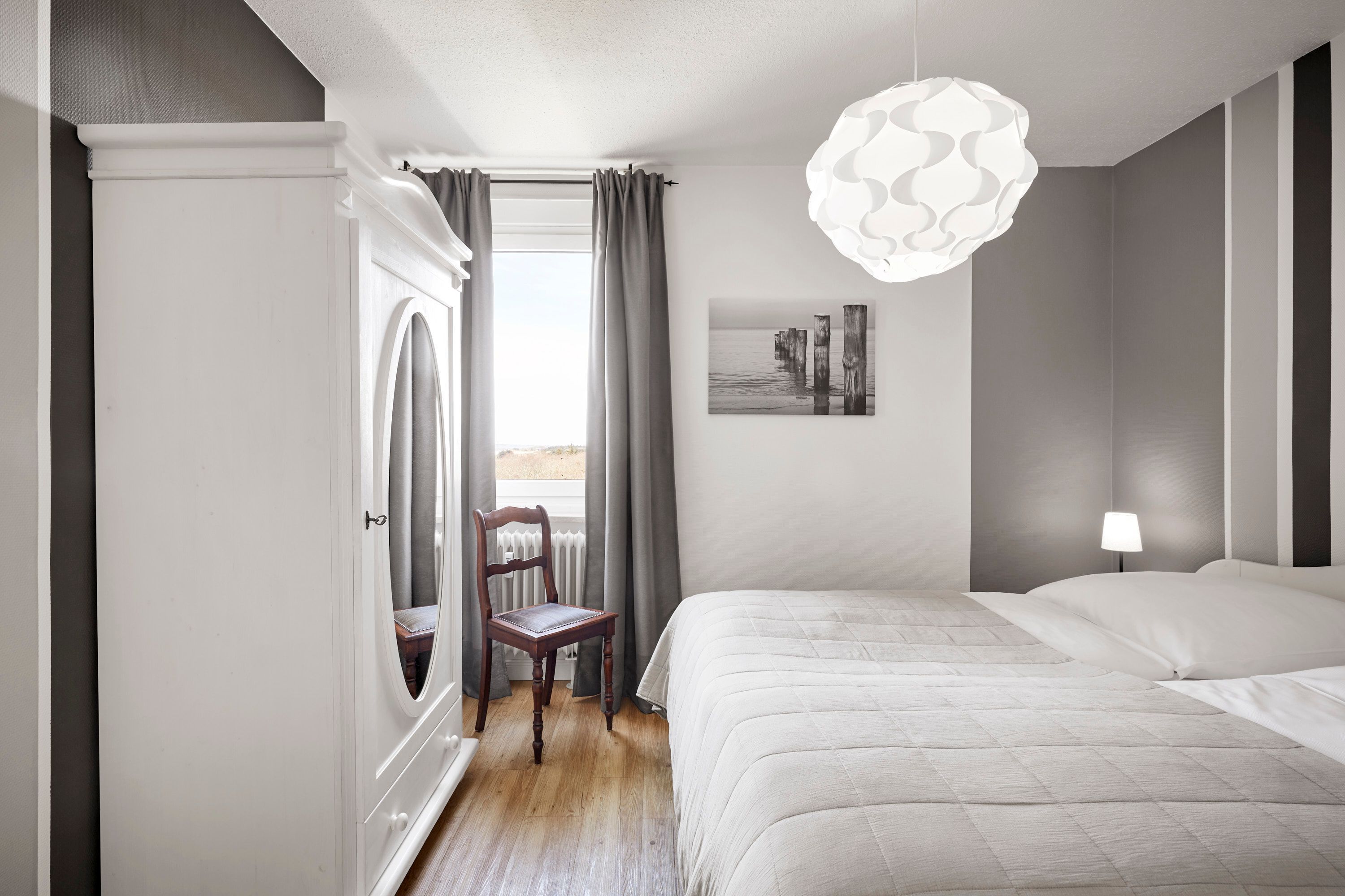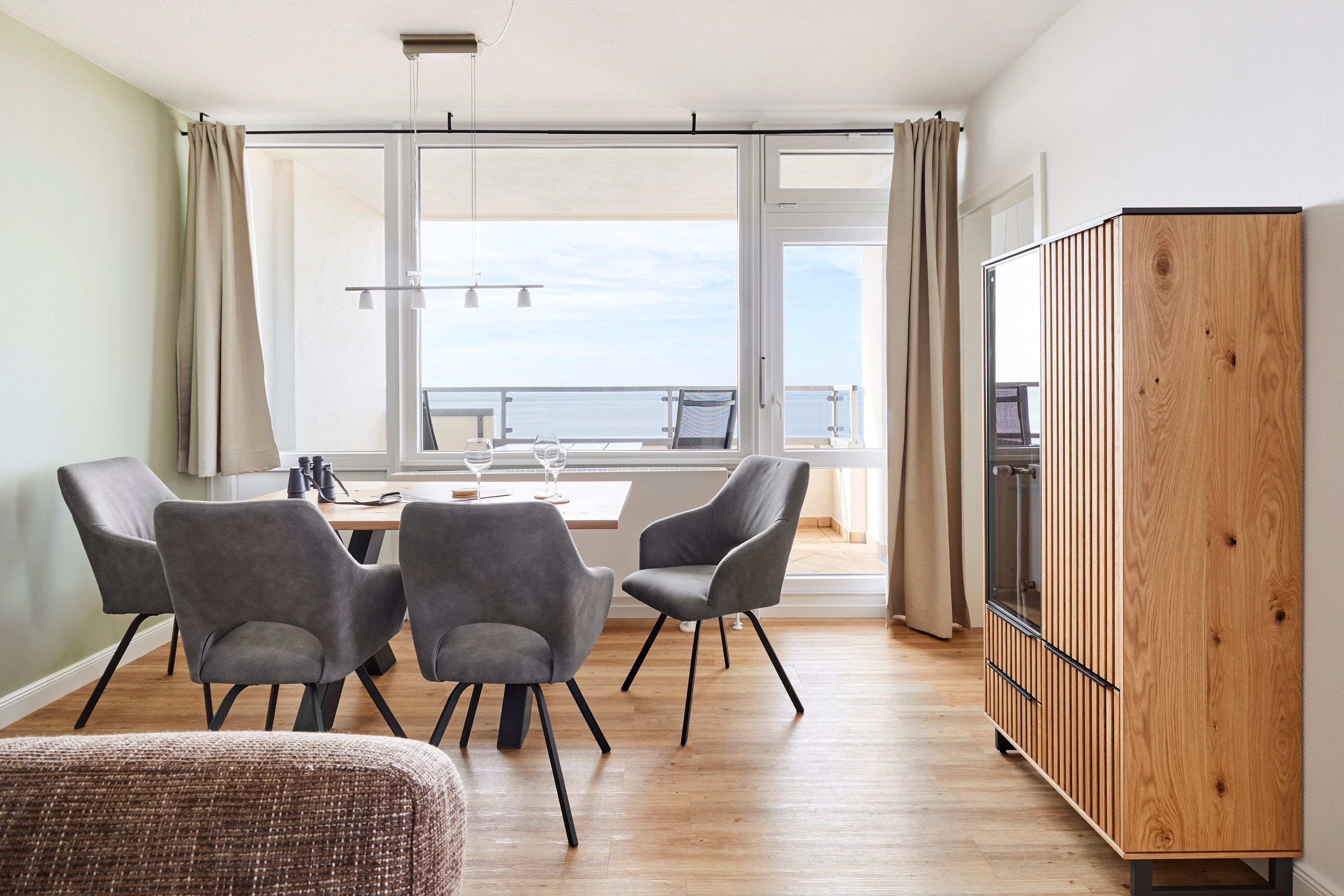 Das Haus Uthlande befindet sich in einer Ferienanlage am Rande von Wyk. Mit Blick auf die Nordsee, dem gegenüberliegenden Golfplatz und dem nahen Freizeitflughafen bietet die Wohnung mit dem Sandstrand vor der Tür, einer Wassersportschule in Laufnähe, sowie den traditionellen Reetdachhäusern auf eigenen Warften in Greveling, ein schönes Freizeitangebot. Die Wohnung befindet sich in der siebten Etage und wurde mit viele Liebe zum Detail eingerichtet. Genießen Sie den traumhaften Blick über die Nordsee, an stürmischen Tagen von der gemütlichen Essbank aus, oder lassen Sie sich auf dem überdachten Balkon schon beim Frühstück von der Sonne kitzeln.