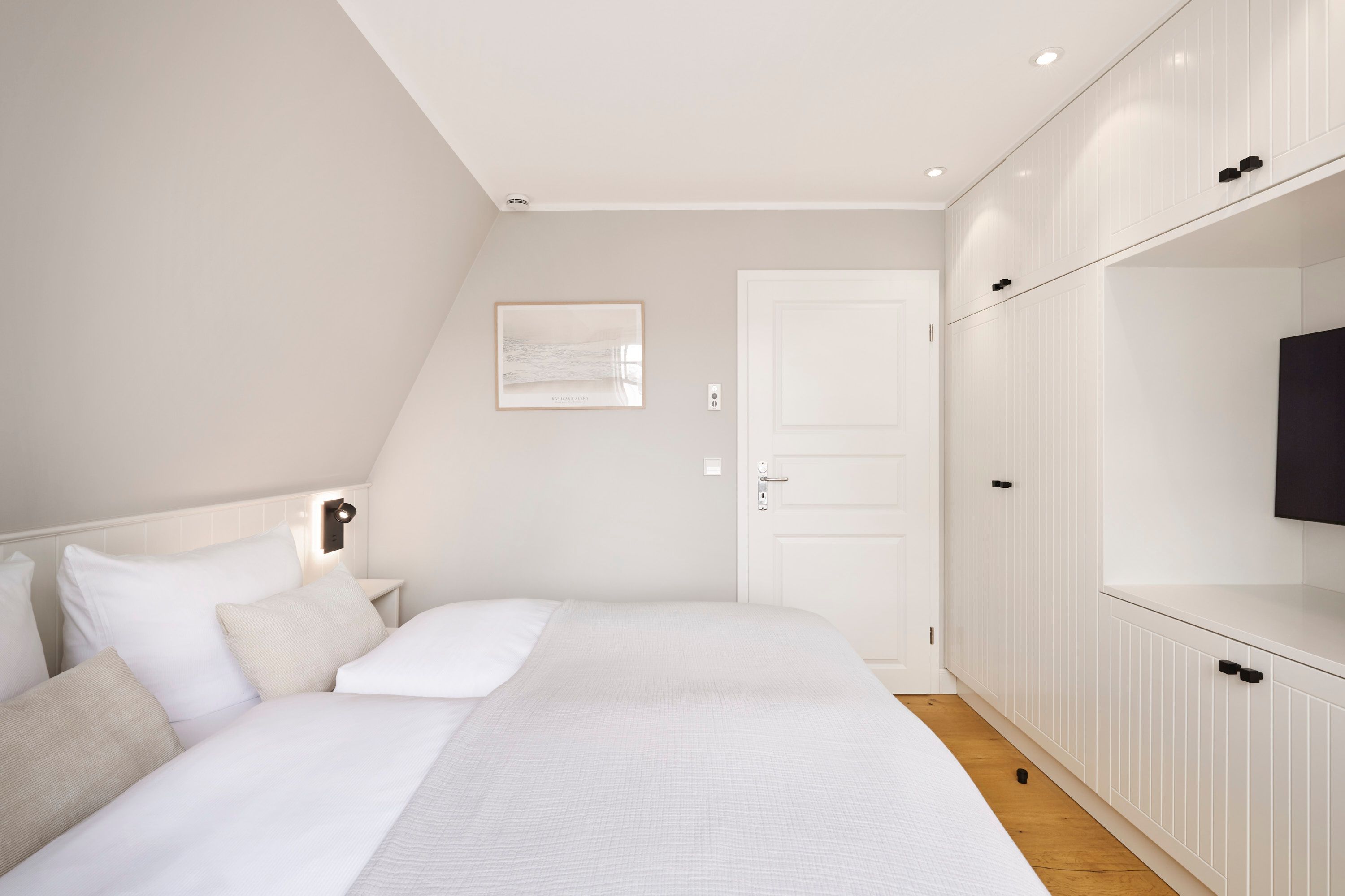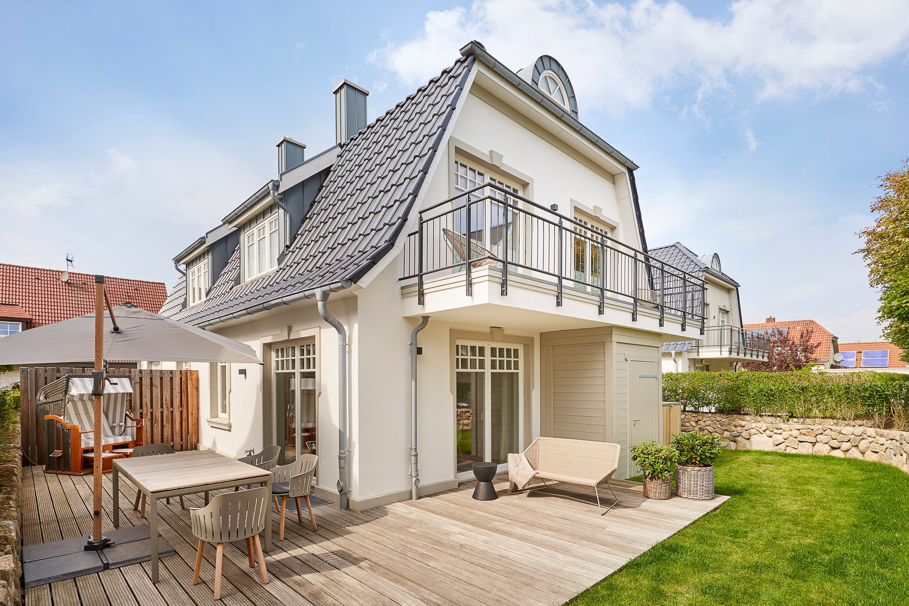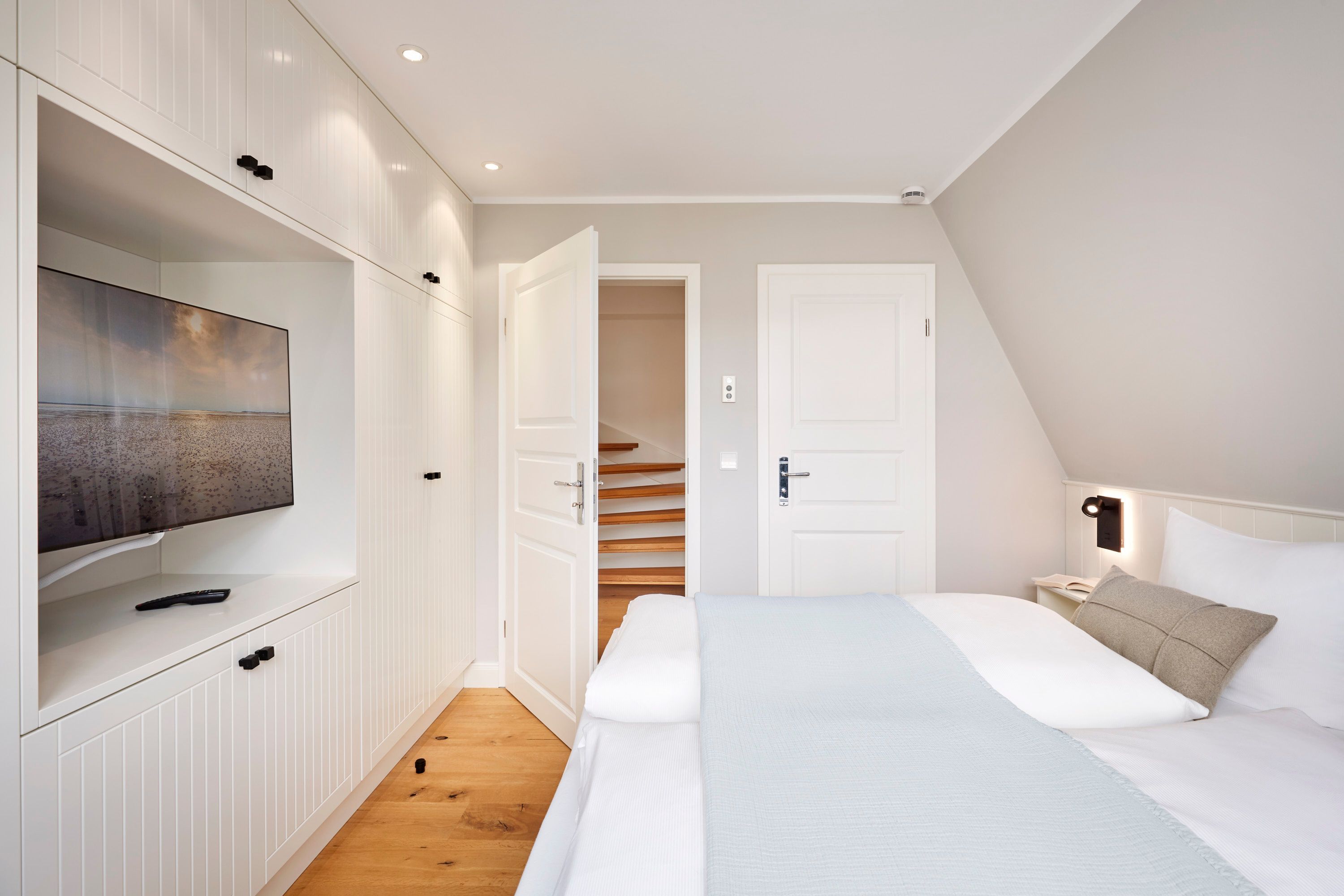 Im Sommer können Sie schon morgens Ihr Frühstück auf der Terrasse genießen und die Meeresbrise spüren. Im Obergeschoss befinden sich zwei Doppelbettschlafräume und ein Duschbad. Aus einem der Schlafräume können Sie sogar einen Blick auf die Nordsee erhaschen. An beiden Schlafzimmern gibt es einen kleinen Balkon, für den ersten Kaffee am Morgen oder ein Glas Wein am Abend.