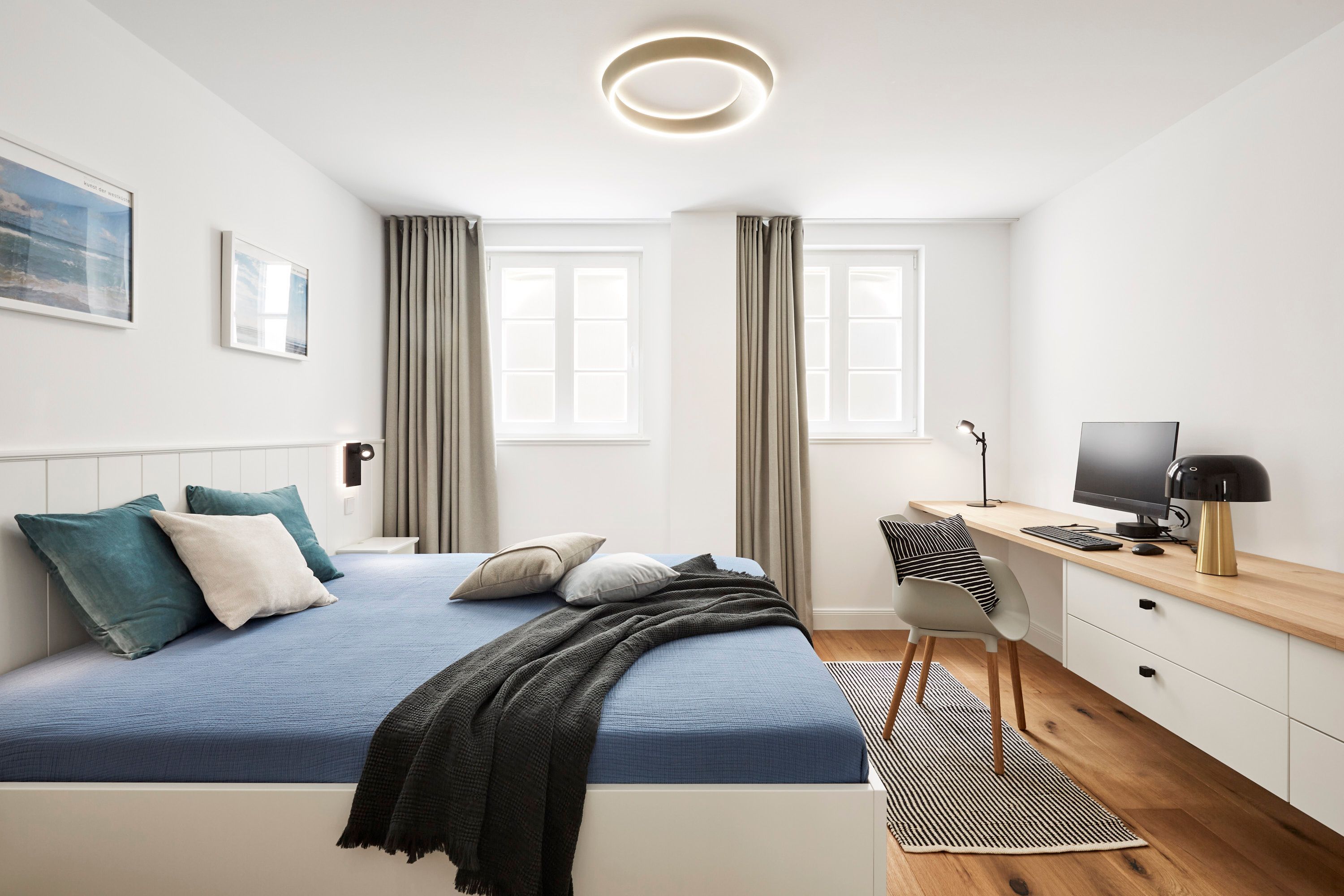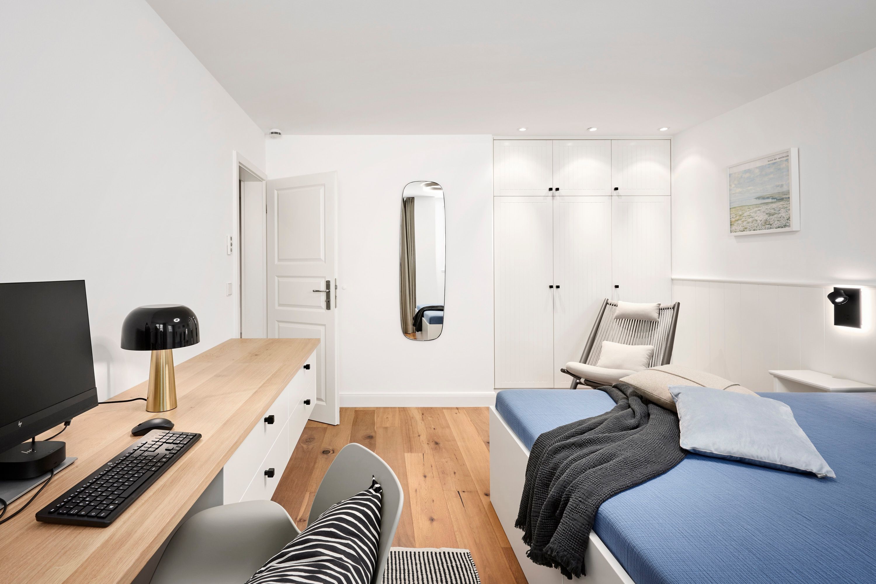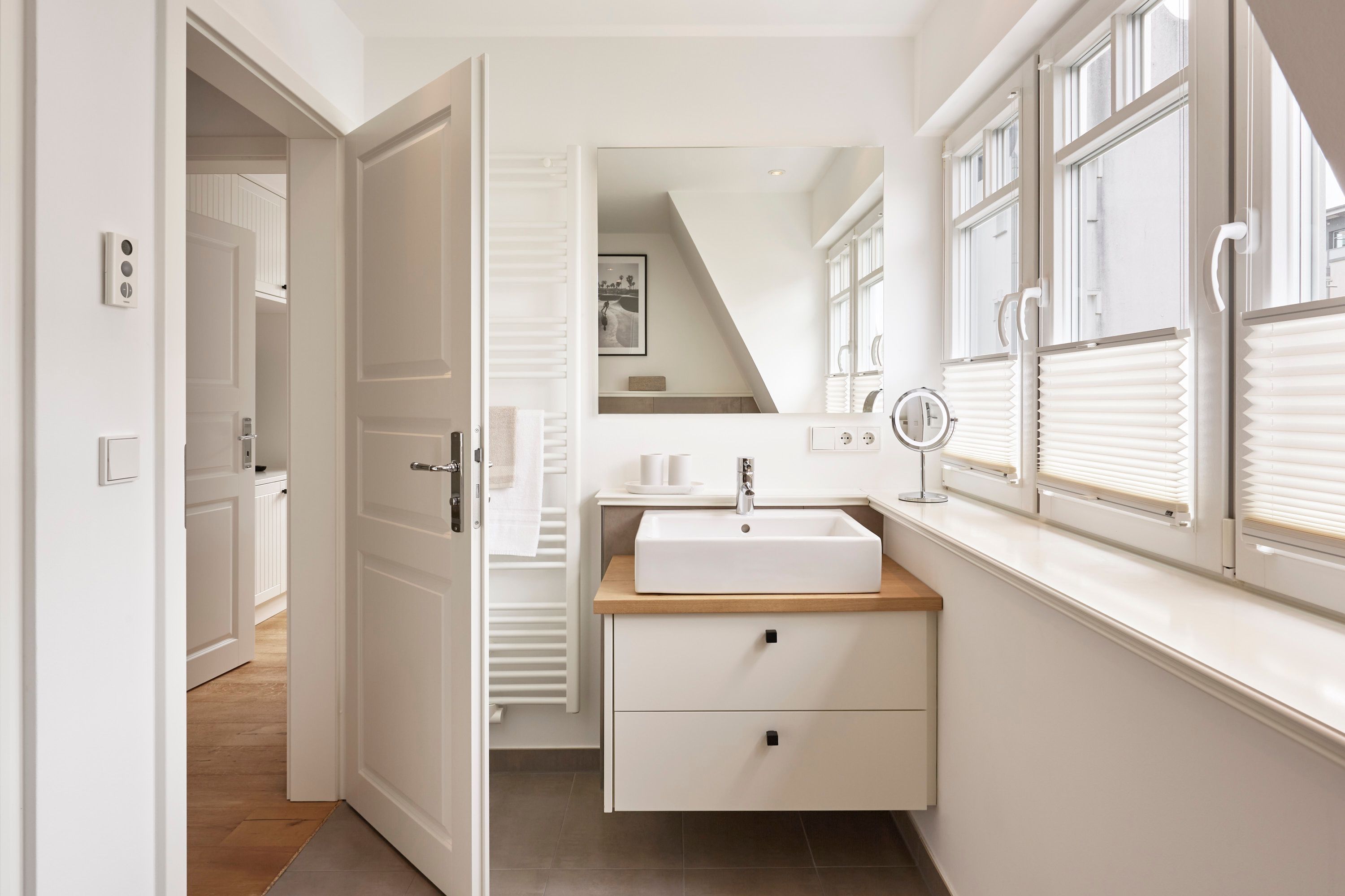 Im Sommer können Sie schon morgens Ihr Frühstück auf der Terrasse genießen und die Meeresbrise spüren. Im Obergeschoss befinden sich zwei Doppelbettschlafräume und ein Duschbad. Aus einem der Schlafräume können Sie sogar einen Blick auf die Nordsee erhaschen. An beiden Schlafzimmern gibt es einen kleinen Balkon, für den ersten Kaffee am Morgen oder ein Glas Wein am Abend.