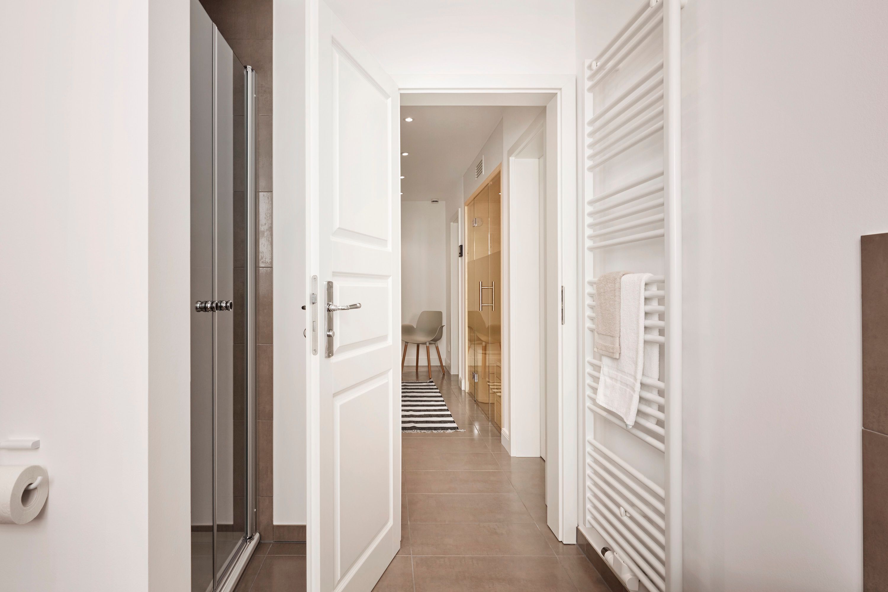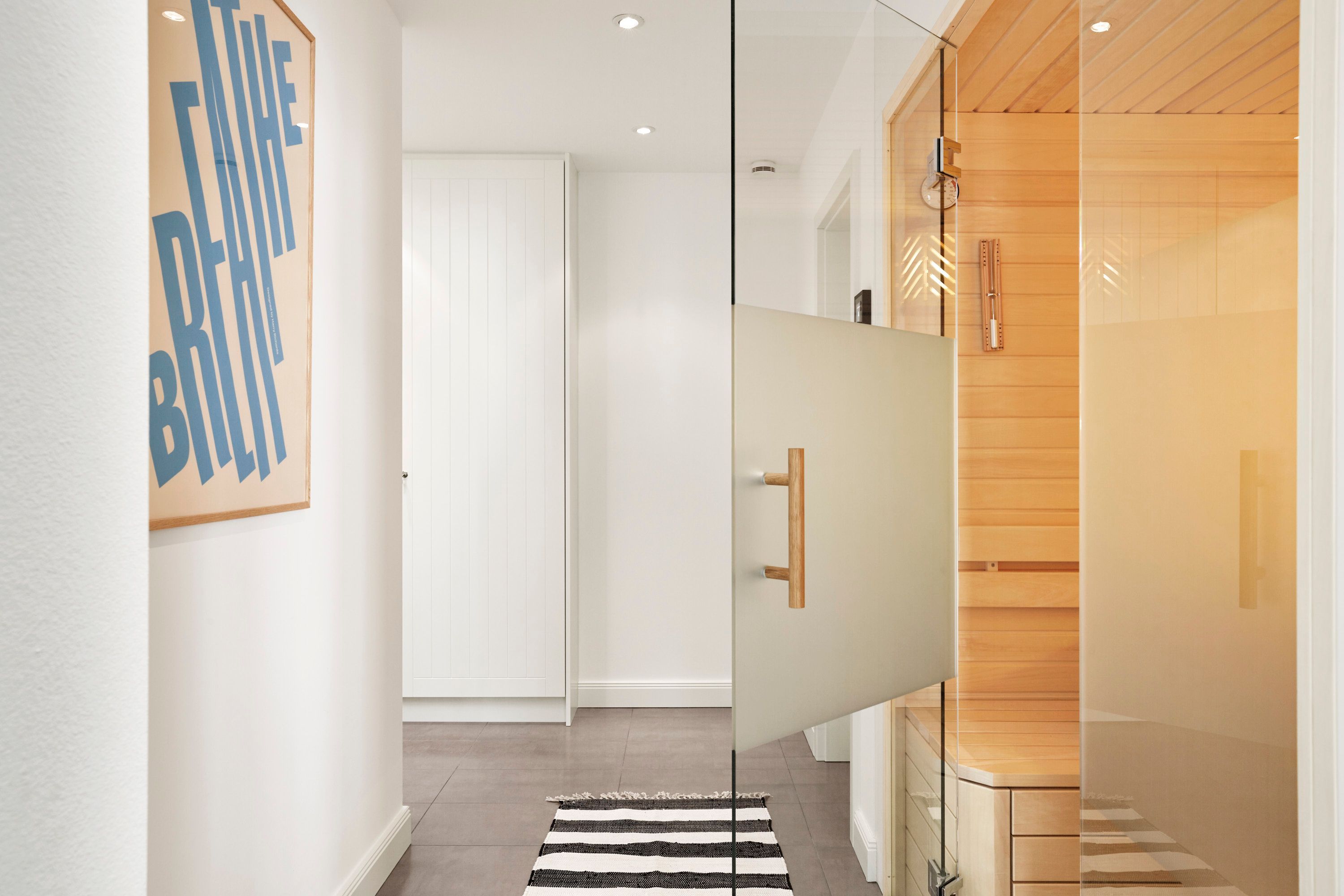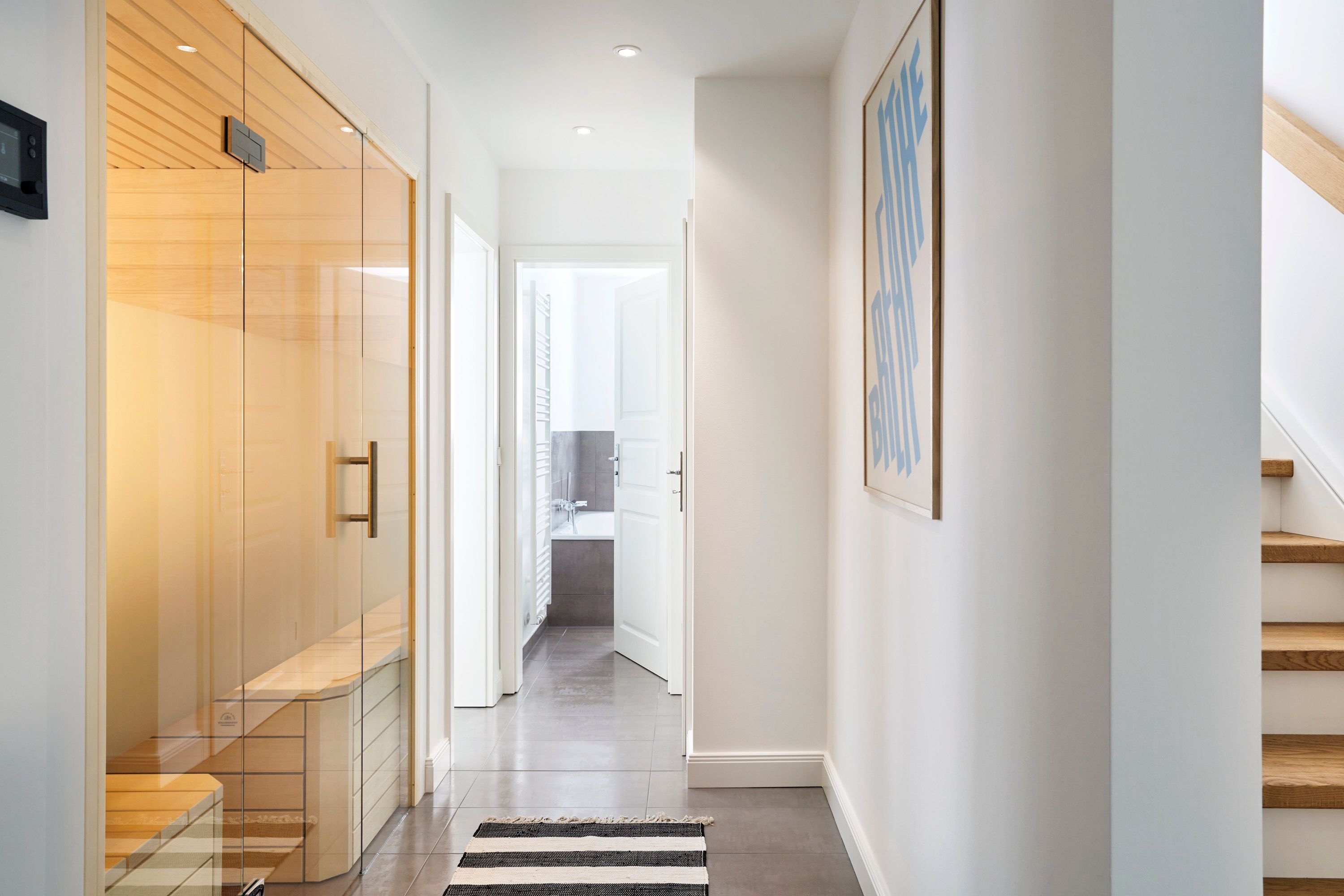 Im Untergeschoss befindet sich eine Saune mit Glasfront. Diese lädt gerade im Winter zu einem Wellnesstag ein. Ein großes Duschbad ist gleich nebenan. Zusätzlich gibt es noch ein Zimmer zum Relaxen und - falls man im Urlaub wirklich mal arbeiten muß einen Schreibplatz.