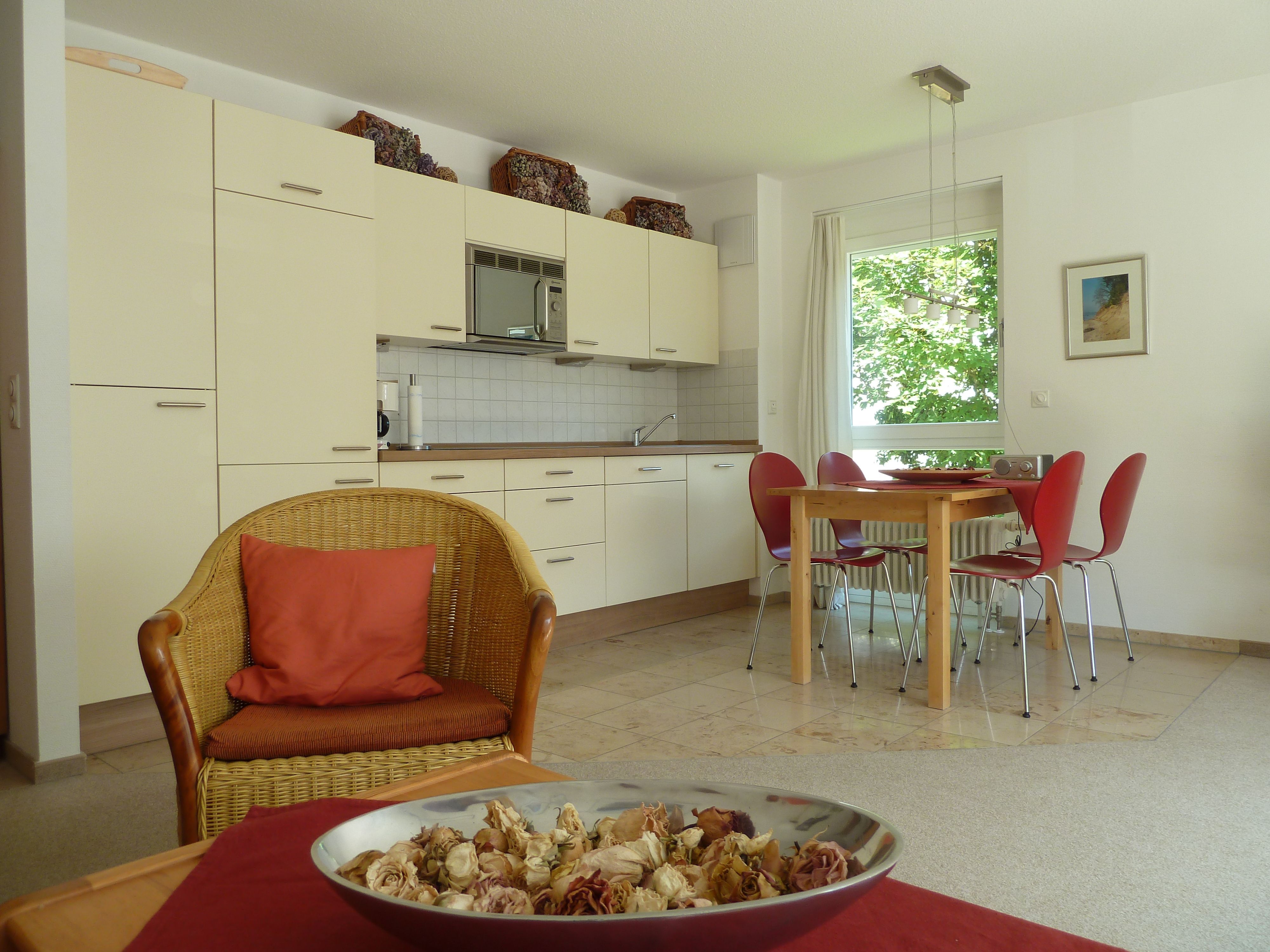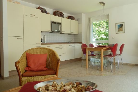 Sie lieben Wasser, Sand und Strand und wollen sich in einer komfortabel und individuell eingerichteten Ferienwohnung erholen? Dann sind Sie in der Dünenvilla richtig. 2000 wurde die Dünenvilla, in der sich die Ferienwohnung befindet, gebaut. Sie steht auf einem begrünten Grundstück, das von einem Zaun umgeben ist. Im Haus gibt es insgesamt 6 Wohnungen. Die Wohnungen werden nicht an Hundebesitzer vermietet. Die Ferienwohnung liegt im 2. OG und ist nach Süden ausgerichtet. Außenjalousien und Vorhänge im Inneren bieten bei Bedarf Schutz vor der Sonne. Der sonnige Südbalkon lädt zum Verweilen vom Frühstück bis zum Abend ein. Er ist mit zwei Stühlen, einem Tisch und einem Sonnenschirm möbliert. Die Wohnung ist für 2 Personen ausgelegt. Das Schlafzimmer ist ebenso nach Osten ausgerichtet wie die Küche mit Essbereich (mit einem seitlichen Meerblick). Auf dem großen Grundstück befindet sich ebenfalls die direkt an der Strandpromenade gelegene Villa Tusculum, die im Jahr 2000 komplett restauriert worden ist. Vor dem Hauseingang befindet sich eine Möglichkeit zum Abstellen von Fahrrädern. Zur Wohnung gehört ein reservierter Parkplatz. Beide Häuser wurden 2022 gestrichen und die Treppenhäuser wurden renoviert.