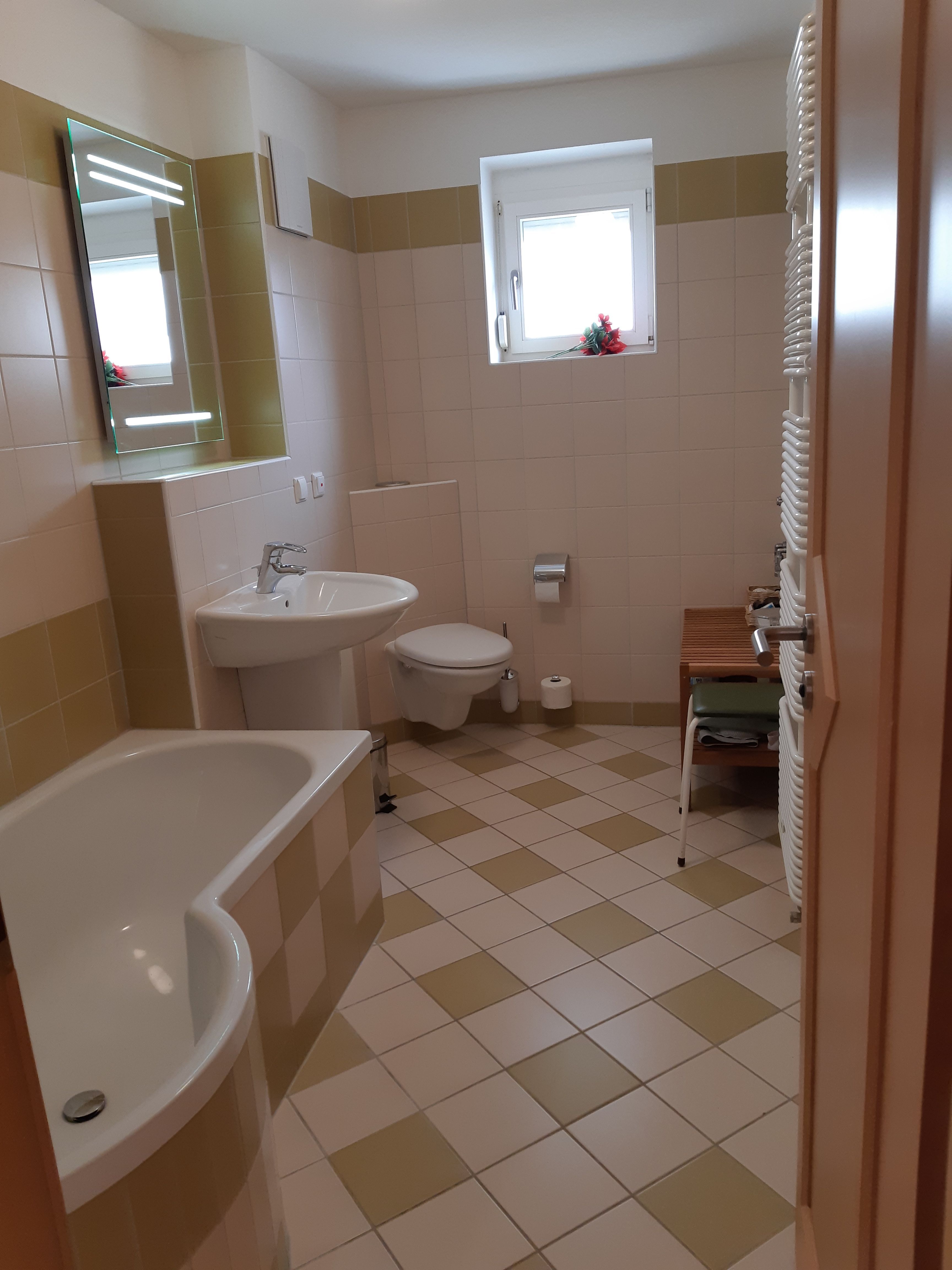 Der Küchenbereich, der Flur und das Bad sind gefliest. Das Bad wird über ein Außenfenster belüftet und hat eine große Badewanne sowie eine integrierte Dusche und selbstverständlich einen Haartrockner.