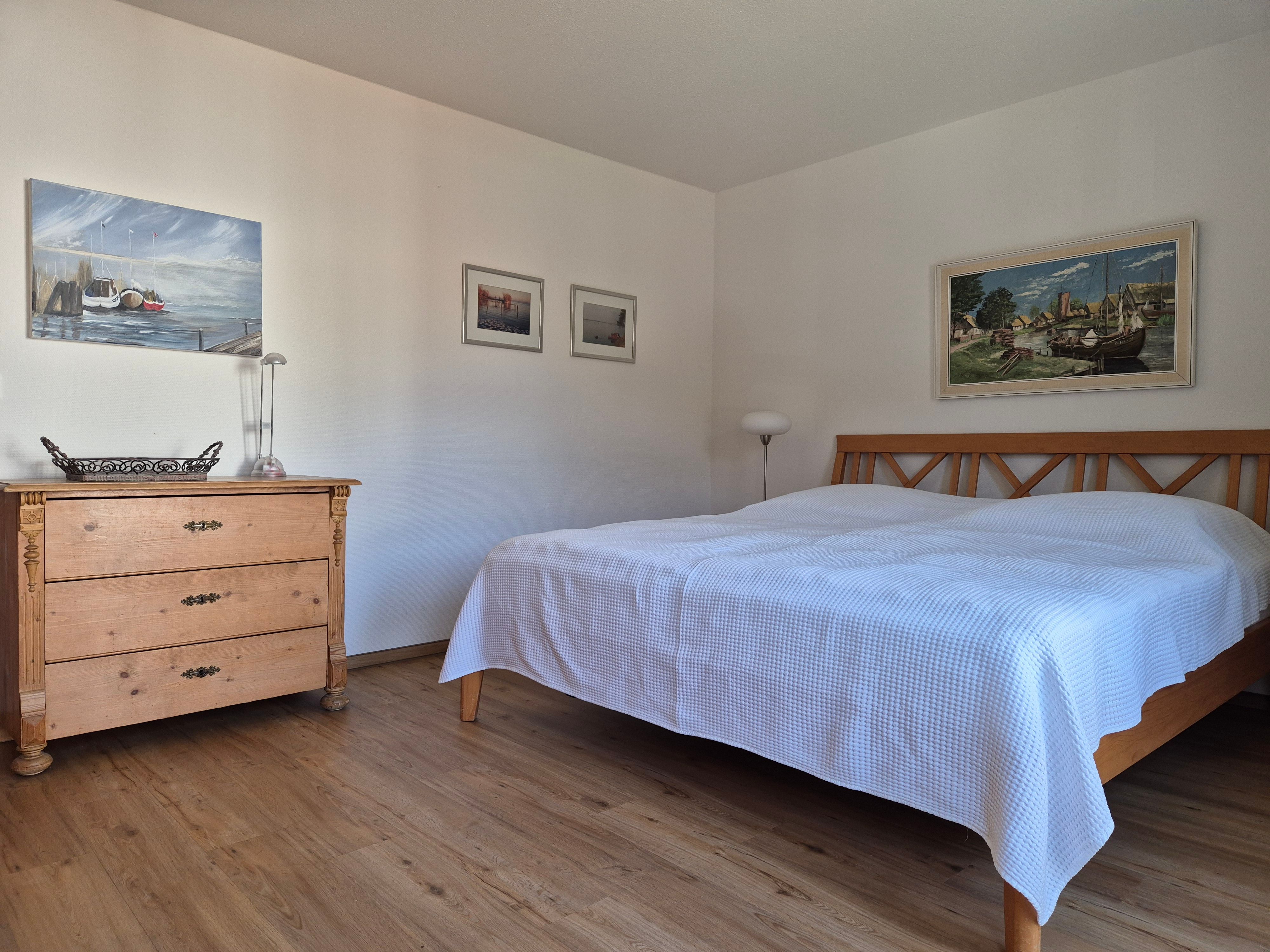 Die Fußböden im Wohnbereich und im Schlafzimmer haben einen angenehm warmen Vinylbelag.