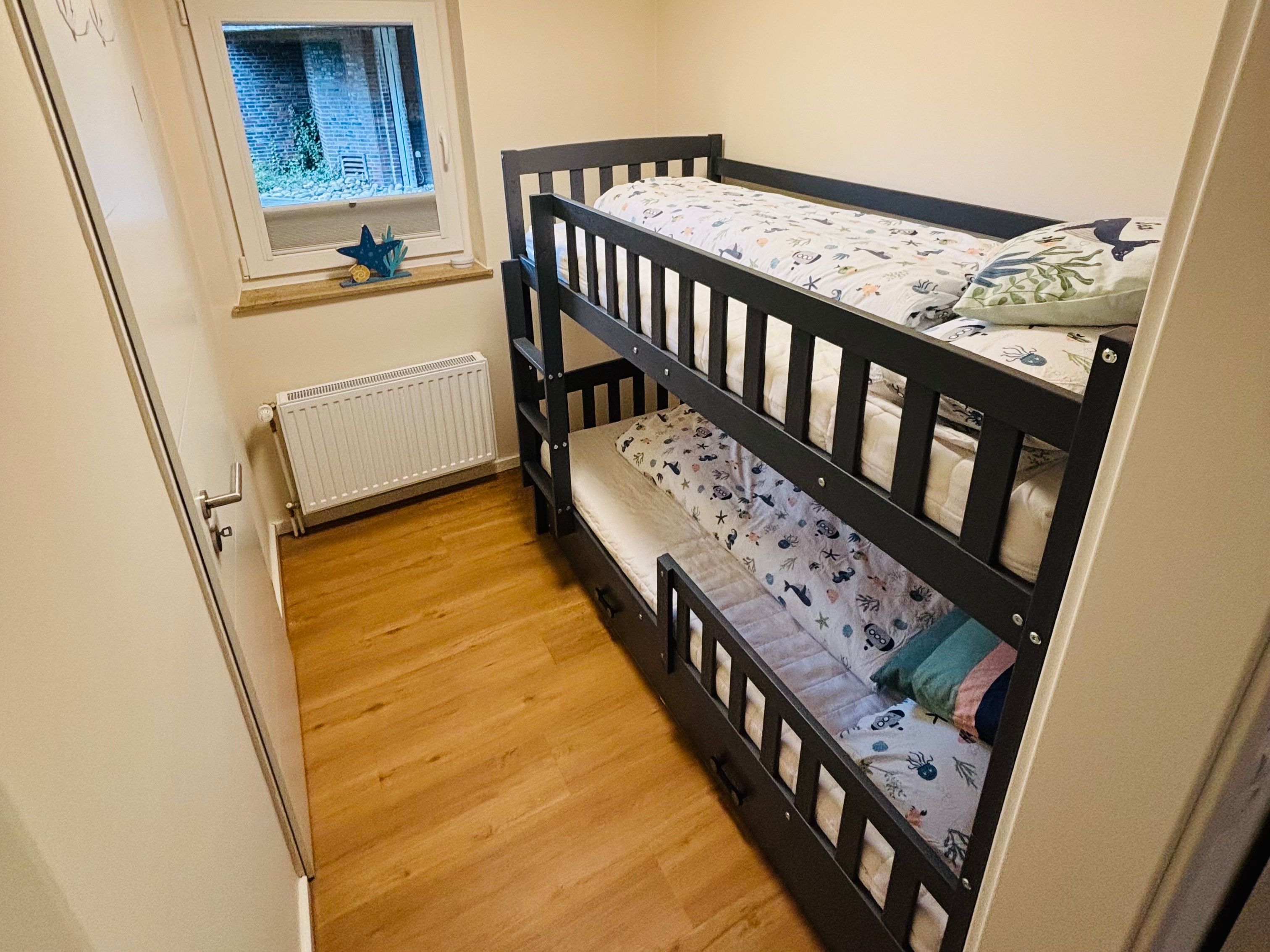 eines mit einem praktischen Hochbett ideal für Kinder oder junge Gäste.