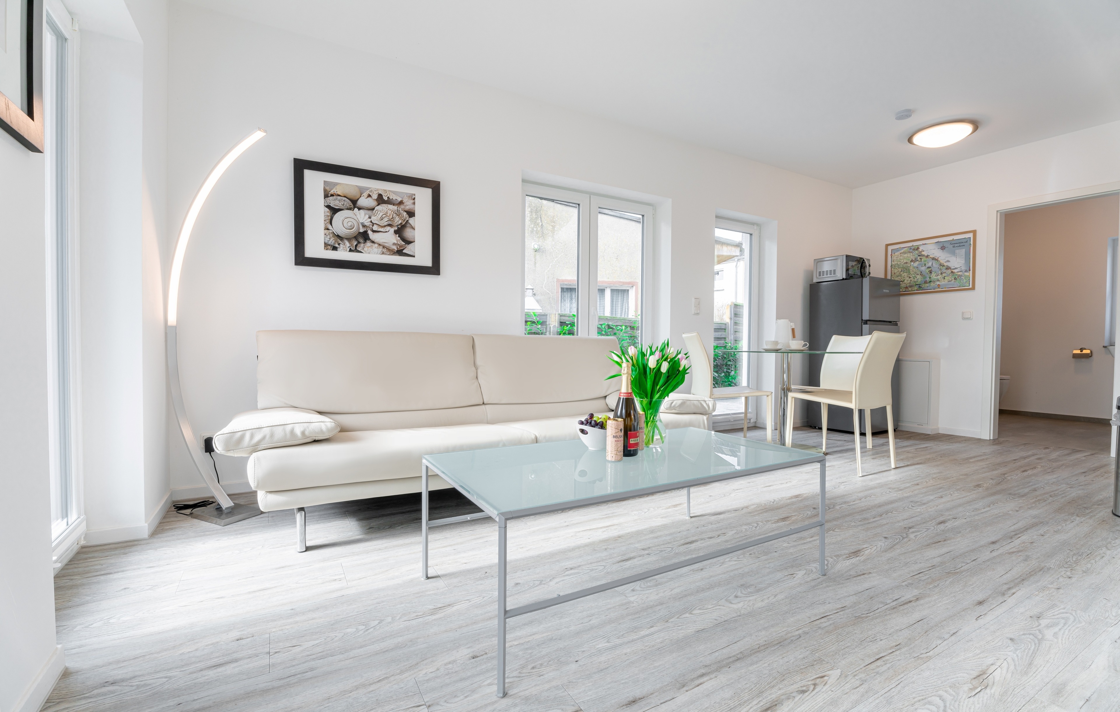 Zwei separate Schlafzimmer mit jeweils einem 160 cm breiten Doppelbett, eine zusätzliche Schlafmöglichkeit auf einem Schlafsessel (90x200) im Wohnbereich, sowie ein weiteres Schlafsofa (80x200) in der Wohnküche.