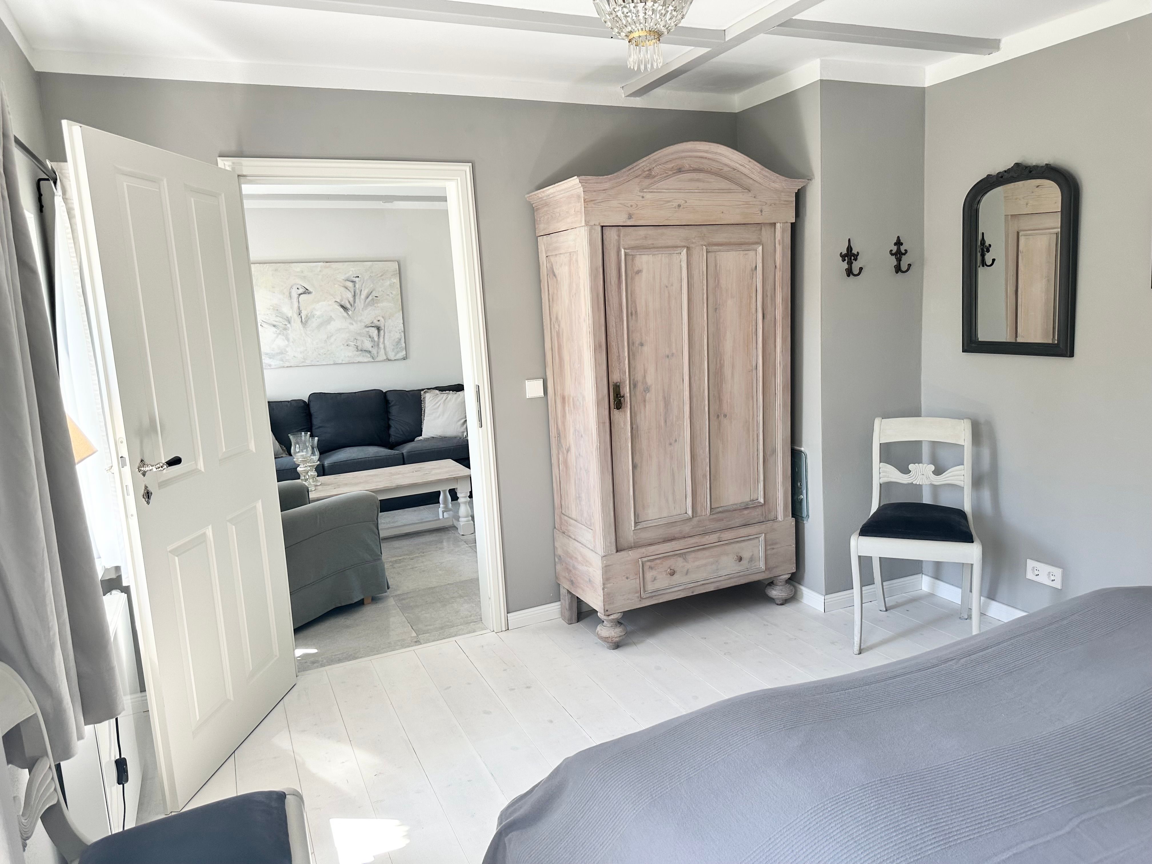 Das Lykkehus besticht durch eine hochwertige Gesamtausstattung mit exklusivem Komfort und sehr hellen und frisch renovierten Räumen. Das Bett im Elternschlafzimmer ist mit luxuriösen, englischen Taschenfederkernmatratzen ausgestattet, damit Sie entspannt schlafen können. Wir haben uns bemüht den Umbau der alten Kate so perfekt wie möglich zu gestalten. Dazu gehört, dass wir die Deckenhöhe im Erdgeschoss erhöht haben, damit man sich nicht den Kopf an niedrigen Deckenbalken stößt, wie es in den alten Katen typisch ist. Bei der Ausstattung haben wir auf eine hochwertige Badausstattung mit großzügiger Dusche und eine komfortable und praktische Küche Wert gelegt.