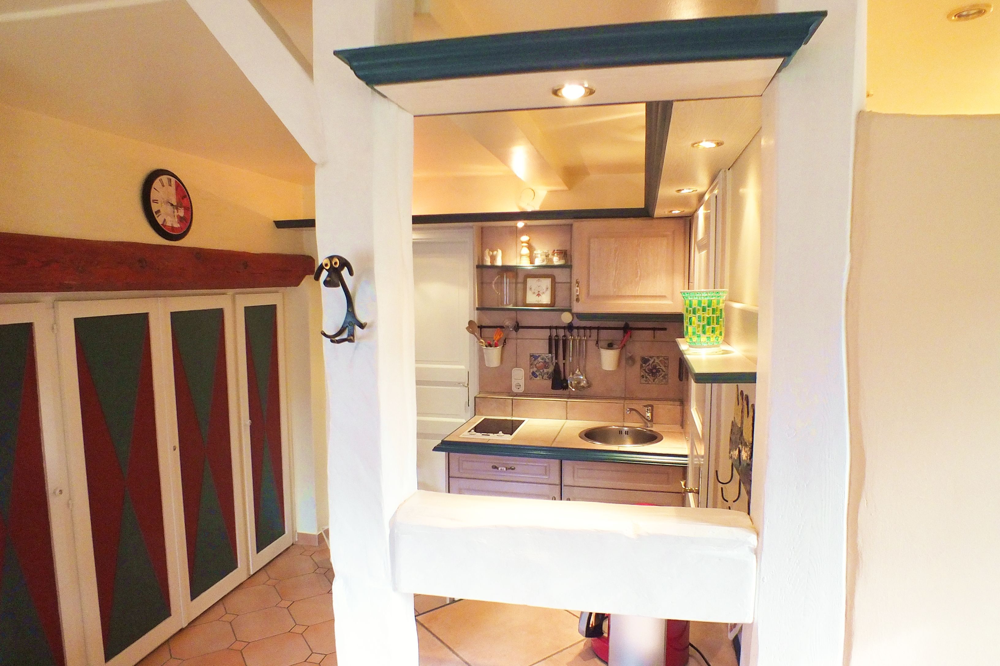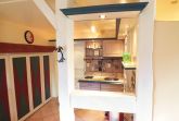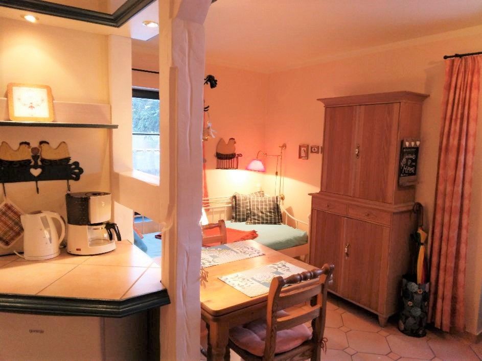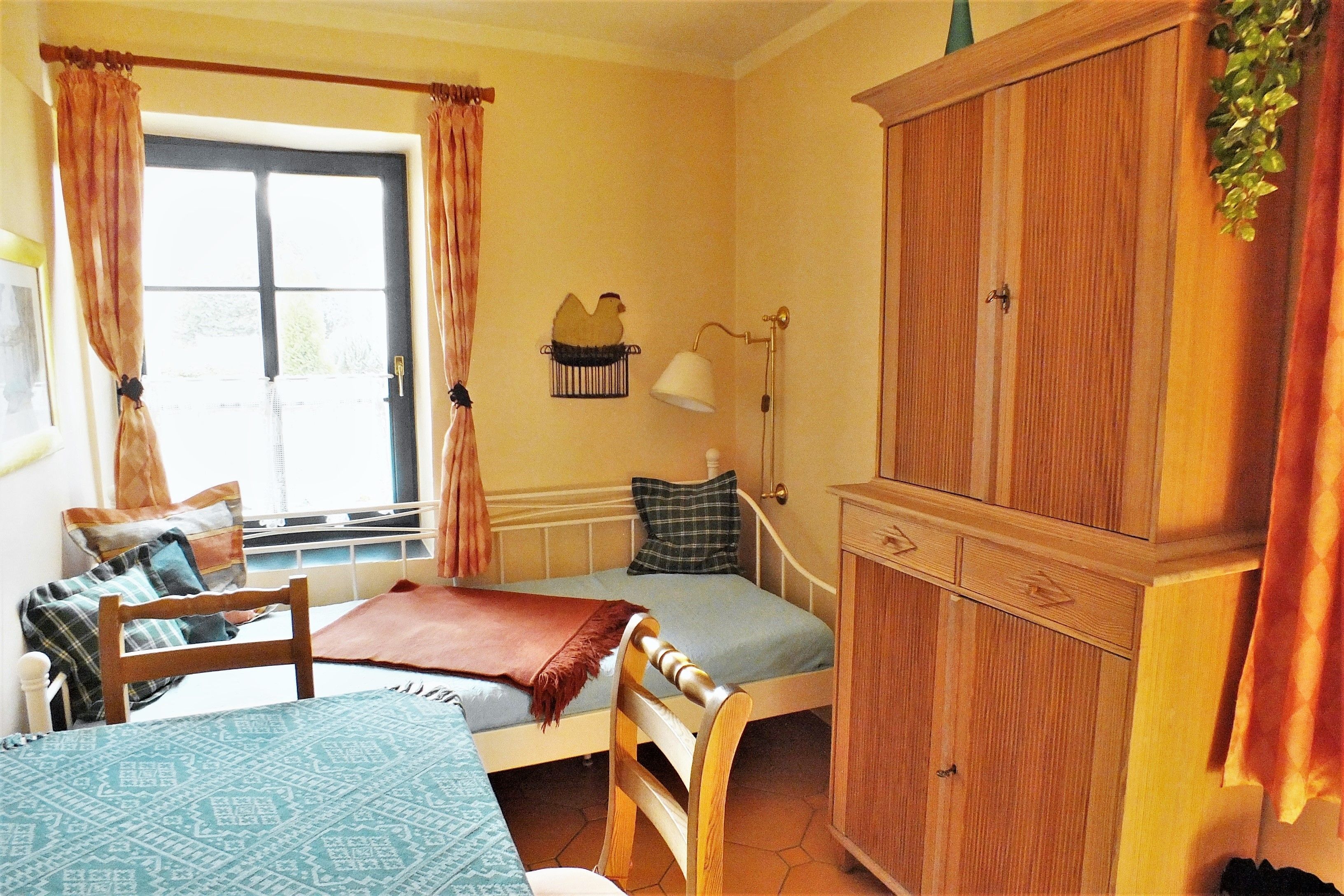 Unsere Ferienwohnung Käpt'n Sun empfängt Sie in offener Wohnart mit einer originellen Wohnküche, von der aus Sie direkt auf die Terrasse und in den weitläufigen Garten gelangen sowie mit Essbereich und Tagessofa. Im Schlafzimmer mit Himmelbett (180 x 200) und gemütlicher Lese-, TV- und Klönecke werden Sie von der Morgensonne geweckt. Den Blick in unseren schön eingewachsenen Garten geben zwei Fenster frei. Käpt'n Sun verfügt über ein schickes Bad mit gefliester, geräumiger Dusche.