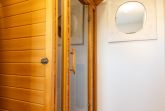 • Badezimmer mit Dusche, WC, Waschtisch sowie eigener Infrarotsauna (betrieben über einen Münzautomaten)