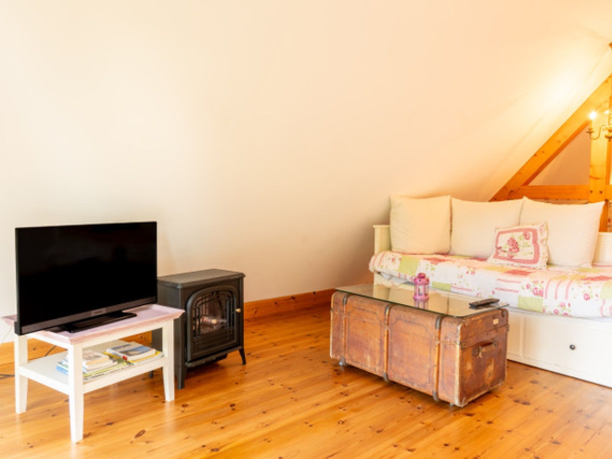 • Offener Wohn- und Schlafbereich mit Doppelbett (zwei Matratzen à 1,00 x 2,00 m)