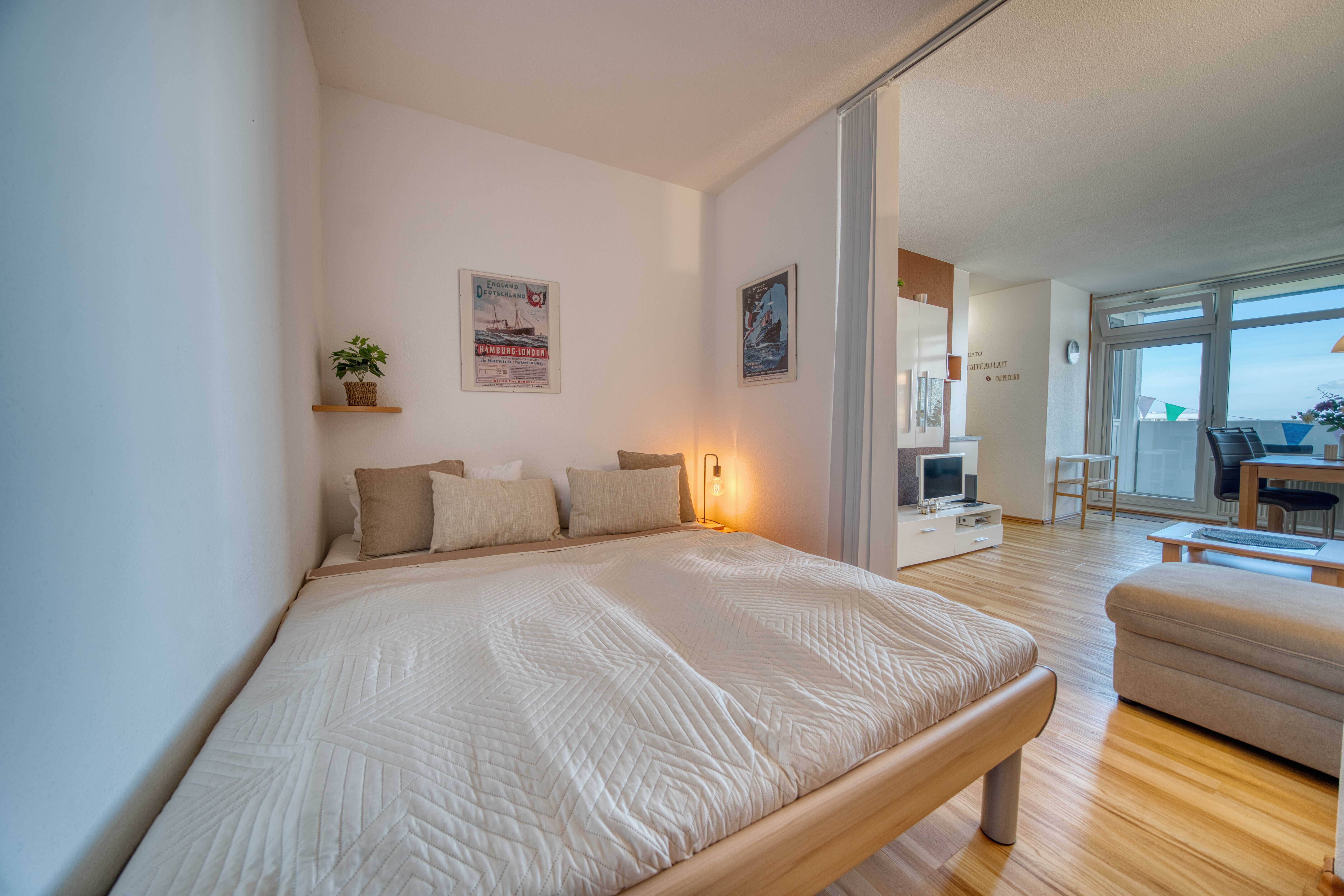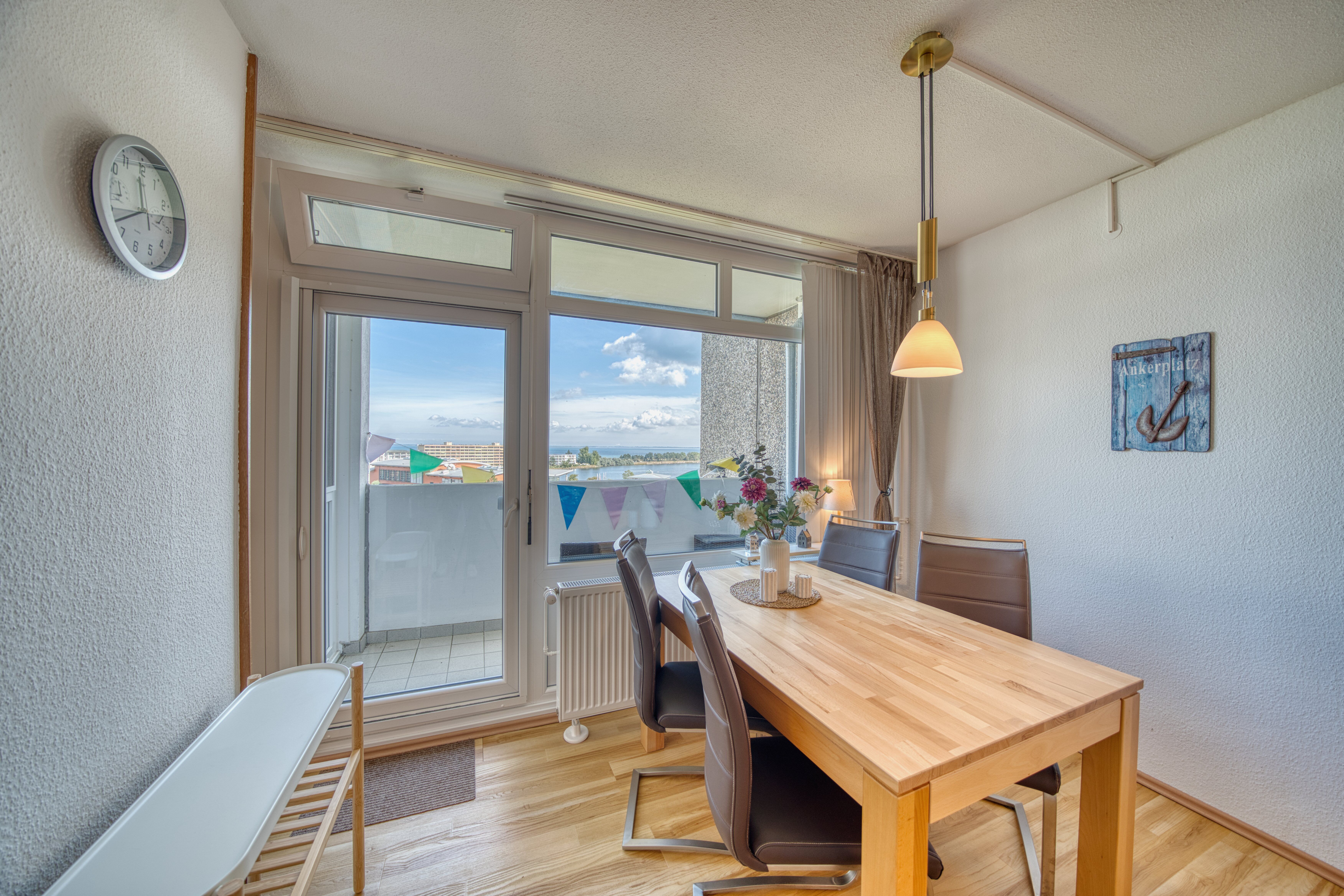 Verbringen Sie einen erholsamen Urlaub in dieser gemütlichen Ferienwohnung im Ferienpark Heiligenhafen. Die Unterkunft im 7. Stock des Hauses L bietet Platz für bis zu 4 Personen und überzeugt mit einem tollen Blick auf den Binnensee und die Ostsee.