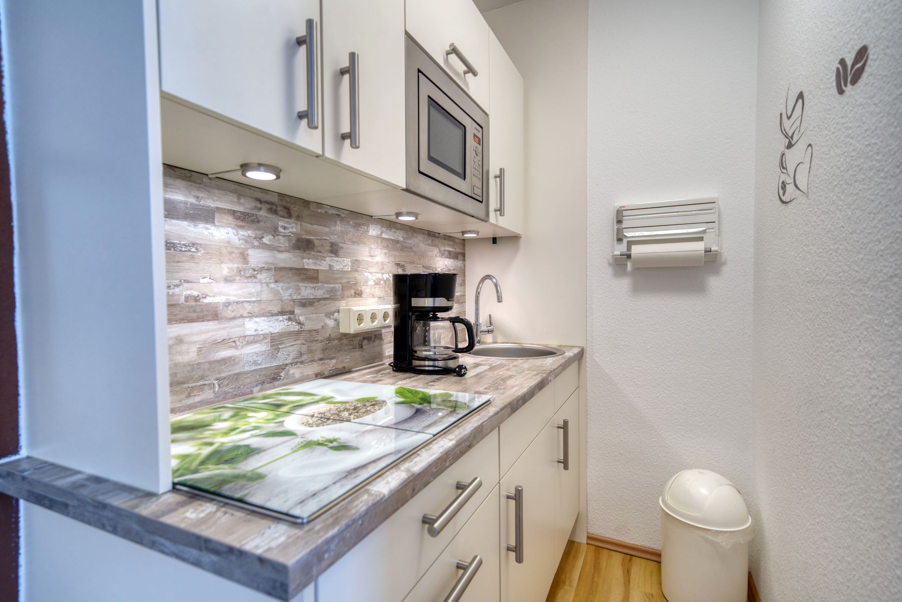 Die Küche verfügt über einen Induktionsherd, auf dem Sie Ihre Mahlzeiten zubereiten können. Ein WLAN-Anschluss steht Ihnen ebenfalls zur Verfügung, sodass Sie jederzeit online sein können.