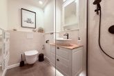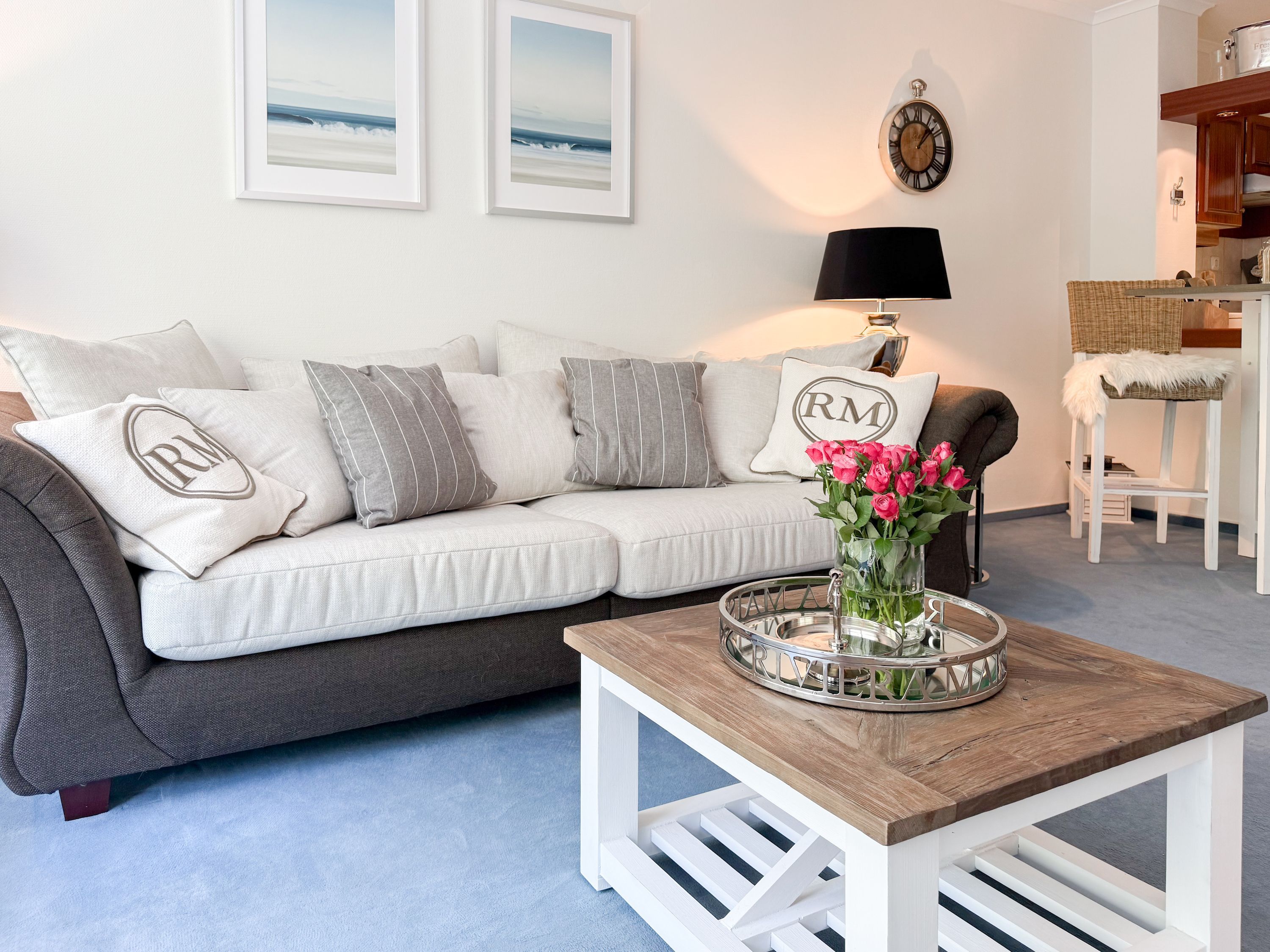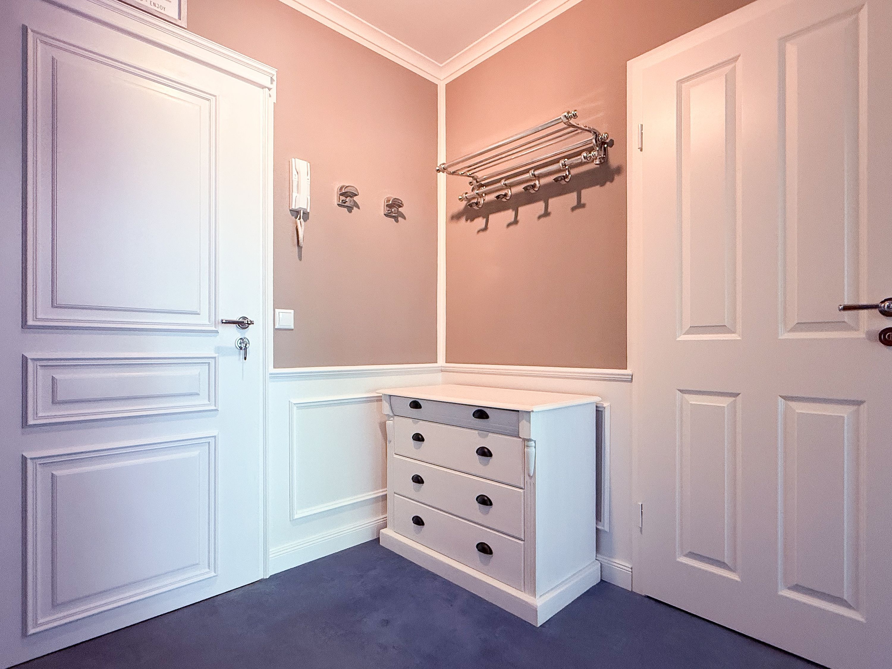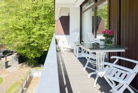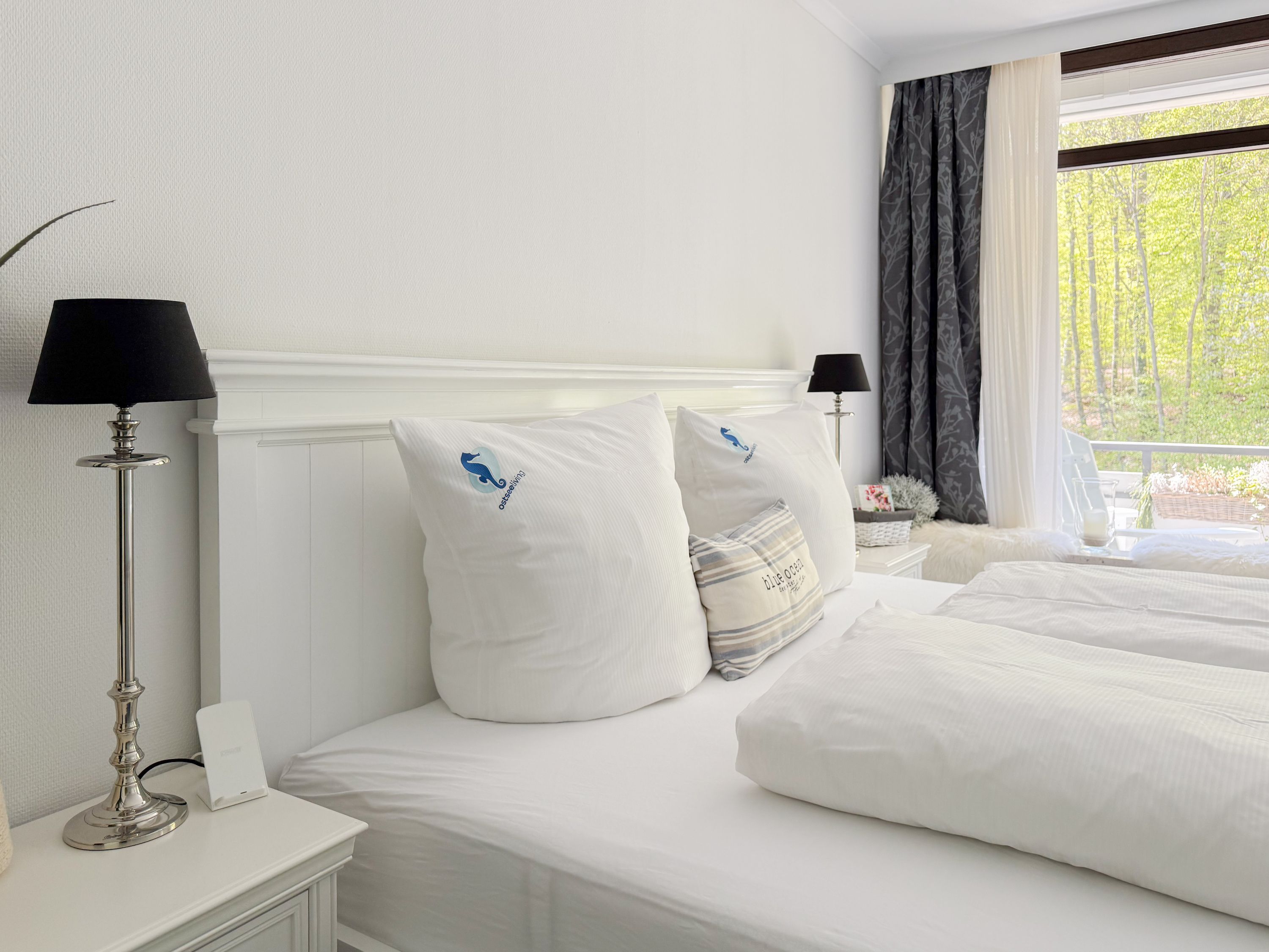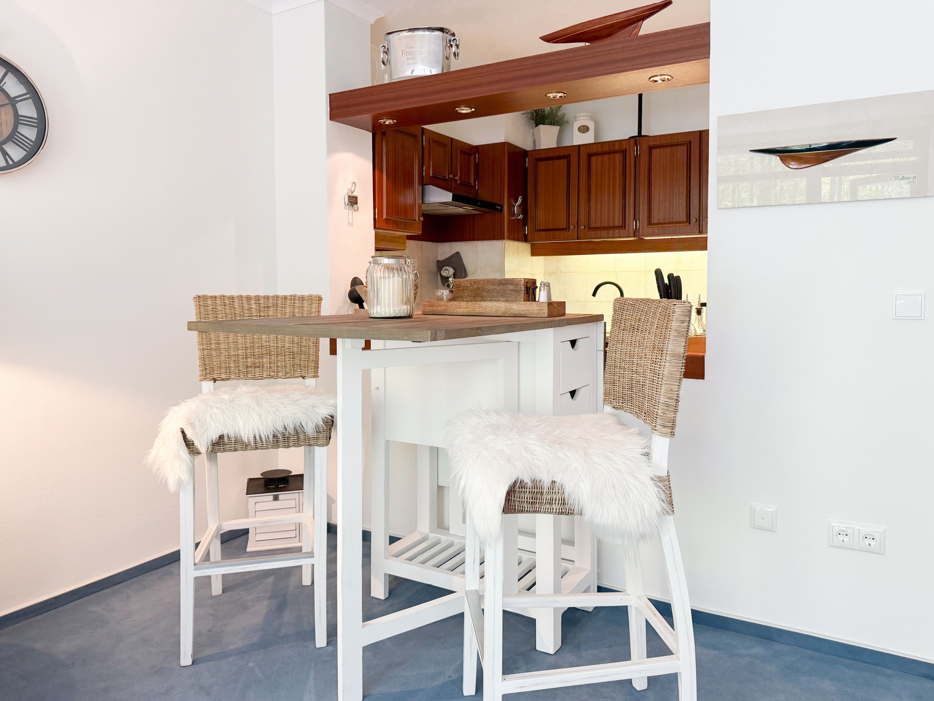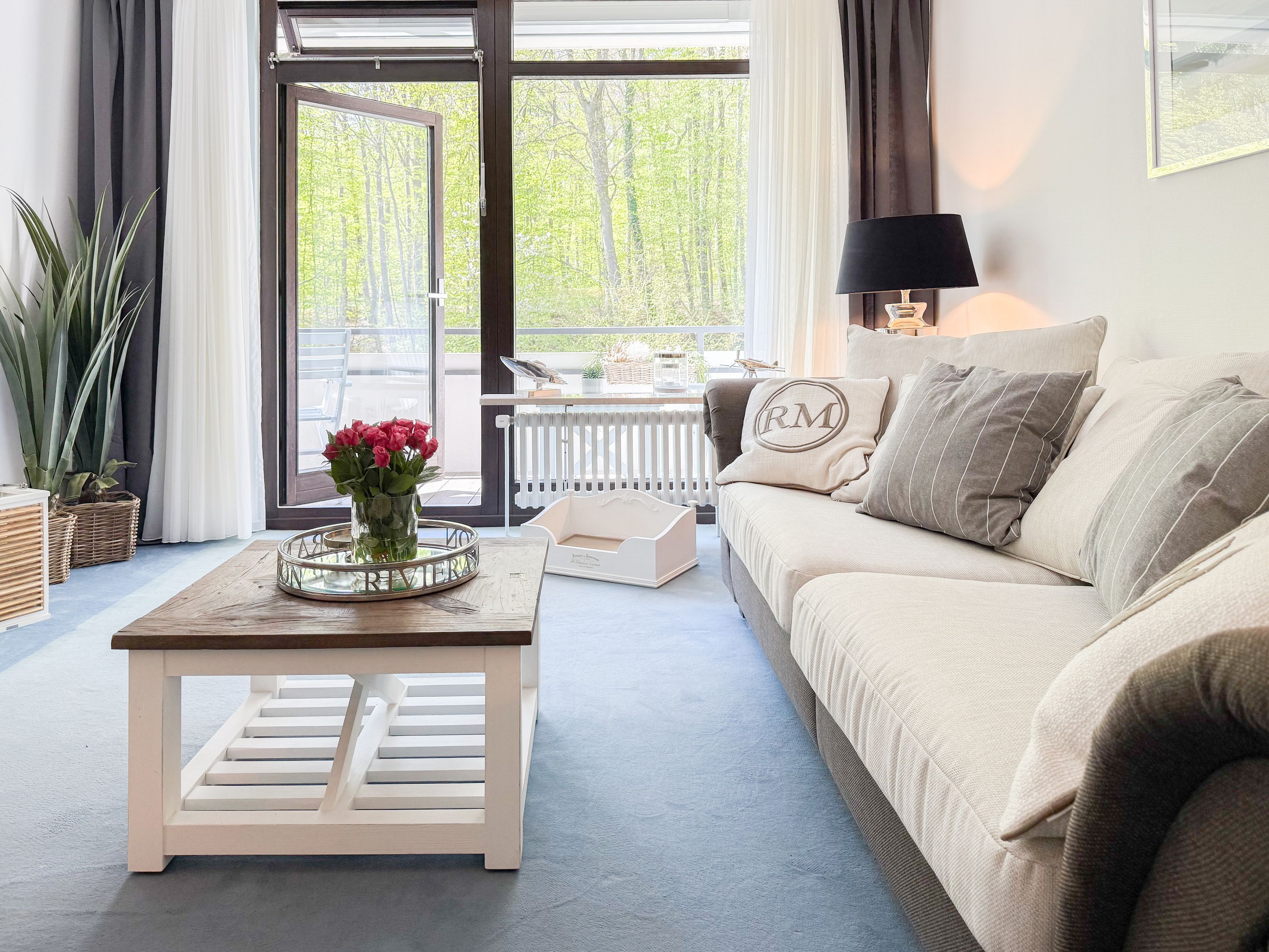 Es erwartet Sie ein stilvoll eingerichteter Rückzugsort, der für 2 Personen ein gemütliches Ambiente bietet, um einen entspannten Ostseeurlaub zu verleben. Der schöne Balkon in Südwestausrichtung, ausgestattet mit Gartenmöbeln und Markise, erstreckt sich über die gesamte Breite der Wohnung und ist sowohl vom Wohnzimmer, als auch vom Schlafzimmer zu begehen. Der großzügige Wohnbereich ist mit einem gemütlichen XL Sofa, TV und WLAN ausgestattet und der anschließende Essbereich ist für 2 Personen eingerichtet. Die integrierte bestens ausgestattete Küche verfügt über eine Durchreiche zum Essbereich. Das Schlafzimmer ist mit einem Doppelbett (180x200), Kleiderschrank und Verdunkelungsvorhängen ausgestattet. Das neue luxuriöse Bad verfügt über Waschtisch, WC, eine bodengleiche Walk In Dusche, Rainshower und Handbrause. Zu der Wohnung gehört ein Tiefgaragenstellplatz (Tor-Durchfahrtshöhe max. 1,90 m), dort können auch 2 Fahrräder vor dem Fahrzeug abgestellt werden. Das Tor ist von innen über den Schalter zu öffnen.  Mit dem Fahrstuhl im Erdgeschoß gelangt man entspannt in die 2. Etage.