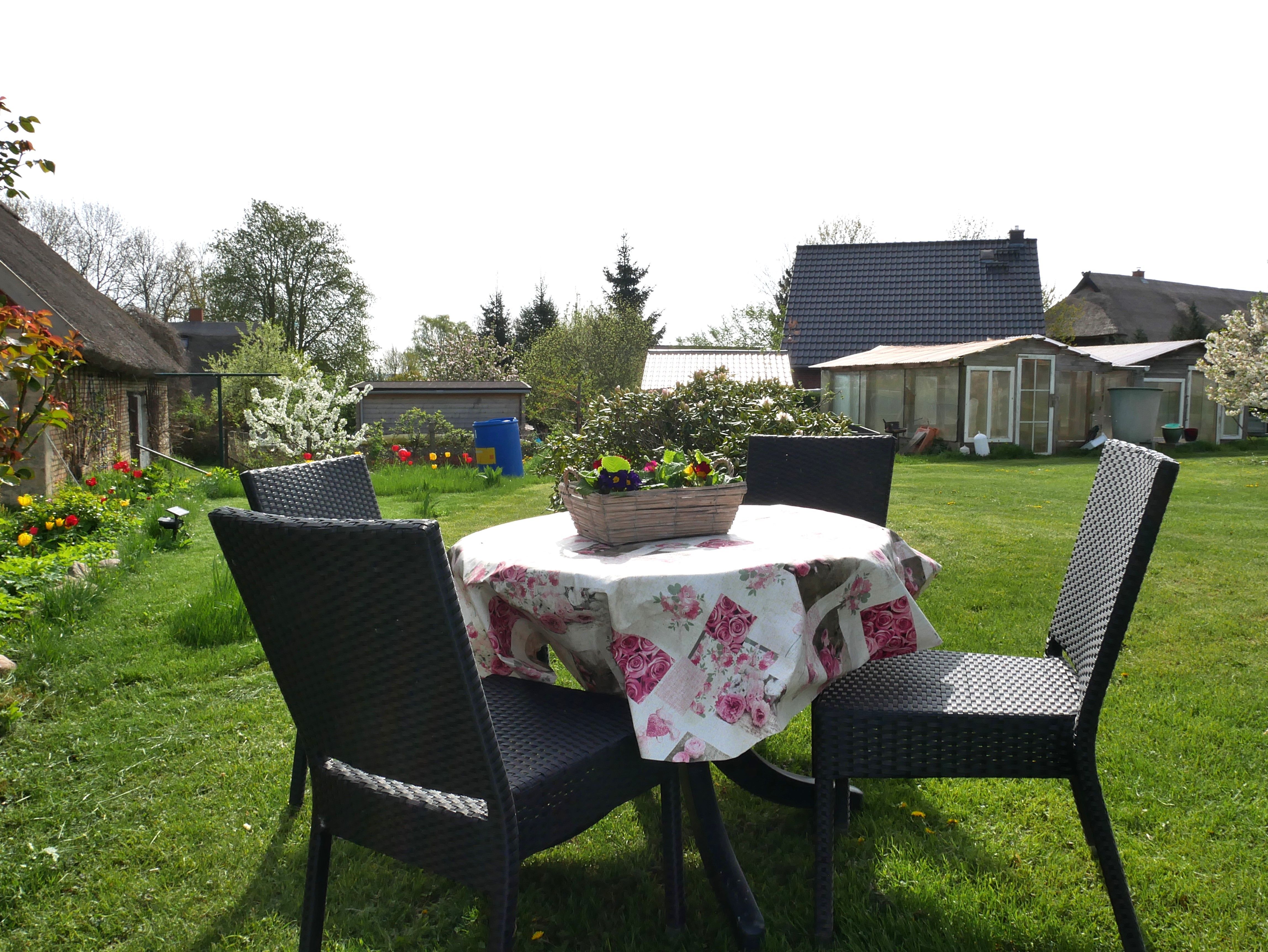 Entspannen Sie sich in der gemütlichen Sitzecke im Grünen, umgeben von blühenden Pflanzen und frischer Luft. Ein Grill und Räucherofen stehen Ihnen zur Verfügung. Auf Wunsch bereiten Ihnen die Vermieter auch traditionell geräucherten Fisch zu. Auch können Sie saisonales Gemüse (Bio- Tomaten und Gurken) sowie Bioeier nach Verfügbarkeit erwerben. Parkplatz sowie Fahrradabstellmöglichkeiten sind ebenfalls auf dem Grundstück vorhanden.