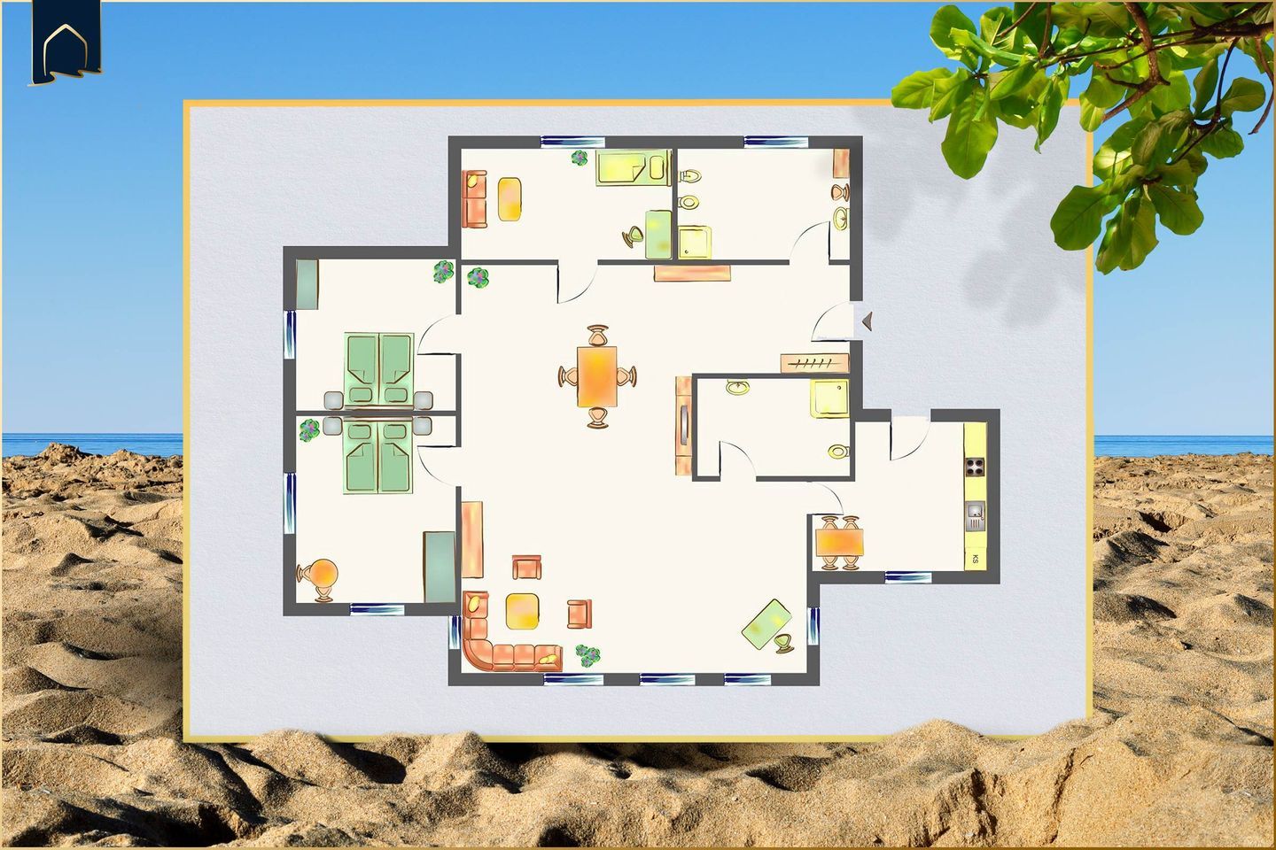 Der offene Wohn- und Essbereich lädt mit gemütlichem Sofa, Esstisch und TV zu gemeinsamen Stunden ein. Die hochwertige Küche enthält alles, was Sie zum Kochen und Genießen brauchen – inklusive Kaffeemaschine, Toaster, Wasserkocher und Küchenutensilien. In den drei Schlafzimmern sorgen komfortable Betten und praktische Staumöglichkeiten wie Kommode und Schuhschrank für Ordnung und Erholung. Zwei moderne Duschen, ein Haartrockner, Kosmetik- und Ganzkörperspiegel bieten Komfort wie zu Hause. Auch für Frischluftliebhaber ist gesorgt
