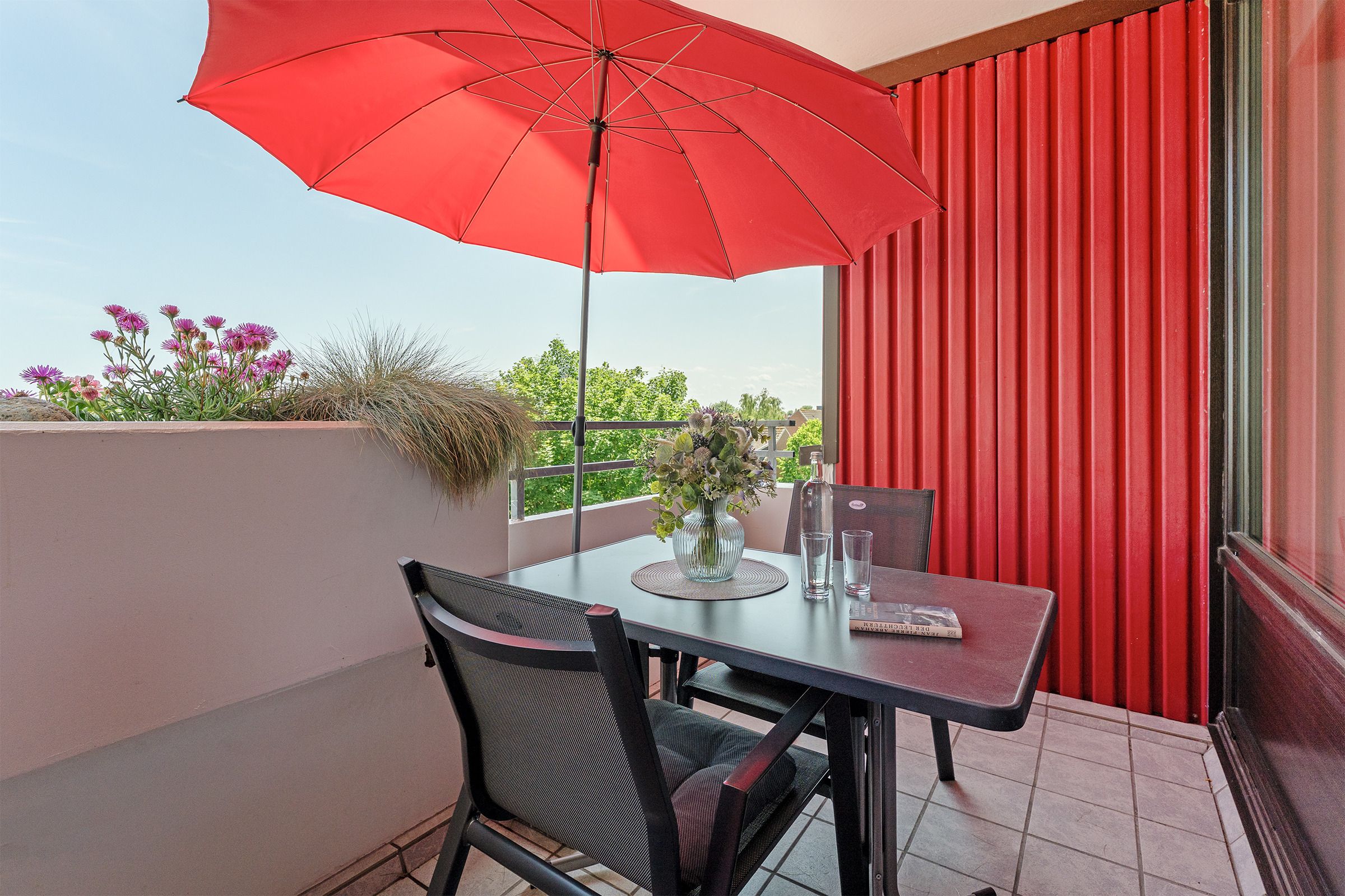 Ein PKW-Tiefgaragenstellplatz ist für Sie reserviert (max. 185 cm Durchfahrtshöhe). Die Nutzung des Hallenbades, der drei Gemeinschafts-Dachterrassen mit Meer- und Landblick sowie des Tischtennisraumes sind für Sie selbstverständlich kostenlos. Ihre mitgebrachten Fahrräder können Sie in einem der 2 Kellerräume in Haus A oder in dem Fahrradraum im Erdgeschoss zwischen Haus A und B abstellen. In Haus D befindet sich auf den Etagen 1 - 4 je ein Gemeinschaftswaschraum mit Waschmaschine und Trockner (gegen Gebühr/Münzgeräte).