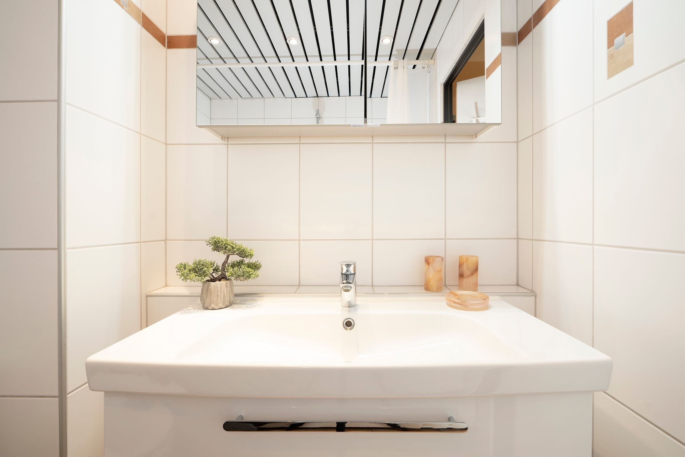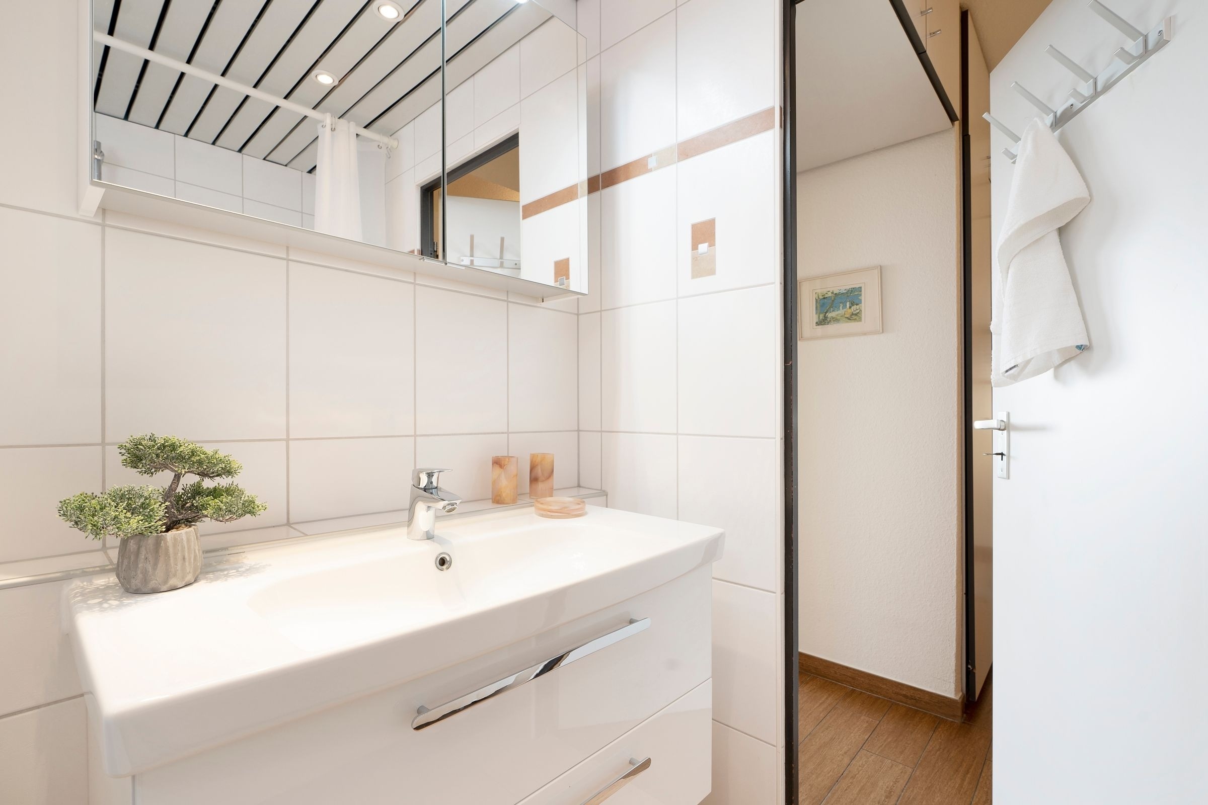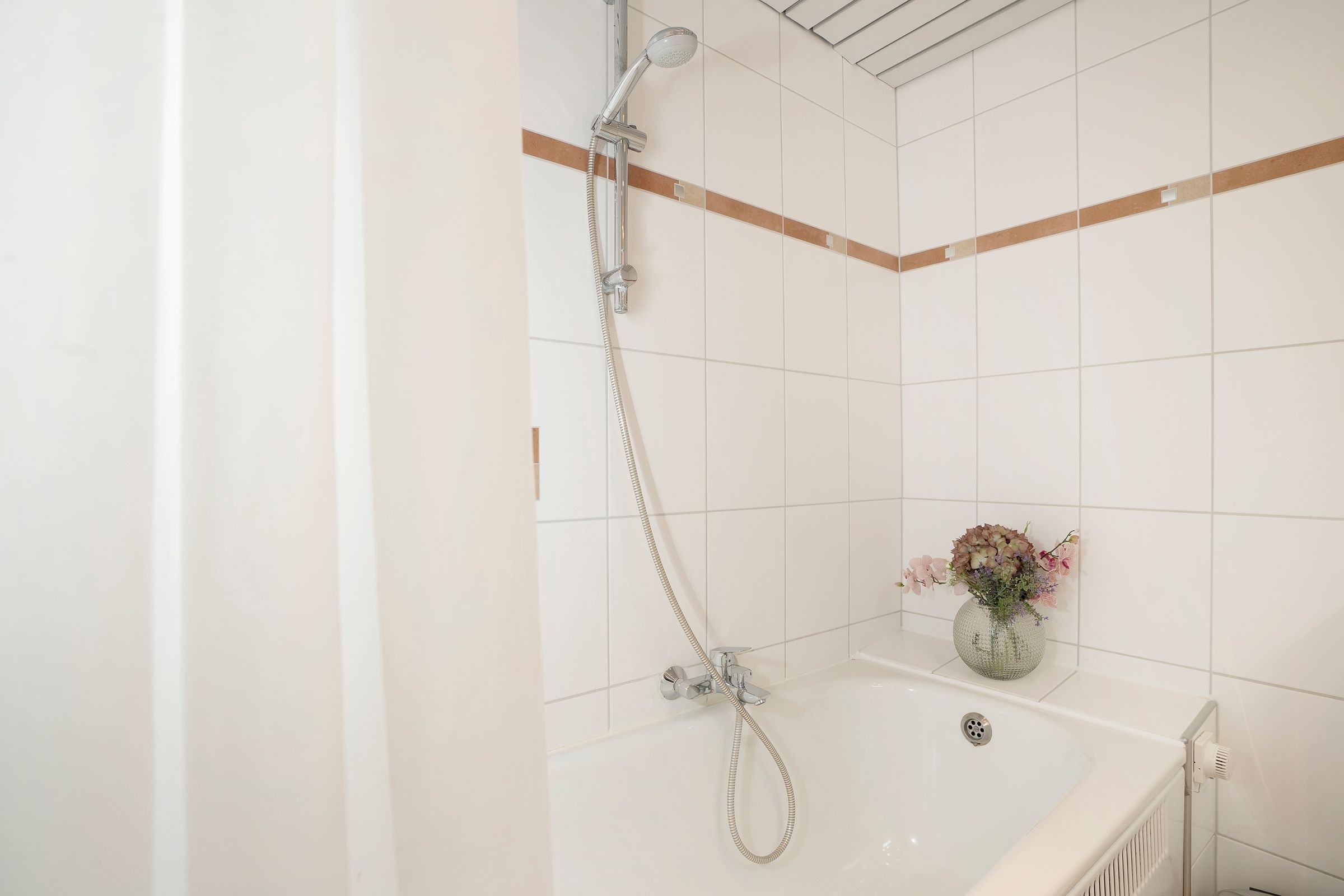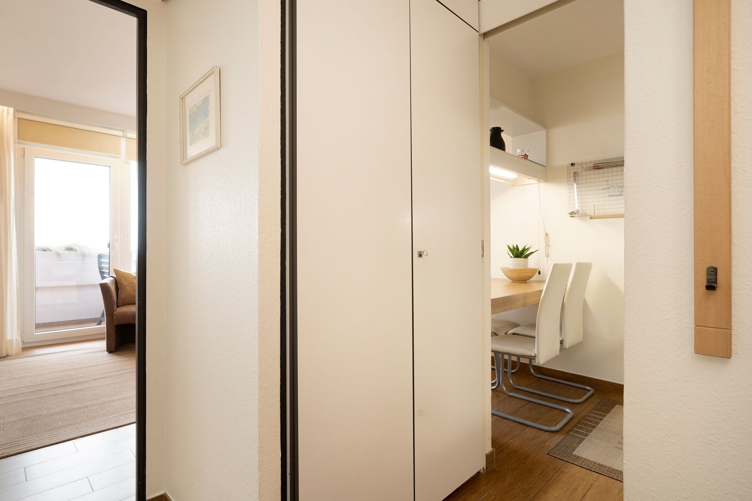 Ein PKW-Tiefgaragenstellplatz ist für Sie reserviert (max. 185 cm Durchfahrtshöhe). Die Nutzung des Hallenbades, der drei Gemeinschafts-Dachterrassen mit Meer- und Landblick sowie des Tischtennisraumes sind für Sie selbstverständlich kostenlos. Ihre mitgebrachten Fahrräder können Sie in einem der 2 Kellerräume in Haus A oder in dem Fahrradraum im Erdgeschoss zwischen Haus A und B abstellen. In Haus D befindet sich auf den Etagen 1 - 4 je ein Gemeinschaftswaschraum mit Waschmaschine und Trockner (gegen Gebühr/Münzgeräte).