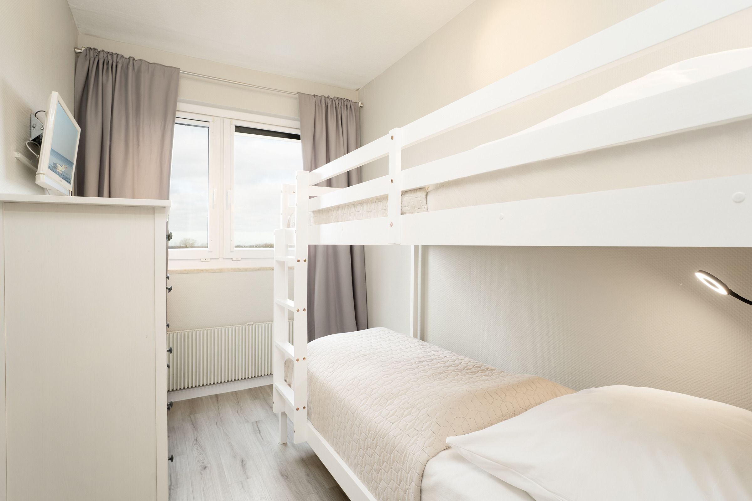 Schlafzimmer: 1 Etagenbett (je 90x200 cm), TV, Verdunkelungsplissees