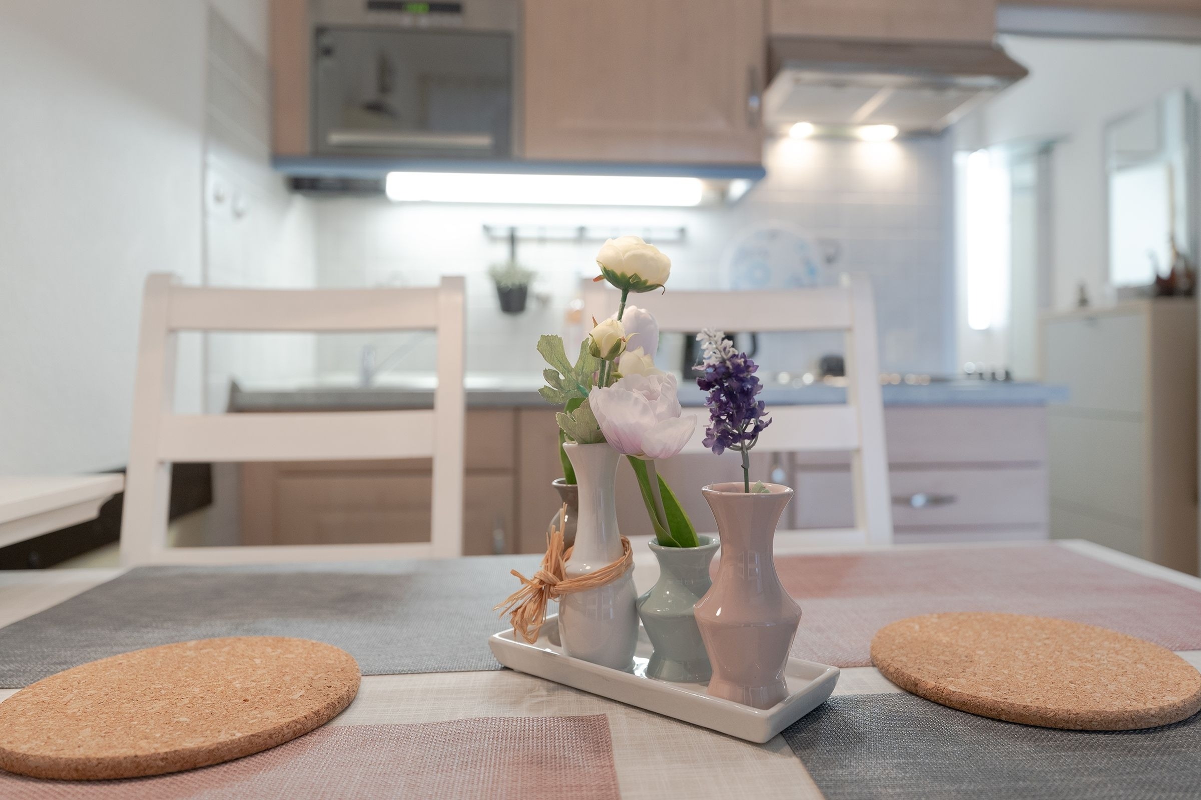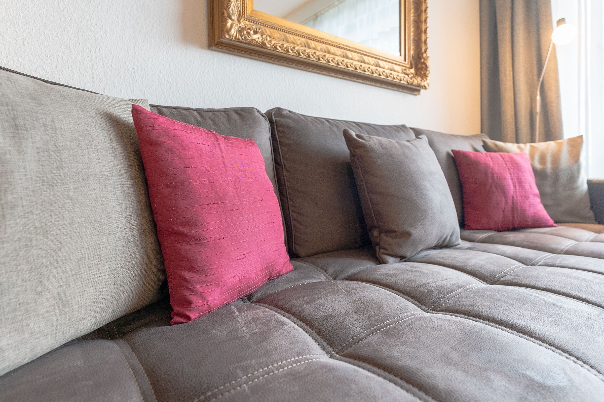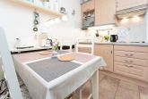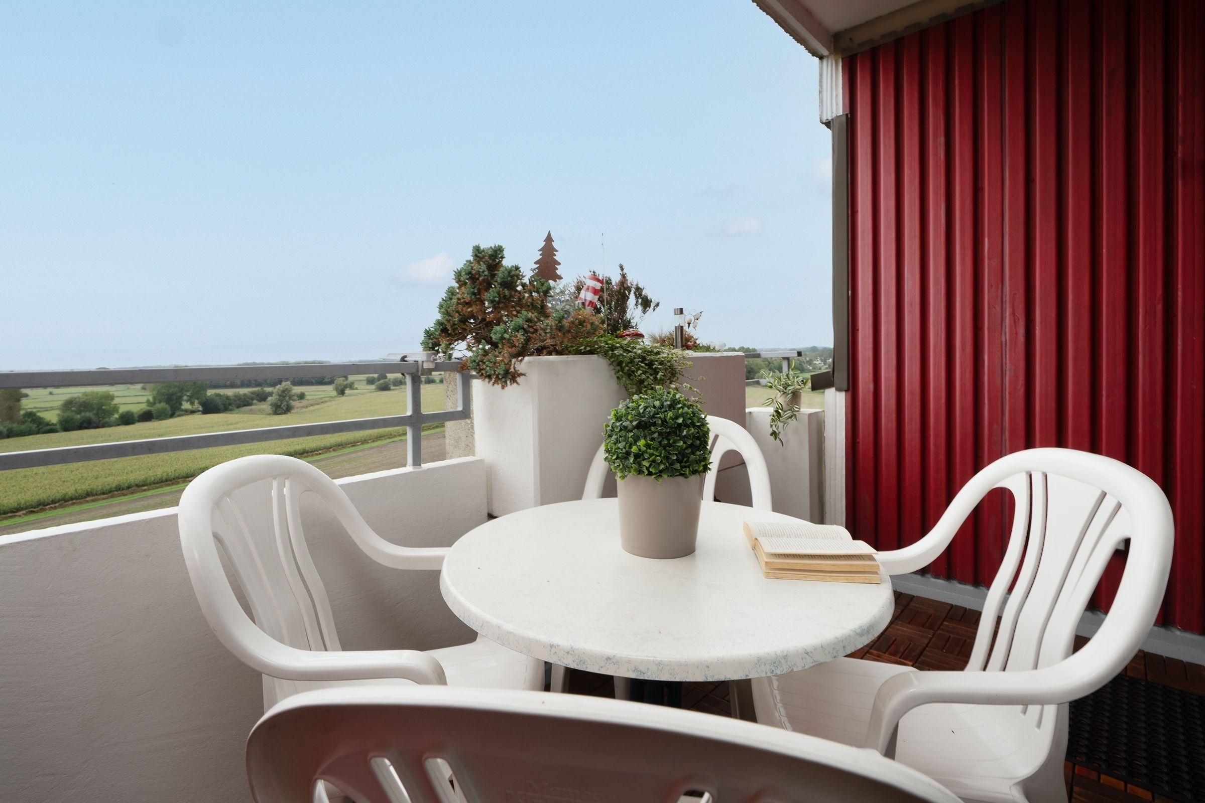 Ihr 46 m² großes Urlaubsdomizil ist angenehm und geschmackvoll eingerichtet und für max. 4 Personen geeignet. Die Wohnung verfügt über einen kombinierten Wohn- und Schlafraum, einen kostenlosen WLAN-Anschluss sowie eine komplett ausgestattete Küche und ein Bad. Den Blick haben Sie zur Landseite, den Balkon zum Westen mit Nachmittags- und Abendsonne.