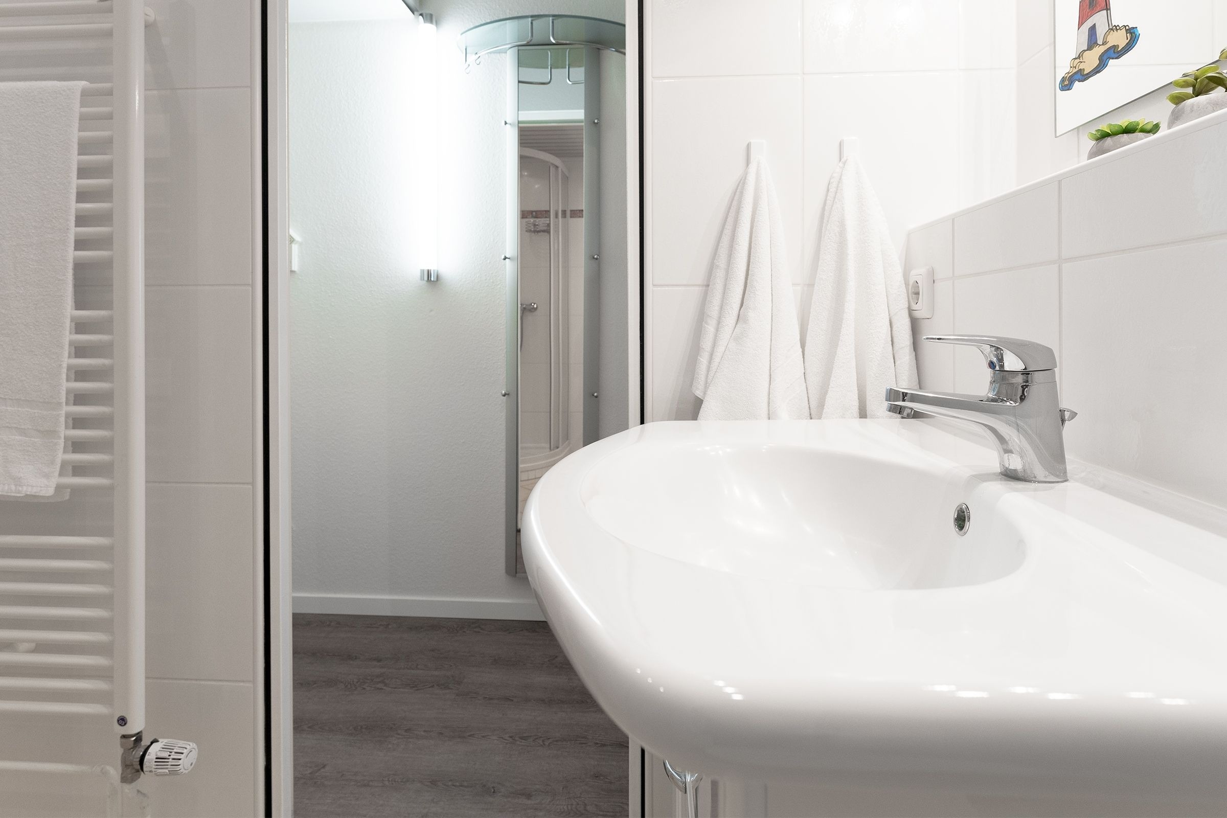 Ein PKW-Tiefgaragenstellplatz ist für Sie reserviert (max. 185 cm Durchfahrtshöhe). Die Nutzung des Hallenbades, der drei Gemeinschafts-Dachterrassen mit Meer- und Landblick sowie des Tischtennisraumes sind für Sie selbstverständlich kostenlos. Ihre mitgebrachten Fahrräder können Sie in einem der 2 Kellerräume in Haus A oder in dem Fahrradraum im Erdgeschoss zwischen Haus A und B abstellen. In Haus D befindet sich auf den Etagen 1 - 4 je ein Gemeinschaftswaschraum mit Waschmaschine und Trockner (gegen Gebühr/Münzgeräte).