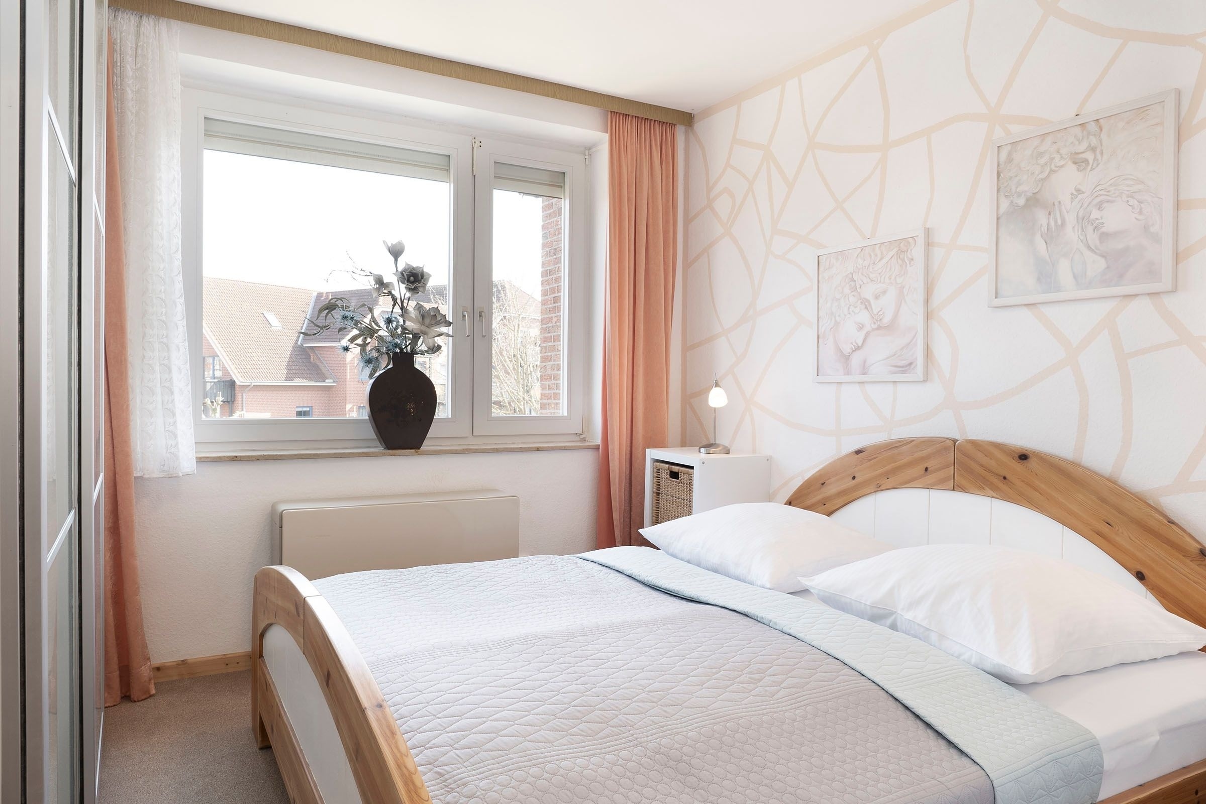Schlafzimmer: 1 Doppelbett (2x 90x200 cm), Kleiderschrank, Verdunkelung (Außenjalousie)