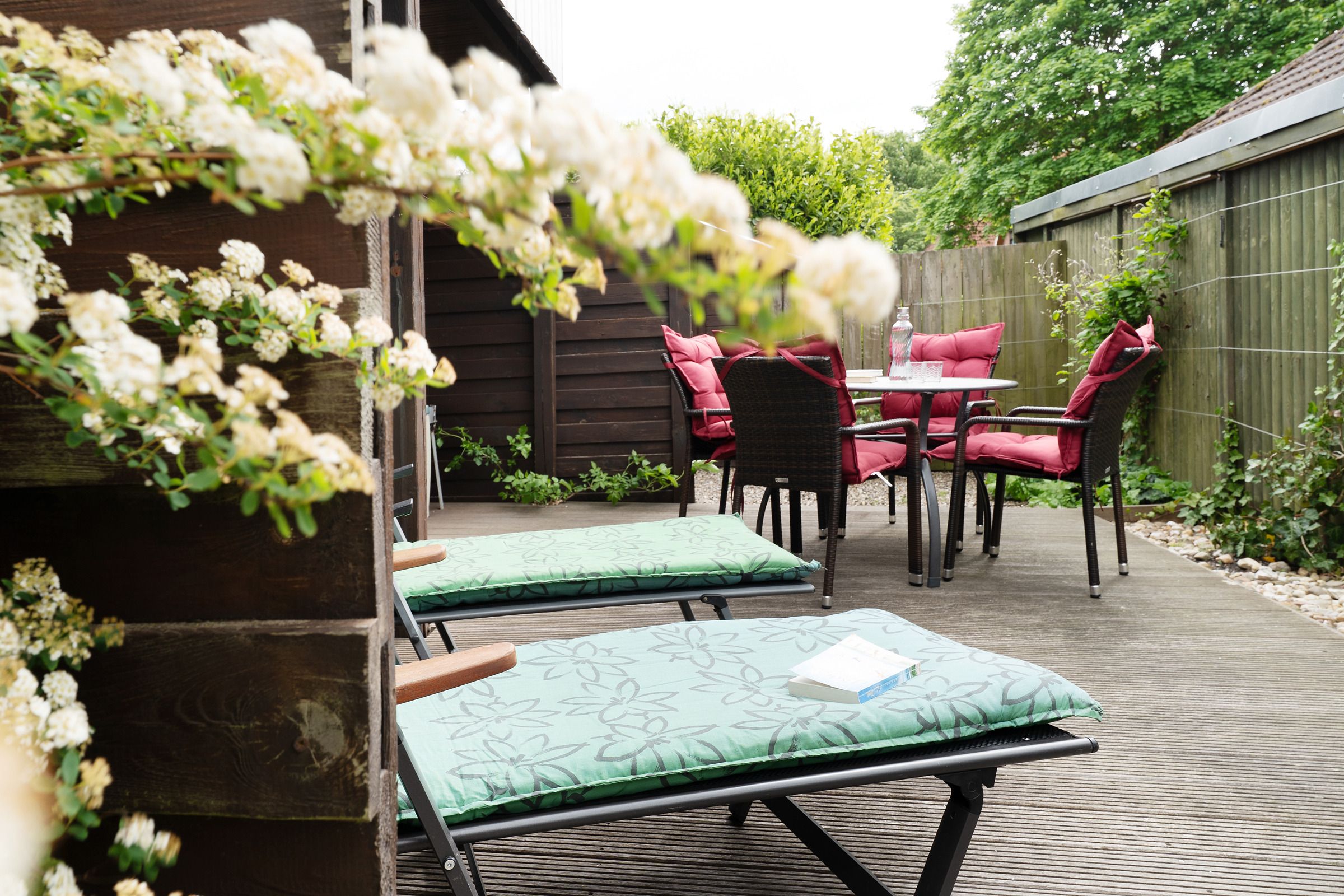 Diese Wohnung liegt ebenerdig in einer ruhigen Sackgasse mit einem traumhaften Blick über die Terrasse auf die Felder. Diesen Sonnenuntergang werden Sie nie vergessen.