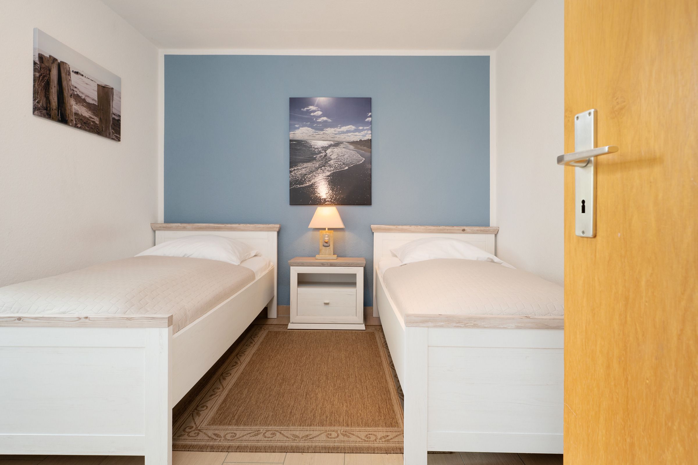 Schlafzimmer 2: 2 Einzelbetten (je 90x200 cm), Kleiderschrank, Verdunkelung (Rollo)