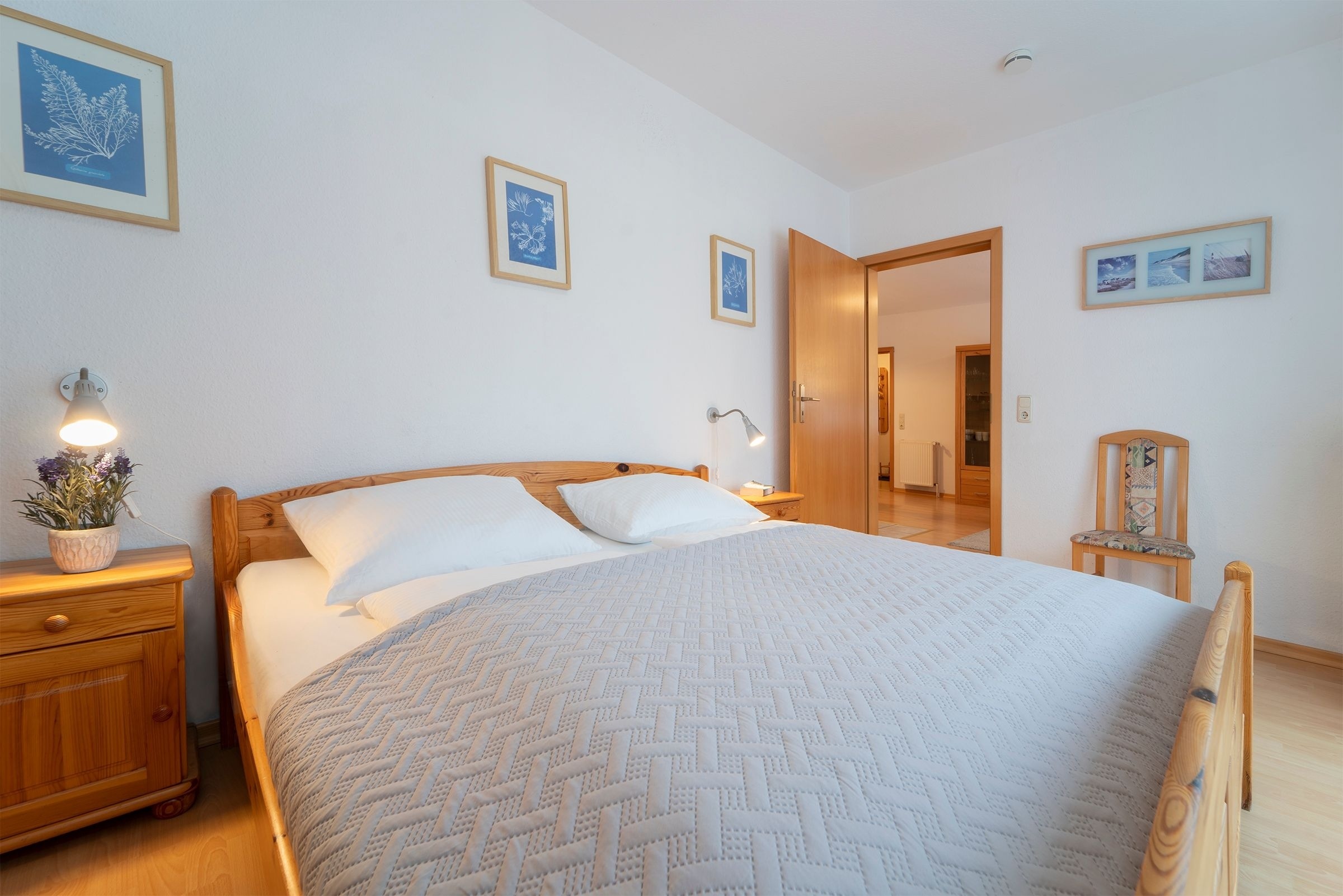 Schlafzimmer: 1 Doppelbett (2x 90x200 cm), Federkernmatratze, Kleiderschrank, Verdunkelung (Außenjalousie)