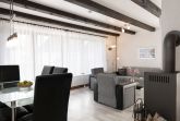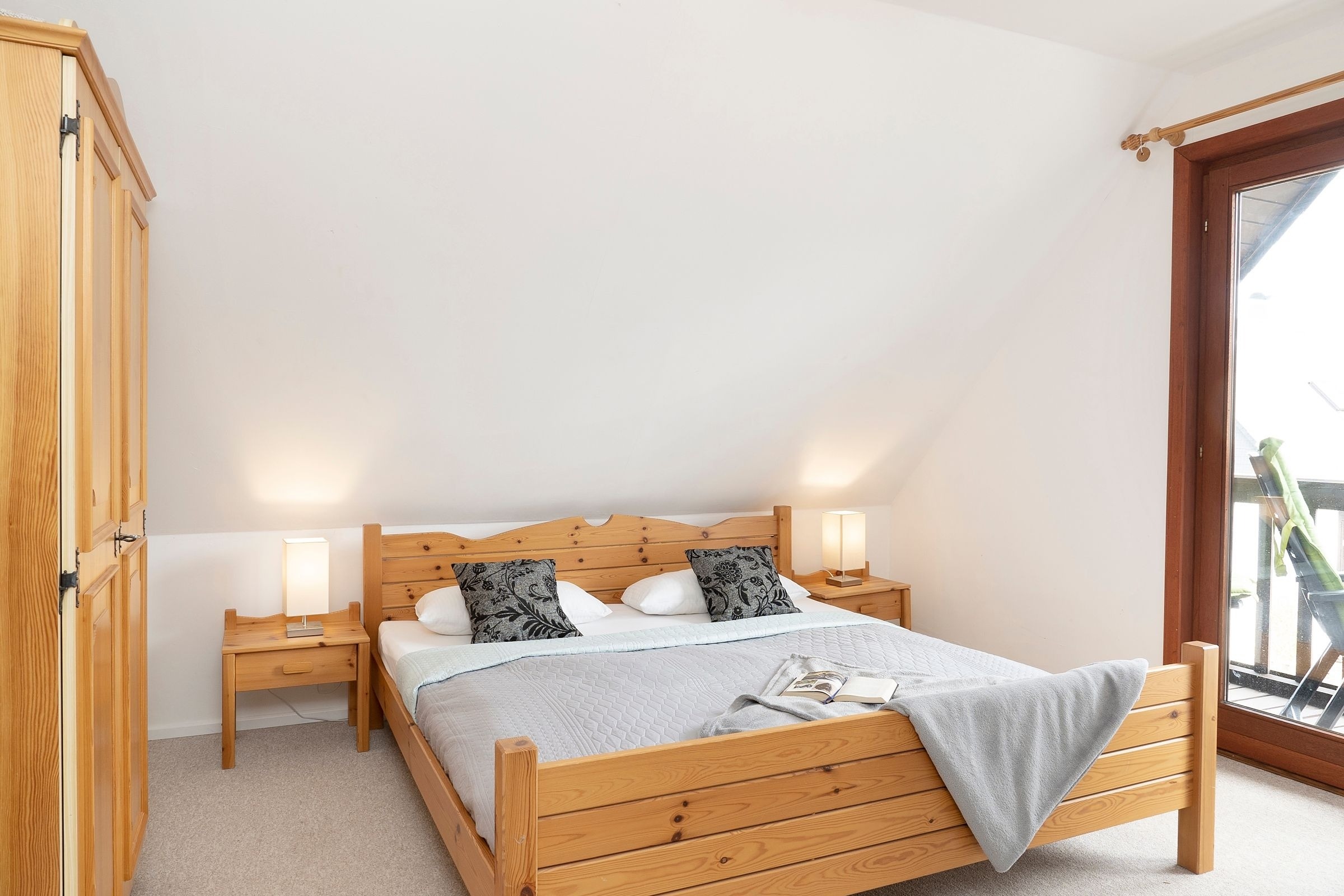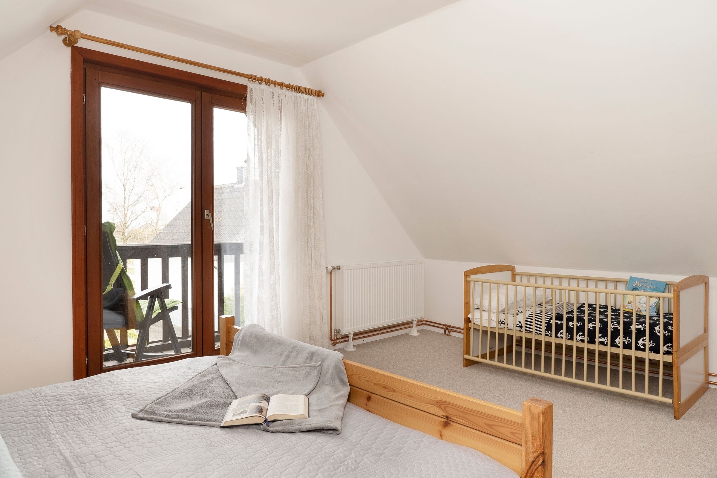 Von dem modernen Wohn-/Esszimmer aus erreichen Sie die sonnige Terrasse vor dem Haus. Das moderne Badezimmer besticht durch eine Dusche mit flachem Einstieg und heller Badkeramik. Vom Wohnzimmer aus, das Sie mit einem gusseisernen Ofen empfängt, geht es hinauf zu den zwei Schlafräumen. Das Schlafzimmer mit gemütlichem Doppelbett (2x 90x200 cm) sorgt für erholsamen Schlaf. Der zweite Schlafraum ist mit zwei Einzelbetten (je 90x200 cm) und einem Flachbildfernseher mit integriertem DVD-Player (kein Fernsehempfang) ausgestattet. Ein Kinderbett sowie ein weiteres Zustellbett sorgen für weitere Schlafmöglichkeiten.