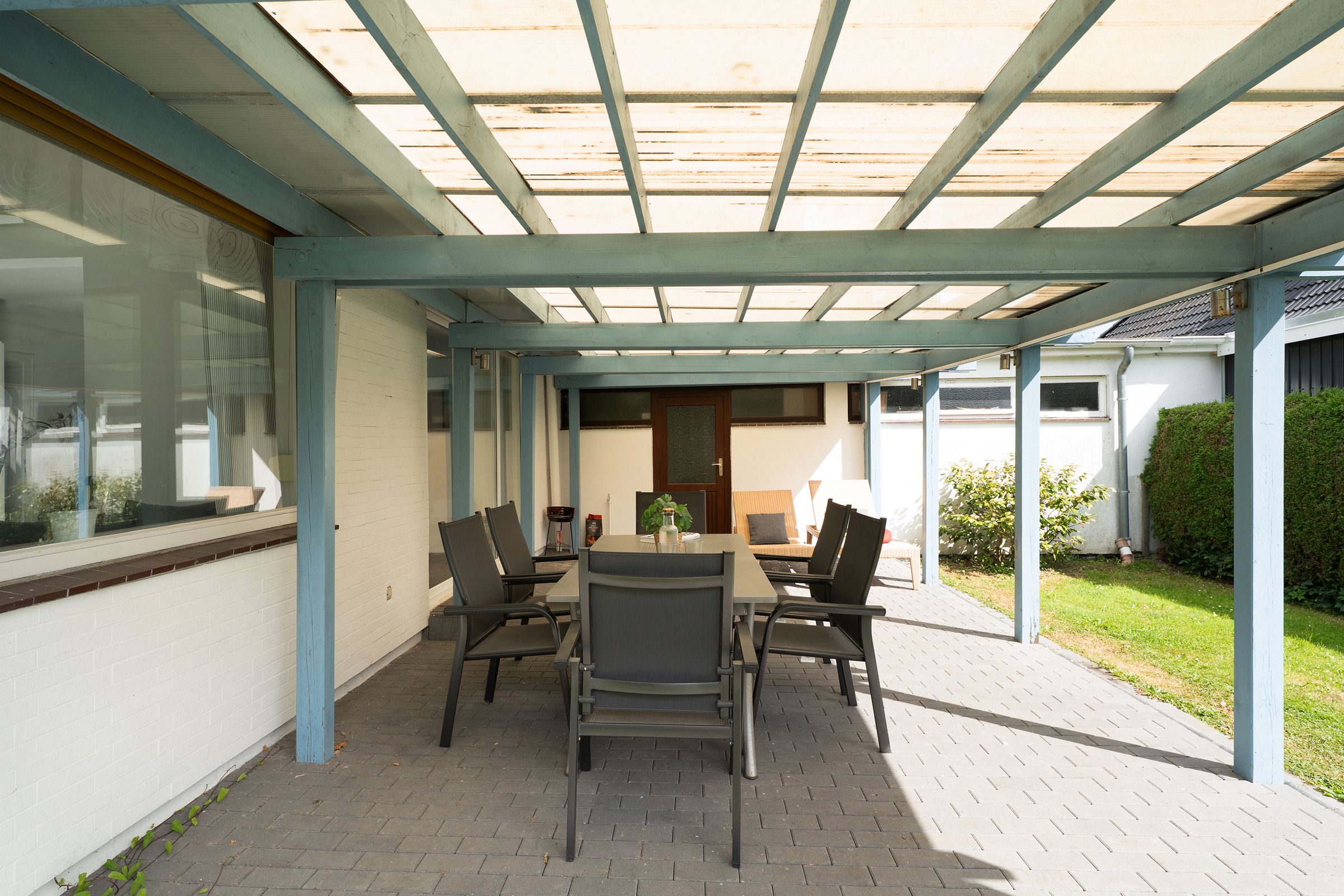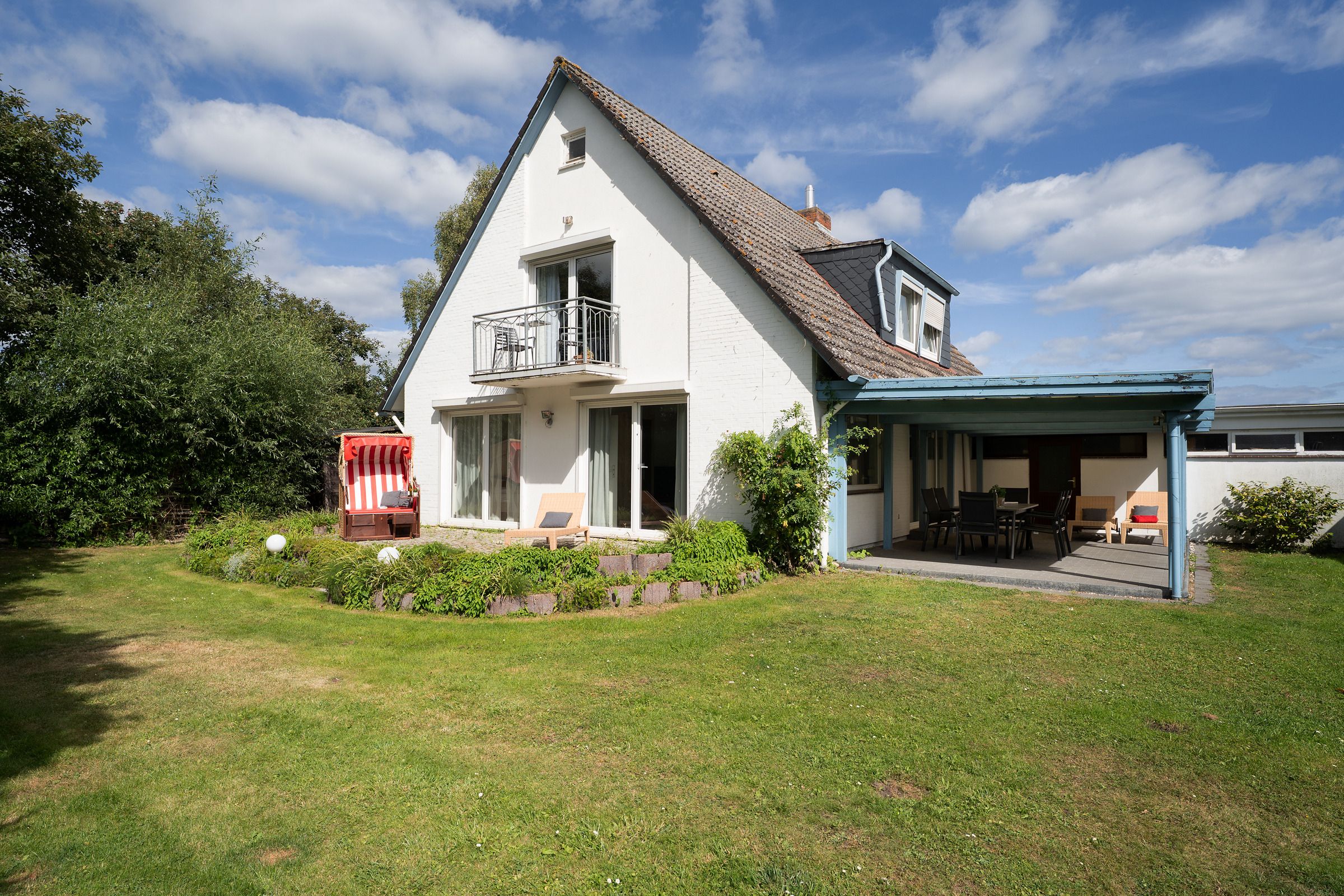 Der lichtdurchflutete Wohnraum ist offen gestaltet - ein Essplatz mit 4 wertigen Stühlen, sowie eine zusätzliche Bank, laden zu geselligen Runden ein und auf der lauschigen Sofalandschaft mit großem Flachbild-TV kann man es sich nach langen Strandtagen gemütlich machen. Von hier aus haben Sie direkten Zugang zum Garten und zwei eigenen Terrassen - eine große überdachte Terrasse und eine weitere mit einem Strandkorb in dem Sie die herrliche Abendsonne genießen können. Das Elternschlafzimmer ist mit komfortablem Doppelbett (2x 80x200 cm), Sideboard und 3-türigem Kleiderschrank ausgestattet, hier gibt es also reichlich Stauraum für Ihre Urlaubskleidung. Das zweite Schlafzimmer ist mit 2 Einzelbetten (je 90x200 cm), Nachttischen und Leseleuchten eingerichtet, zusätzlich hat ein Kinderbett in diesem Zimmer Platz. Von diesem Schlafzimmer aus hat man Zugang zum großen Badezimmer mit Badewanne und Dusche. Beide Schlafzimmer lassen sich durch Außenrollläden abdunkeln. Die Ferienwohnung verfügt zudem über ein weiteres Badezimmer mit Dusche, WC und Wasch-Trockner. Die separate, gut ausgestattete, Küche verfügt über Annehmlichkeiten wie eine Senseo-Kaffeemaschine, eine Kühl-Gefrierkombination und eine Spülmaschine. Von der Küche führt ebenfalls eine Tür direkt in den Garten.