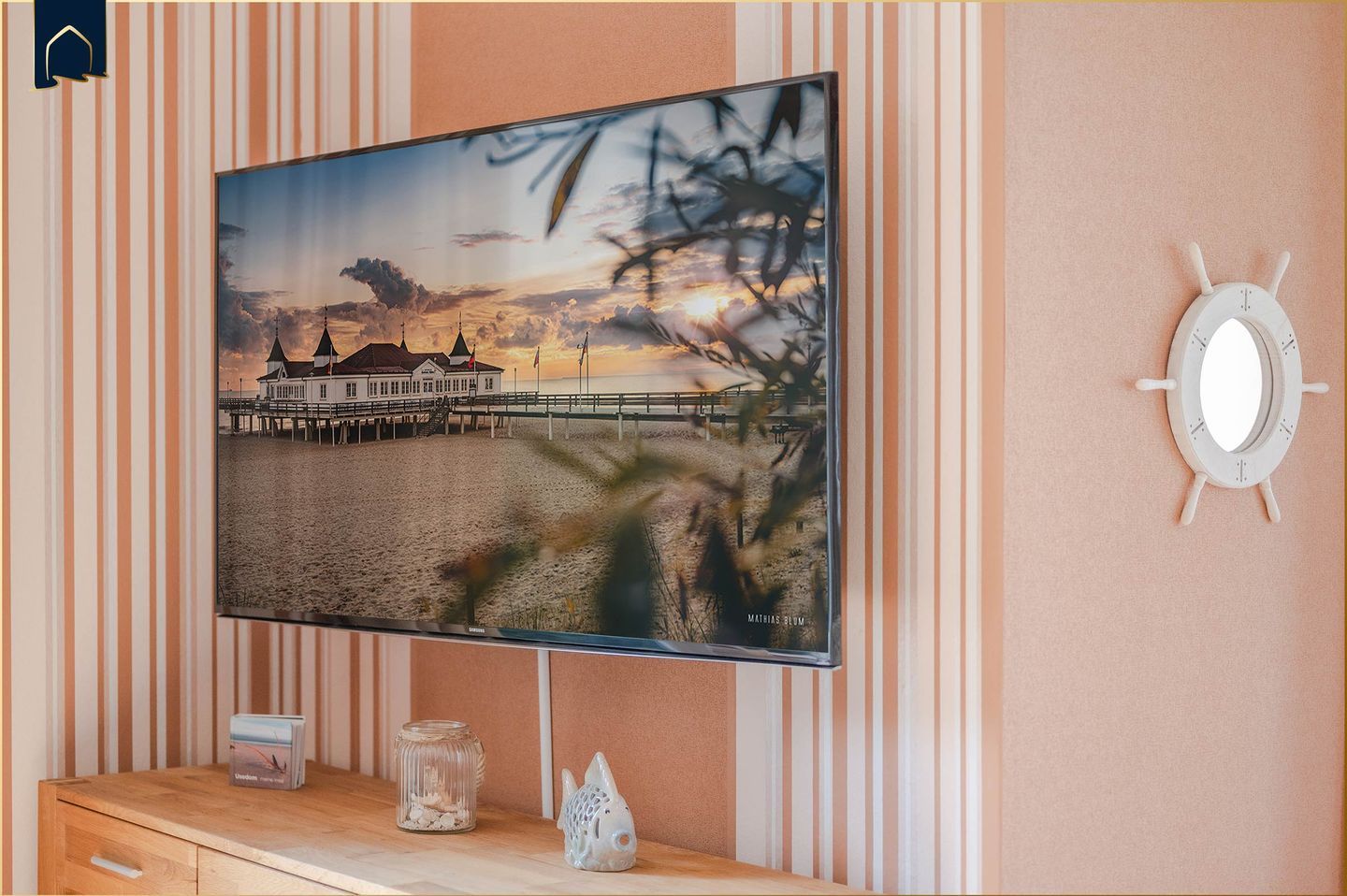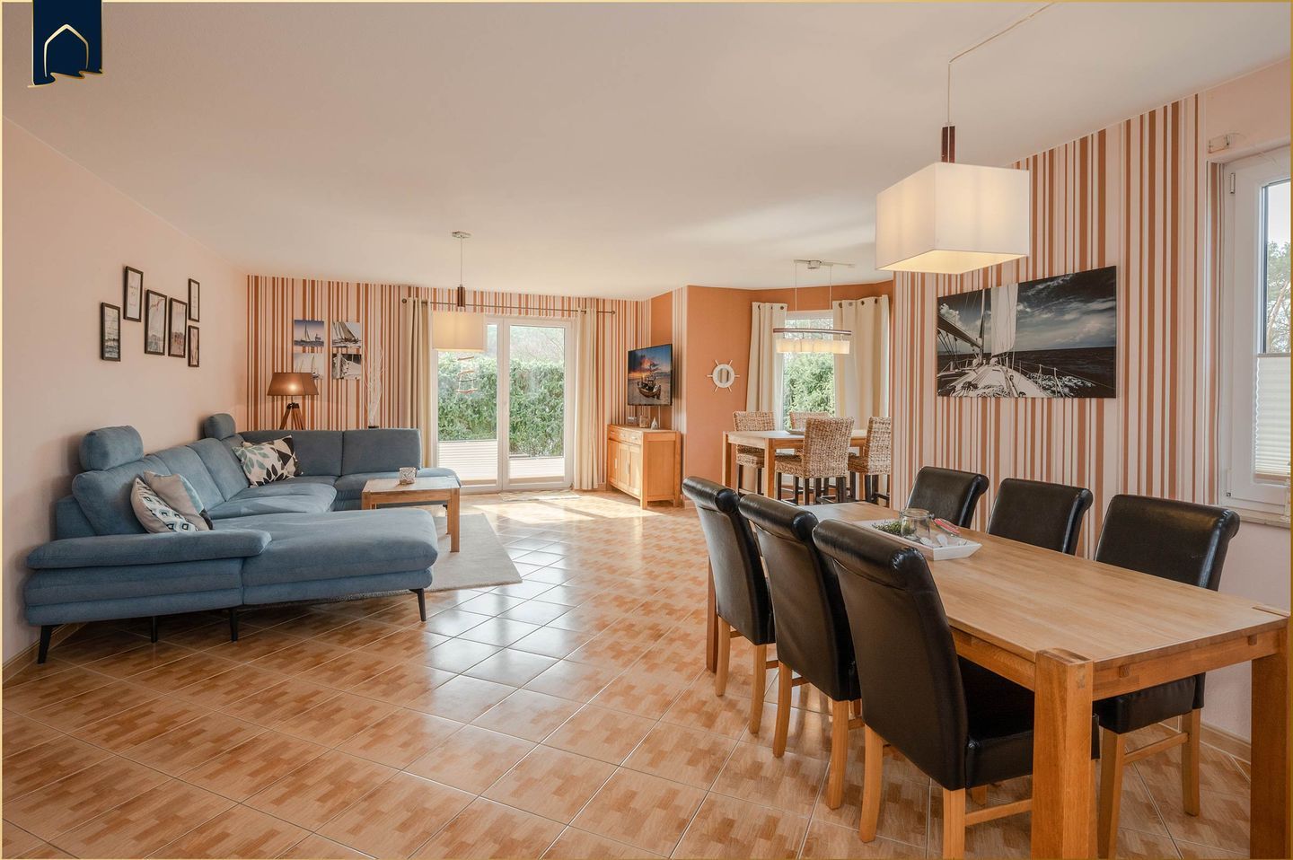 Diese großzügige Ferienwohnung auf Usedom bietet auf 95 m² modernen Wohnkomfort für bis zu fünf Personen. Zwei gemütliche Schlafzimmer und ein helles Wohnzimmer mit Sofaecke und TV laden zum Entspannen ein. Der stilvolle Essbereich mit Esstisch verbindet sich harmonisch mit der voll ausgestatteten Küche – inklusive Backofen, Geschirrspüler, Mikrowelle, Kaffeemaschine und vielem mehr. Das Badezimmer ist mit Dusche und Badewanne ausgestattet – ideal für Familien mit Kindern. Dank Fußbodenheizung und liebevoller Einrichtung fühlt man sich hier sofort wie zu Hause.