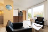 Im Erdgeschoss des Hauses Panorama finden Sie auf 49 m² Wohnfläche einen hellen Wohnbereich mit offener angrenzender Küche. Hier können Sie nach langen Strandtagen einen geselligen Familienabend, zum Beispiel vor dem Flachbildfernseher mit DVD-Player verbringen. Der große Esstisch lädt zum Spielen und Essen ein. Wunderbar entspannen und die Sonne genießen, können Sie auf Ihrer möblierten Terrasse, die Sie direkt vom Wohnbereich aus erreichen. Die Küche ist klein aber fein und verfügt über alle Annehmlichkeiten, sogar über eine Spülmaschine, die Ihren Abwasch übernimmt. In das angrenzende Schlafzimmer mit Doppelbett (2x 90x200 cm) und kleinem Einbauschrank können Sie sich zur Nachtruhe zurückziehen. In einem weiteren Schlafzimmer mit Kleiderschrank stehen ein Etagenbett und ein Einzelbett (je 90x200 cm) für max. 1 Erwachsenen und 2 Kinder bereit. Das WC mit Badewanne rundet die Ausstattung dieser Ferienwohnung ab.