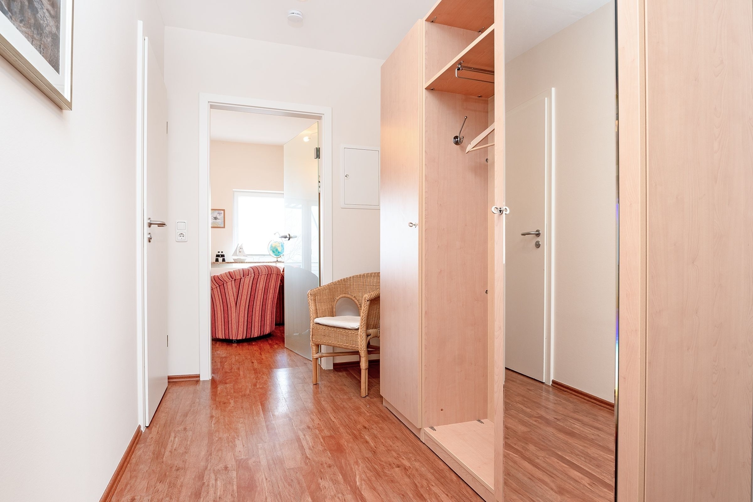 Das Herzstück der Wohnung ist der lichtdurchflutete Wohn- und Essbereich mit bequemer Couchgarnitur, Flachbildfernseher, Stereoanlage mit CD-Player, integriertem Essplatz, einer Küchenzeile mit Ceranfeld, Backofen, Kühlschrank mit Gefrierfach, Spülmaschine sowie diversem Zubehör. Von hier aus geht es direkt auf den möblierten Balkon mit atemberaubendem Blick über den gesamten Grömitzer Yachthafen. Das separate Schlafzimmer verfügt über ein komfortables Doppelbett (180x200 cm), sowie einen Kleiderschrank mit reichlich Stauraum für Ihre Urlaubsgarderobe. Auch im Flur ist weiterer Stauraum vorhanden. Im modernen Duschbad sorgen Annehmlichkeiten wie eine Fußbodenheizung und eine praktischer Handtuchheizung für Komfort und Wohlgefühl.