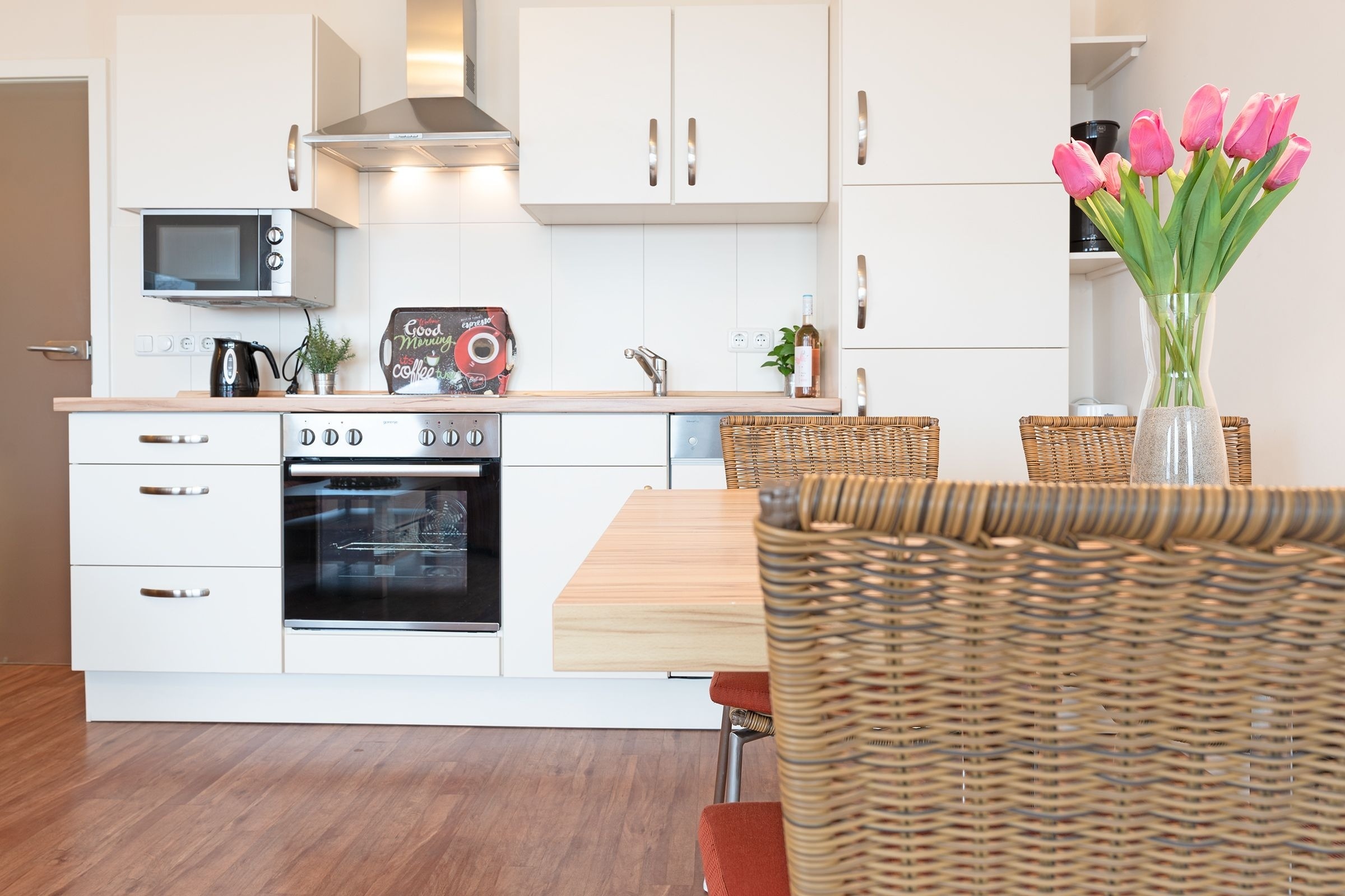Dieses geschmackvolle 2-Zimmer-Fereindomizil befindet sich in der 1. Etage und ist über eine separate Außentreppe erreichbar. Mit einer Wohnfläche von ca. 51 m² bietet sie ausreichend Platz für bis zu 2 Personen.