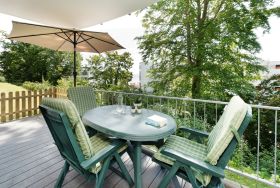 Hier bleiben keine Wünsche offen! Ihr Zuhause auf Zeit ist hell und modern eingerichtet. Machen Sie es sich auf dem Sofa gemütlich - oder genießen Sie die frische Seeluft auf der möblierten Terrasse. Von hier aus haben Sie saisonal bedingt einen eingeschränkten Blick auf die Ostsee. Wie wäre es hier mit einem Begrüßungsdrink? Die gut ausgestattete Wohnküche bietet eine angenehme Selbstversorgung. Für die Nacht steht Ihnen ein Doppelbett (2x 80x200 cm) mit TV-Gerät im Schlafzimmer zur Verfügung. Zudem können Sie das bequeme Schlafsofa (140x200 cm) im Wohnbereich nutzen. Das moderne Duschbad bringt Sie gut in den neuen Tag.