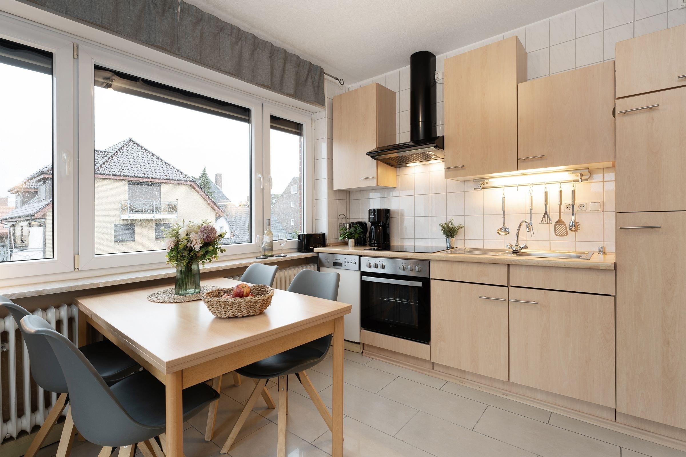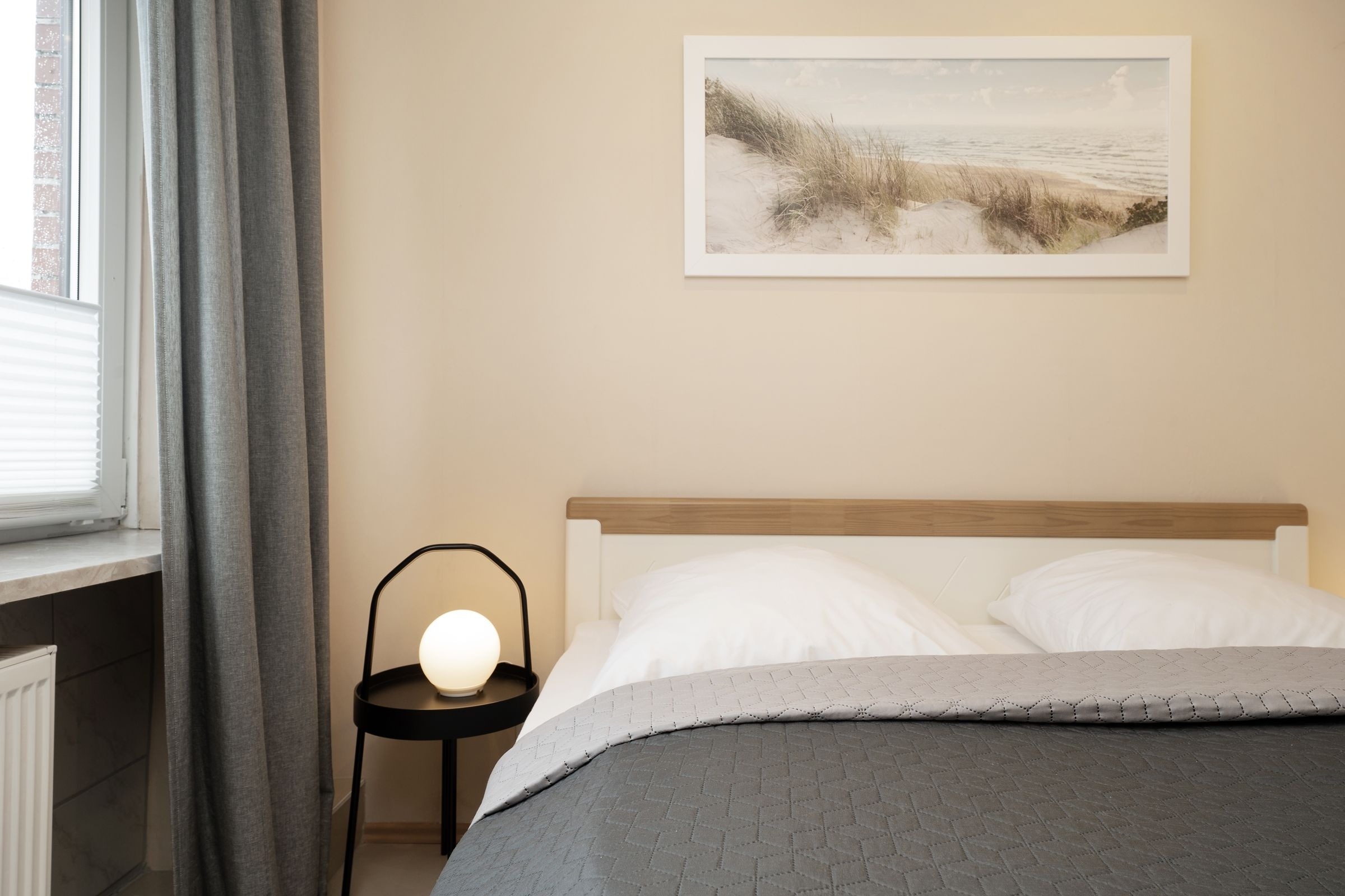 Bis zu 2 Personen können hier einen entspannten Urlaub mit saisonal eingeschränktem Meerblick über den Deich hinweg genießen. Das freundliche Wohnzimmer mit Sofa und Smart-TV sowie Bluetooth-Radio schenkt Ihnen behagliche Urlaubsstunden. Über den kostenlosen WLAN-Anschluss bleiben Sie mit Ihren Lieben in Kontakt. Die integrierte Küche ist auf kleinem Raum gut ausgestattet und gewährleistet eine mühelose Zubereitung schmackhafter Köstlichkeiten. Zum Essen oder Spielen finden Sie am Esstisch ausreichend Platz. Vom Wohnraum aus gelangen Sie auf den großzügigen, möblierten Balkon Richtung Meer, auf dem Sie im Sonnenschein die Seele baumeln lassen können. Bei Bedarf sorgt ein Sonnenschirm für Schatten. Im separaten Schlafzimmer spendet ein großes Doppelbett (180x200 cm) erholsame Nächte und im gepflegten, hellen Duschbad bleiben keine Wünsche offen.
