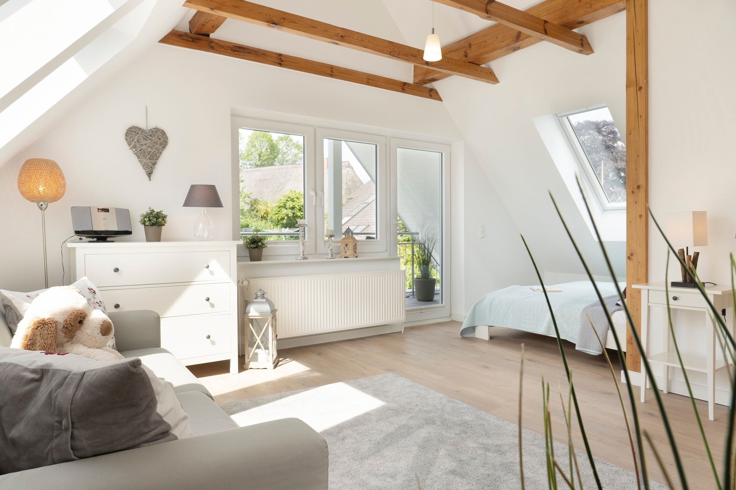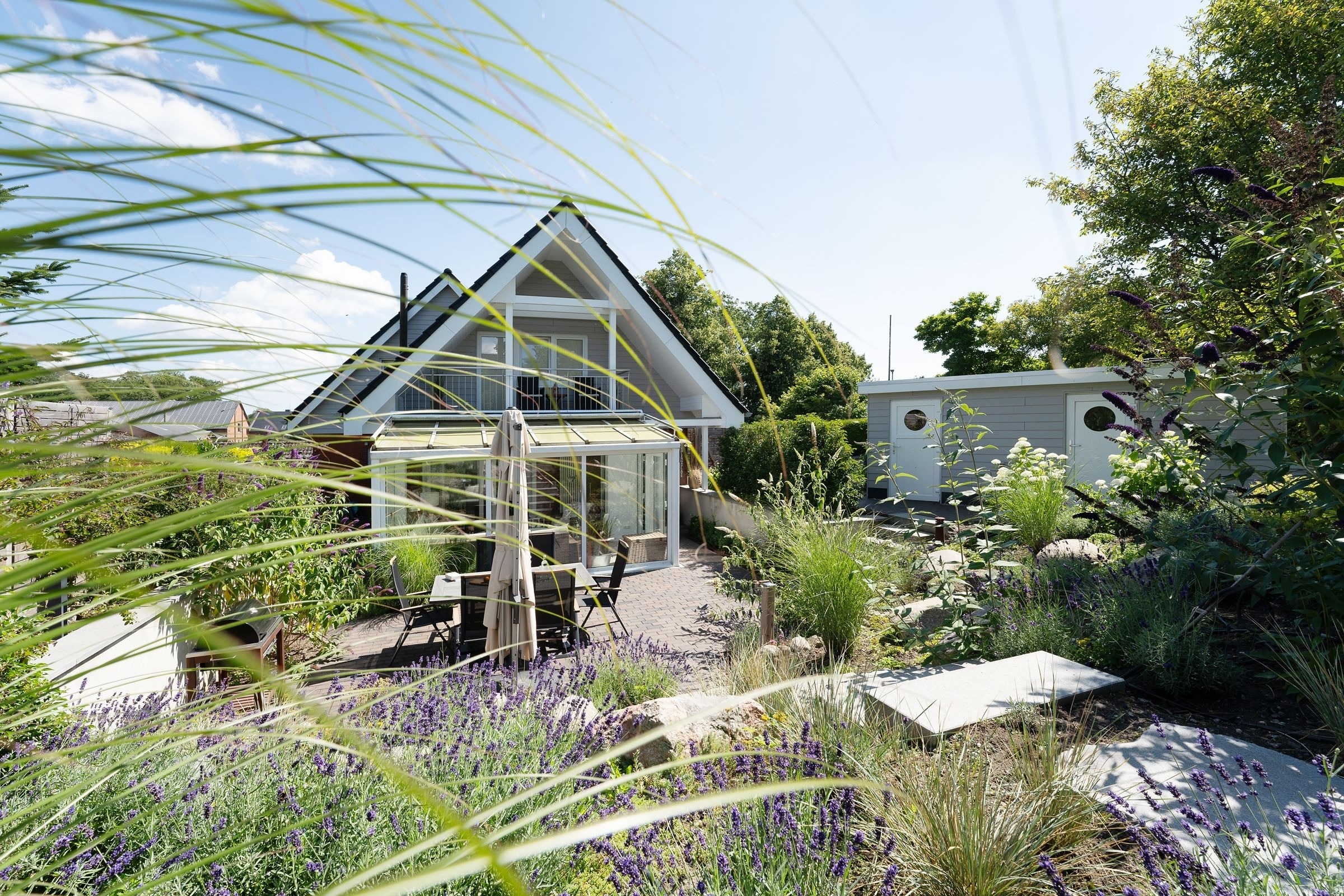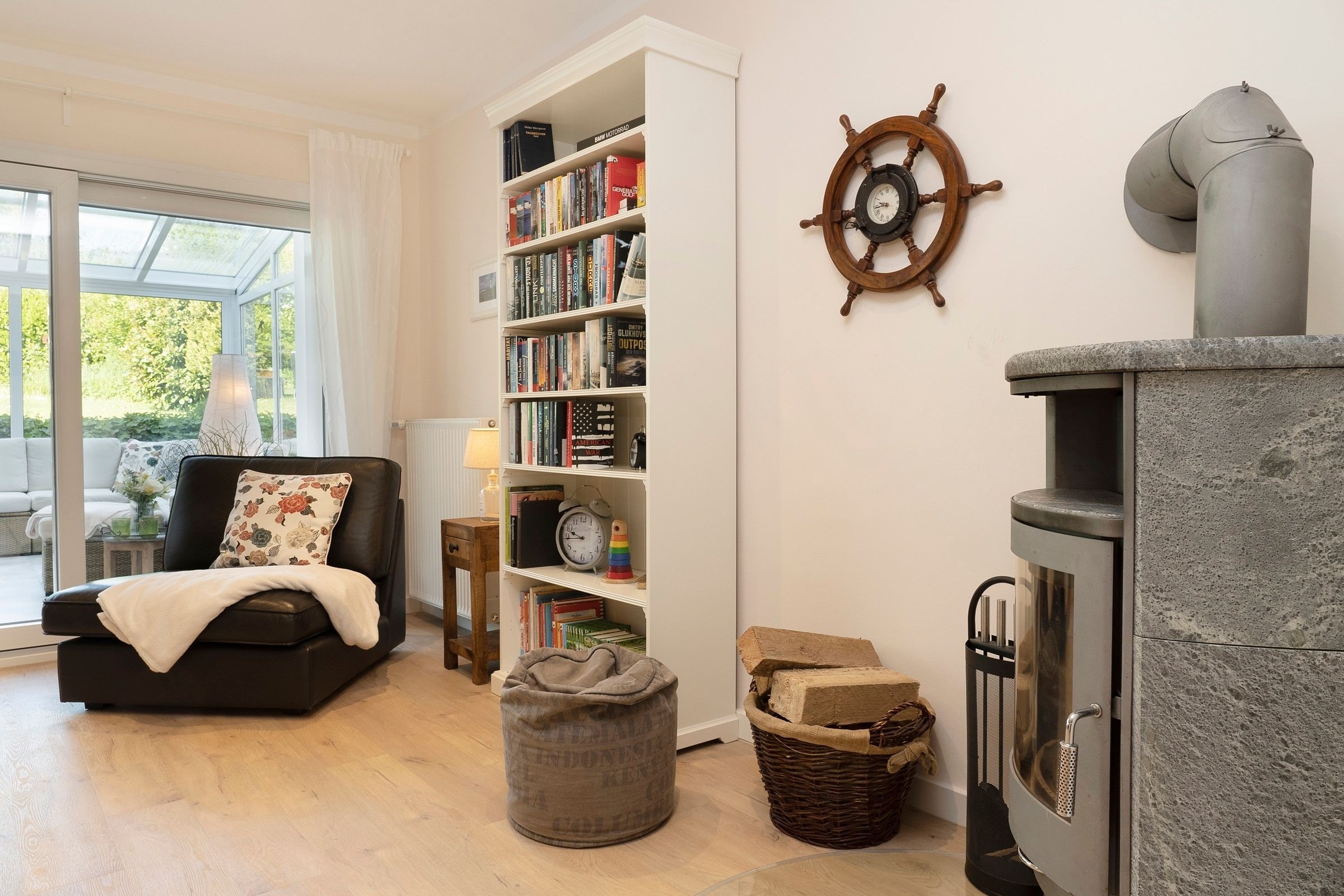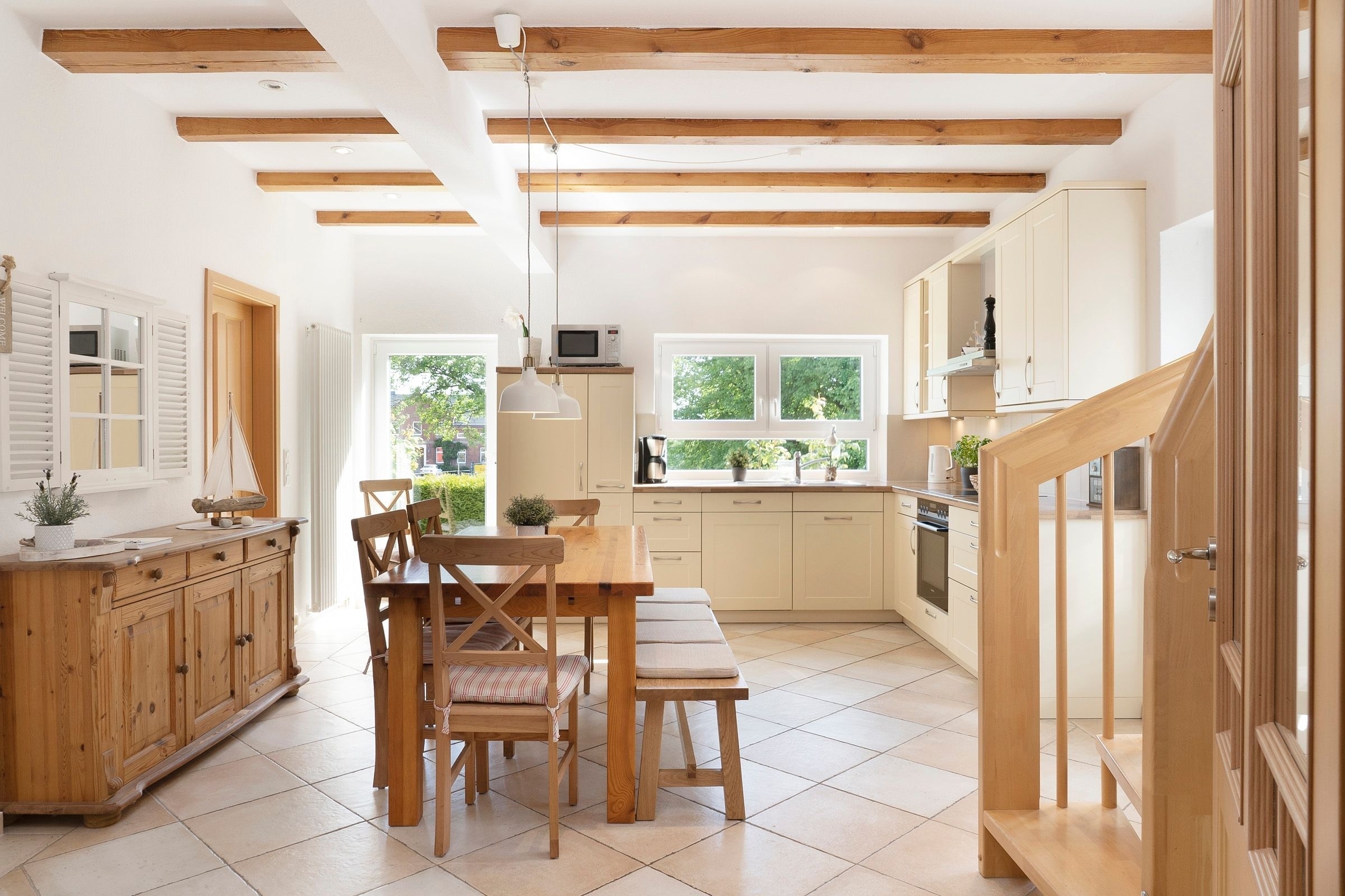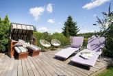 Die Ausstattung ist in modernem, natürlichem Design mit Wohlfühlcharakter und viel Liebe zum Detail. Eine gut ausgestattete große Wohnküche mit Fußbodenheizung bietet jeglichen Komfort und lässt keine Wünsche offen. Dort trifft sich die ganze Familie zum Kochen & Beisammensein. Für wohlige Wärme und Gemütlichkeit sorgt nach einem langen Strandspaziergang der Kamin im geräumigen Wohnzimmer. In dem mit exklusiven Loungemöbeln ausgestattetem Wintergarten können Sie das ganze Jahr in wohliger Wärme die direkte Nähe zur Natur mit Blick in den Himmel genießen. Die drei separaten Schlafzimmer mit je einem Doppelbett (2x 180x200 cm, 1x 160x200cm) garantieren Ihnen erholsame Nächte. Eins der Schlafzimmer bietet mit einem Schlafsofa (140x190 cm) zwei weitere Schlafplätze für unsere kleinen Gäste. Der großzügige Garten mit hochwertigen Gartenmöbeln, Sonnenliegen, Sonnenschirm und Strandkorb lädt zum Verweilen im Grünen ein und schafft Urlaub vom Alltag.