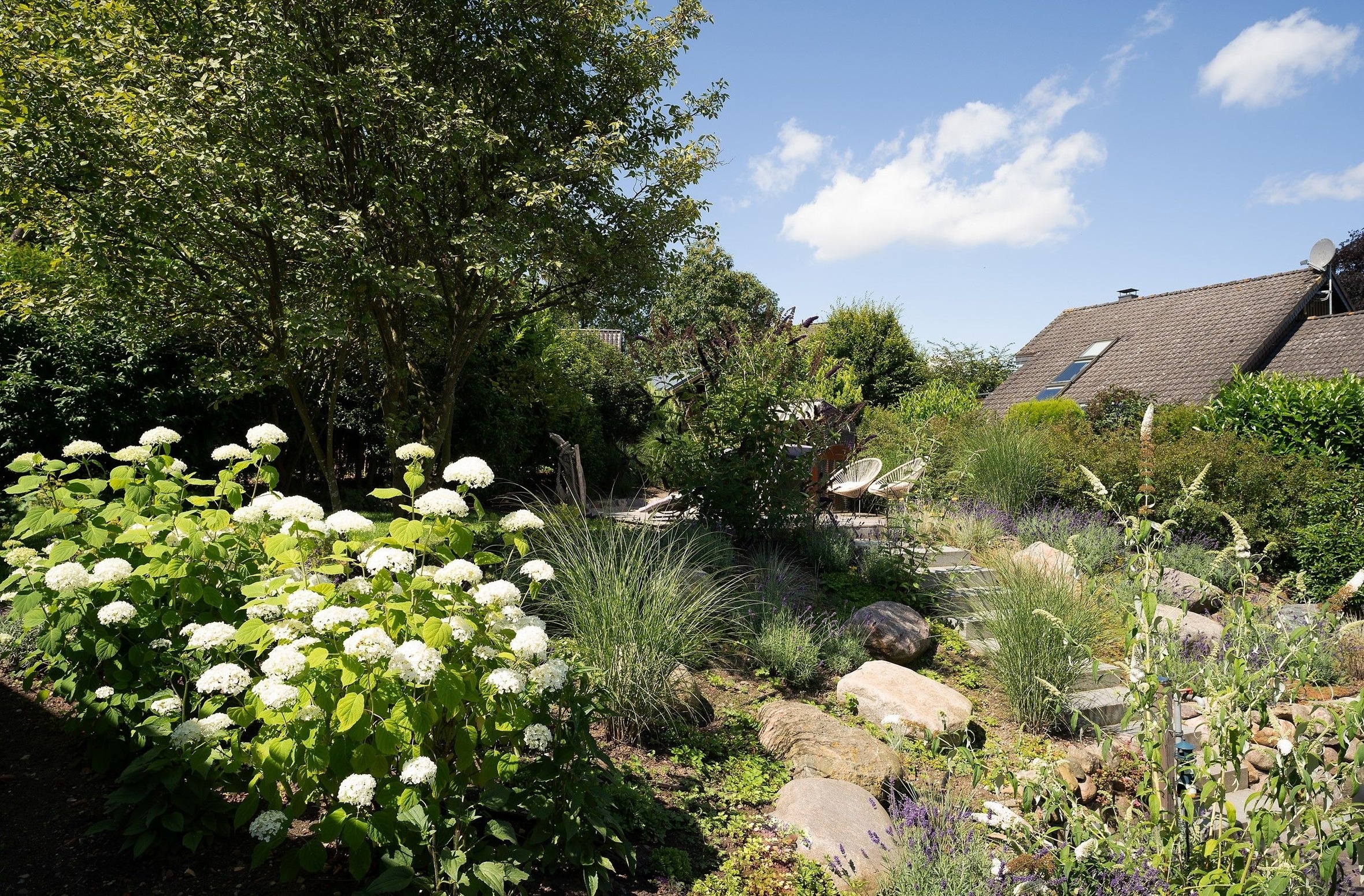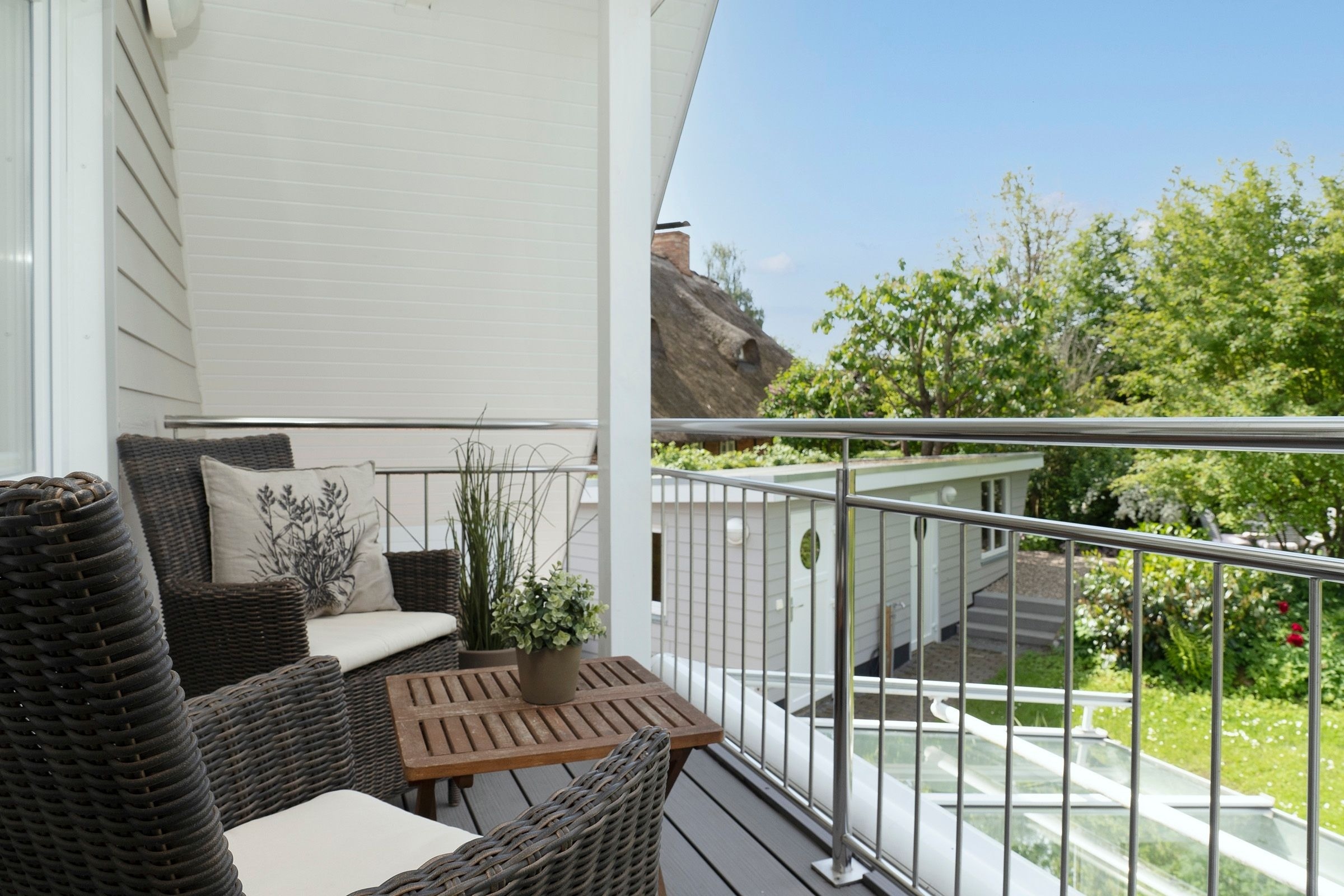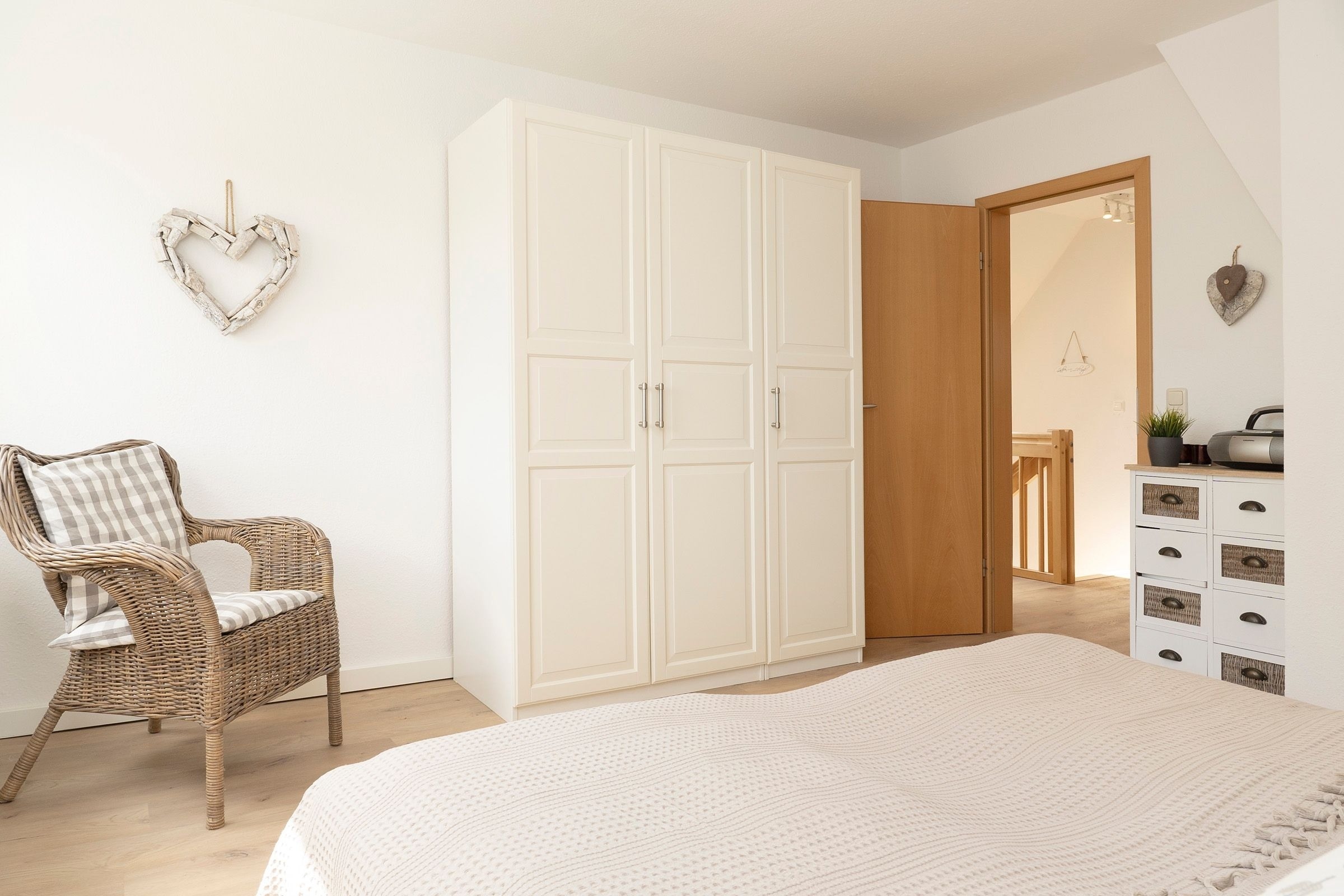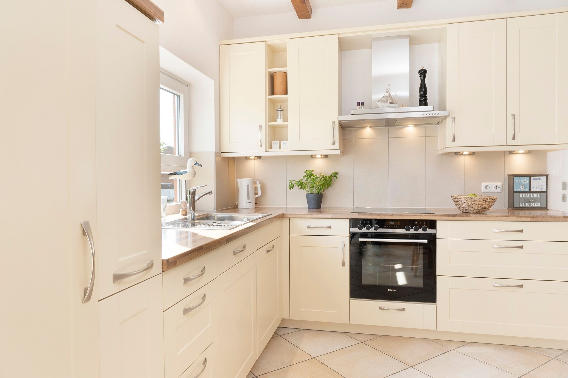 Die Ausstattung ist in modernem, natürlichem Design mit Wohlfühlcharakter und viel Liebe zum Detail. Eine gut ausgestattete große Wohnküche mit Fußbodenheizung bietet jeglichen Komfort und lässt keine Wünsche offen. Dort trifft sich die ganze Familie zum Kochen & Beisammensein. Für wohlige Wärme und Gemütlichkeit sorgt nach einem langen Strandspaziergang der Kamin im geräumigen Wohnzimmer. In dem mit exklusiven Loungemöbeln ausgestattetem Wintergarten können Sie das ganze Jahr in wohliger Wärme die direkte Nähe zur Natur mit Blick in den Himmel genießen. Die drei separaten Schlafzimmer mit je einem Doppelbett (2x 180x200 cm, 1x 160x200cm) garantieren Ihnen erholsame Nächte. Eins der Schlafzimmer bietet mit einem Schlafsofa (140x190 cm) zwei weitere Schlafplätze für unsere kleinen Gäste. Der großzügige Garten mit hochwertigen Gartenmöbeln, Sonnenliegen, Sonnenschirm und Strandkorb lädt zum Verweilen im Grünen ein und schafft Urlaub vom Alltag.