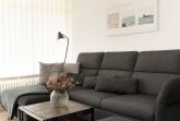 Der geschmackvolle Wohn- und Kochbereich empfängt Sie mit einer hochwertigen und individuellen Ausstattung. Hier können Sie sich eine Auszeit vom Alltag nehmen und auf dem bequemen Sofa abschalten. Dieses lässt sich bei Bedarf in eine gemütliche Schlafstätte (140 cm) für eine Person verwandeln. Hinter der großen, lichtbringenden Fensterfront befindet sich Ihr möblierter Balkon mit saisonal eingeschränktem Meerblick. Die moderne Küche mit Essplatz ist offen gestaltet und perfekt in den Wohnbereich integriert. Sie bietet alles, was Hobby-Koch-Herzen höher schlagen lässt -ein Ceranherd mit Backofen, Spülmaschine, Kühlschrank inkl. Gefrierfach, Mikrowelle, Kaffeemaschine und Senseo Padmaschine, Toaster und Wasserkocher. Bereiten Sie problemlos Ihre Mahlzeiten zu und genießen Sie gesellige Kochabende. Über einen kostenlosen WLAN-Anschluss streamen Sie Ihre Lieblingsmusik und bleiben mit Ihren Lieben daheim in Verbindung. In einem separaten Schlafzimmer lädt ein komfortables Boxspring-Bett (160x200cm, Einstieg von einer Seite und über Fußende) mit TV-Gerät und verdunkelnden Außenrollos zu erholsamen Nächten ein. Im Flur befindet sich ein geräumiger Kleiderschrank, in dem Ihre Urlaubsgarderobe ausreichend Platz findet.