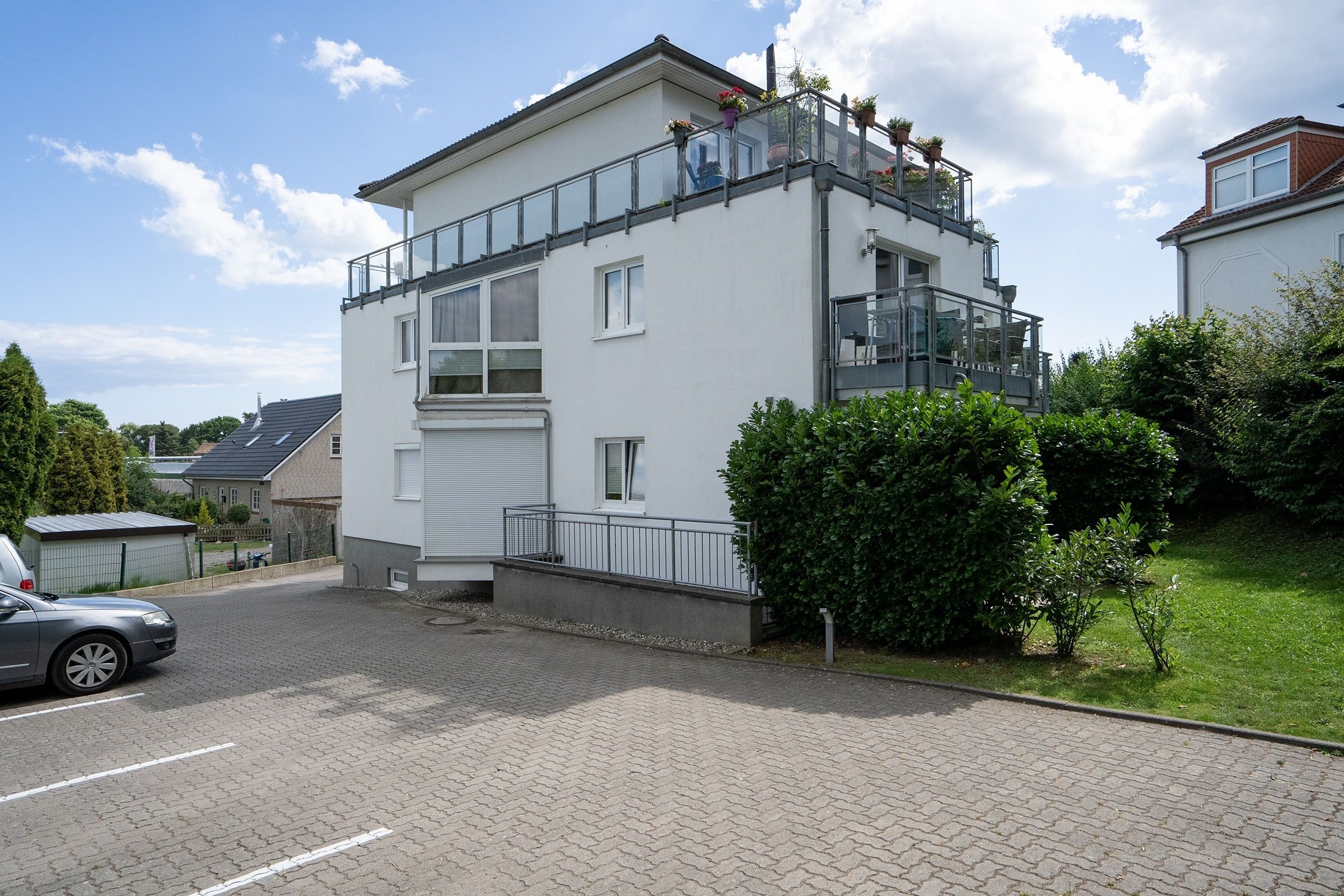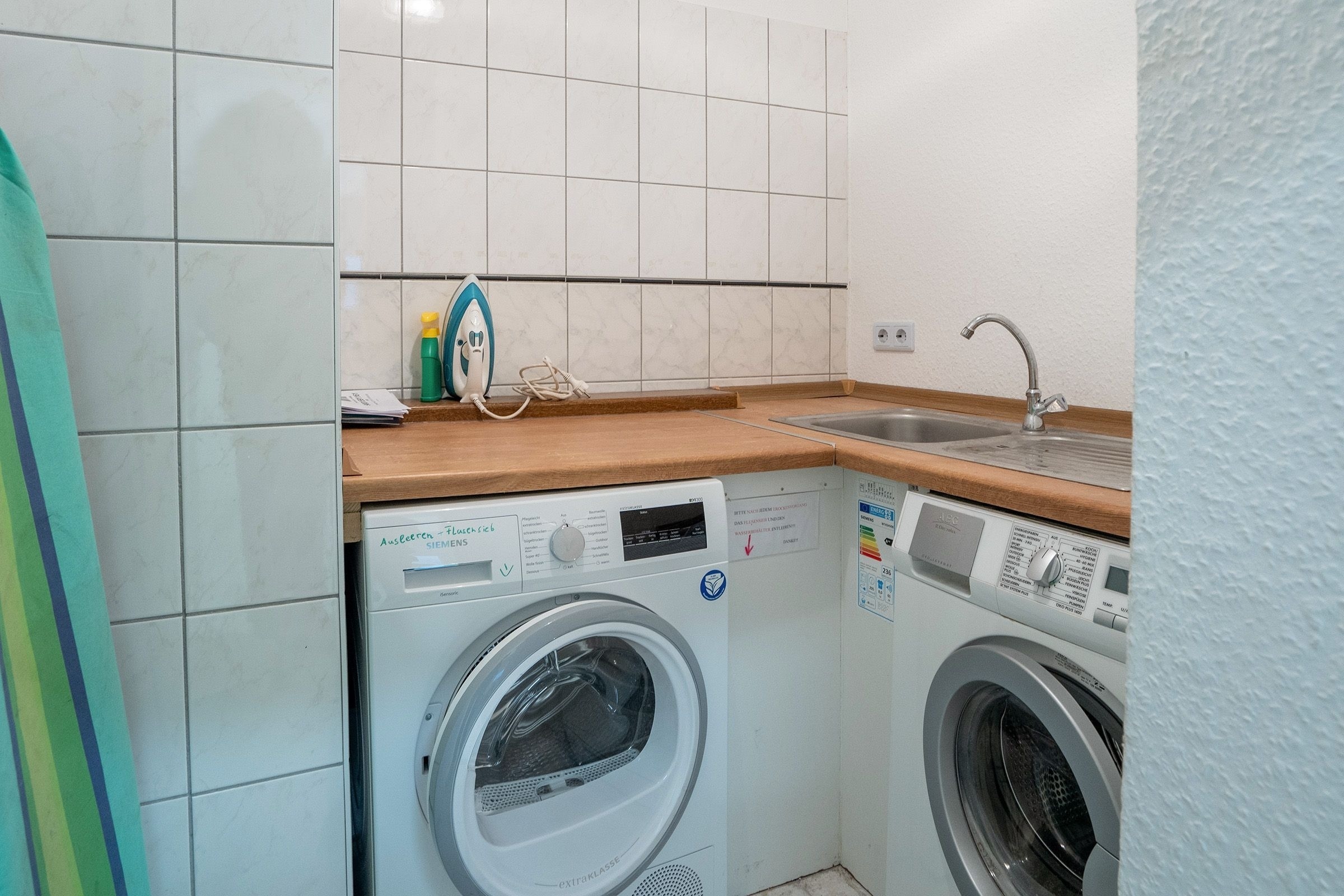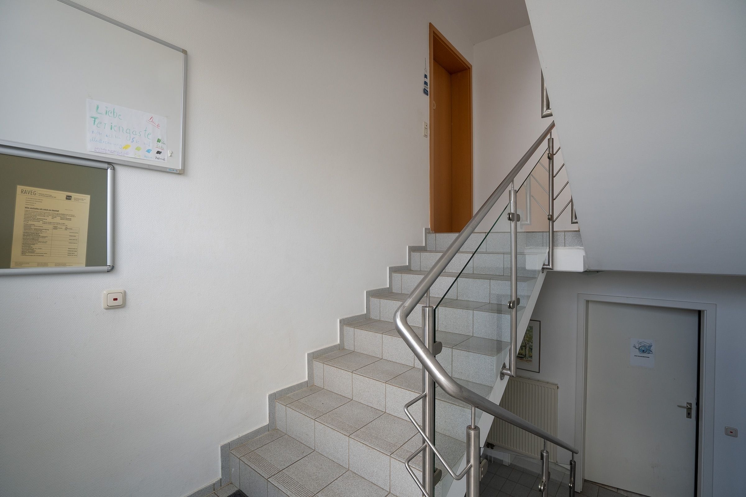 Ein PKW-Außenstellplatz direkt vor der Haustür ist für Sie reserviert. Ihre Fahrräder können Sie im Fahrradkeller sicher unterbringen. Wichtig: Der Fahrradkeller kann nur über eine Treppe (10 Stufen) erreicht werden. Im Keller befindet sich auch ein Gemeinschaftswaschraum mit Waschmaschine und Trockner.