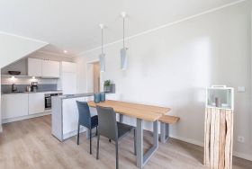 Die ebenerdige 2-Zimmer-Wohnung liegt nur einen Katzensprung vom feinsandigen Grömitzer Strand entfernt.