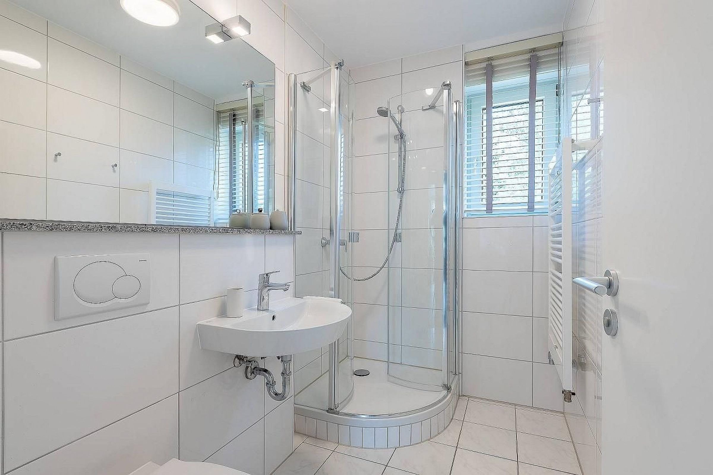 Die moderne Küche ist offen gestaltet und perfekt in den Wohnbereich integriert. Sie bietet alles, was Hobby-Koch-Herzen höher schlagen lässt. Die großzügige Sonnenterrasse mit Ostausrichtung ist der perfekte Ort für ein leckeres Frühstück im Sonnenschein! Das Badezimmer überzeugt im modernen Stil mit Dusche und WC. Das separate Schlafzimmer mit komfortablen Doppelbett (2 x 90x200 cm, durchgehender Topper) bietet ausreichen Platz für Ruhe und Erholung. Zudem ist es mit einem zusätzlichen Flat-TV ausgestattet.