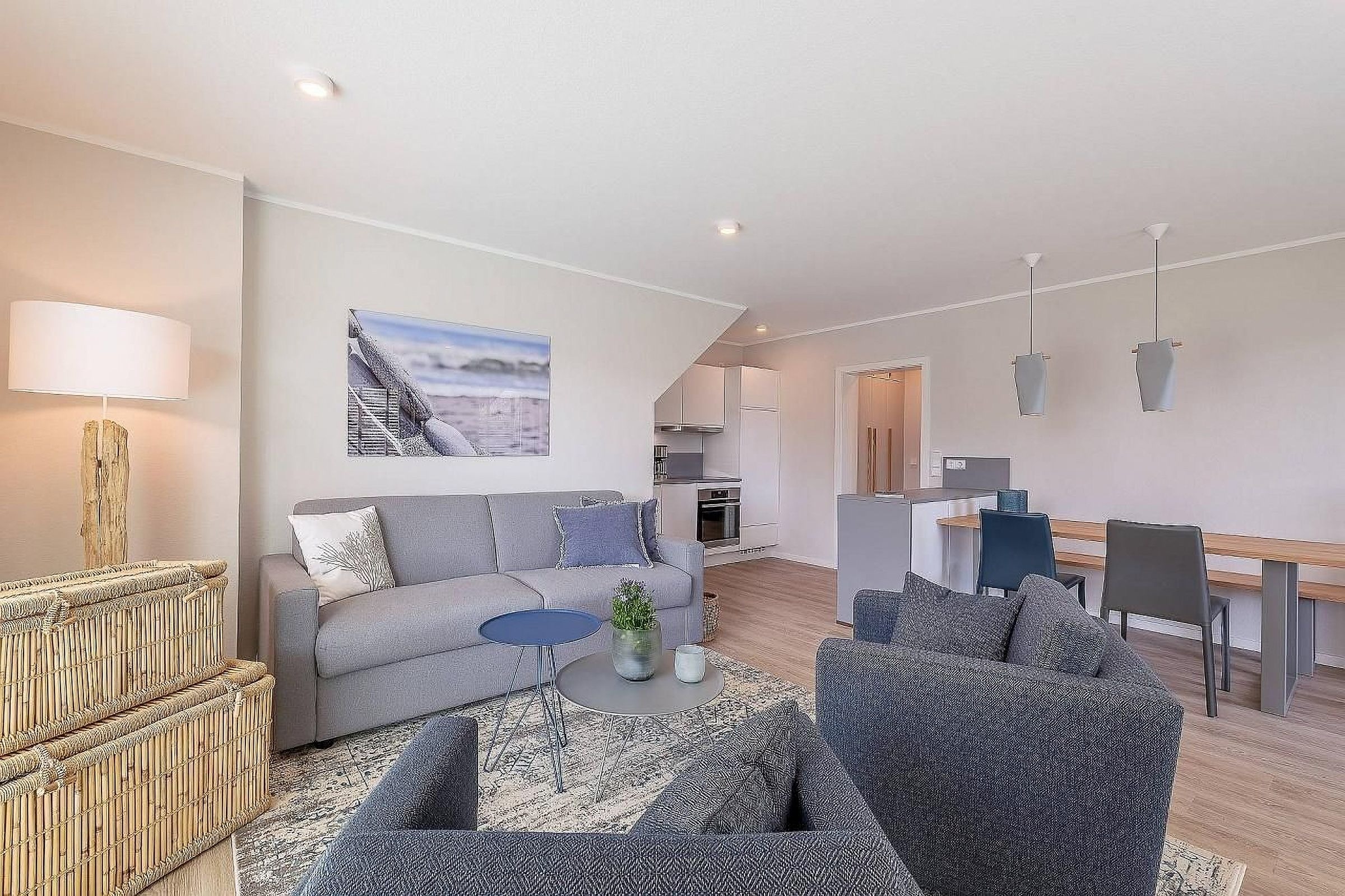 Mit 55 qm Wohnfläche verteilt auf ein Wohnzimmer und ein separates Schlafzimmer bietet das Appartement Platz für bis zu vier Personen.