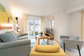 Der offene Wohn- und Kochbereich, umrahmt von 2 Terrassen, begeistert mit geschmackvollem Design und gehobener Ausstattung. Bequeme Sitzgelegenheiten im Wohnbereich, der Flat-TV, Stereoanlage und ein Esstisch bieten viele Möglichkeiten, die Urlaubstage zu gestalten. Die schicke, offene Küche ist hochwertig ausgestattet. Absolutes Highlight ist die wunderschöne möblierte Holzterrasse mit Blick in den umzäunten Garten, auf der Sie die gesunde Ostseeluft genießen können. Das moderne Bad ist mit einer bodentiefen Dusche und einer Waschmaschine bestückt. Erholsame Nächte beschert Ihnen das Doppelbett (2x 90x200 cm) im Hauptschlafzimmer. Im Kleiderschrank ist Platz für Ihre Urlaubsgarderobe und ein 2. Flat-TV sorgt für Unterhaltung. 2 weitere Gäste können es sich im nebenliegenden Schlafzimmer in zwei Einzelbetten (je 90x200 cm) gemütlich machen. Auf dieser Etage gibt es ein zusätzliches Gäste-WC.